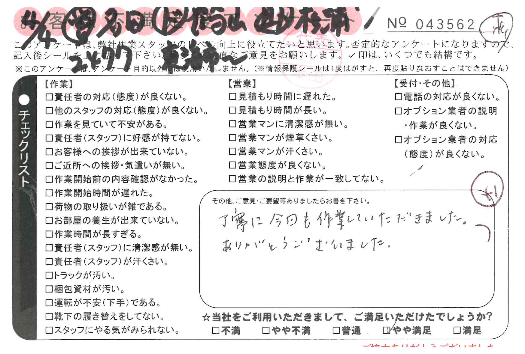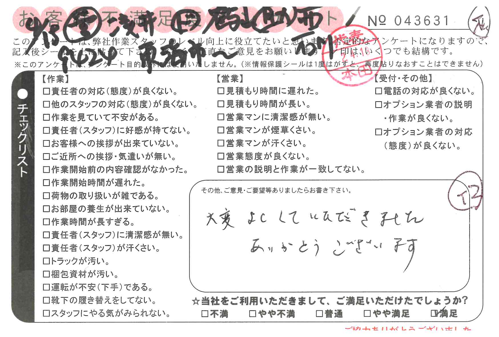 引越一番でお引越しをしていただいたお客様のうち、コメントいただいたアンケートを全て掲載しています。