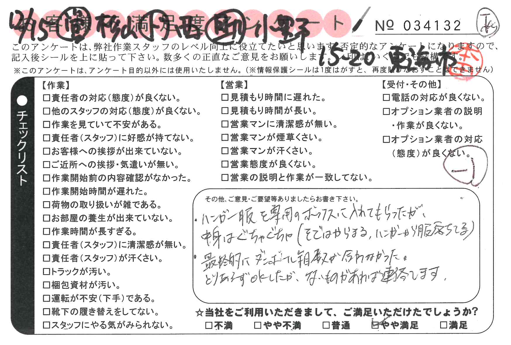 引越一番でお引越しをしていただいたお客様のうち、コメントいただいたアンケートを全て掲載しています。