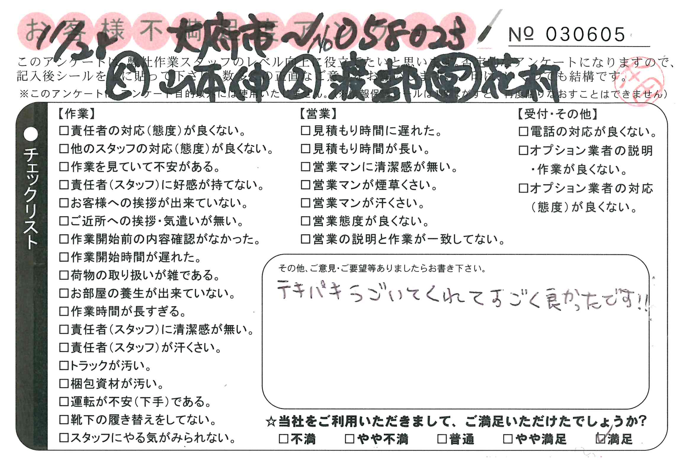引越一番でお引越しをしていただいたお客様のうち、コメントいただいたアンケートを全て掲載しています。