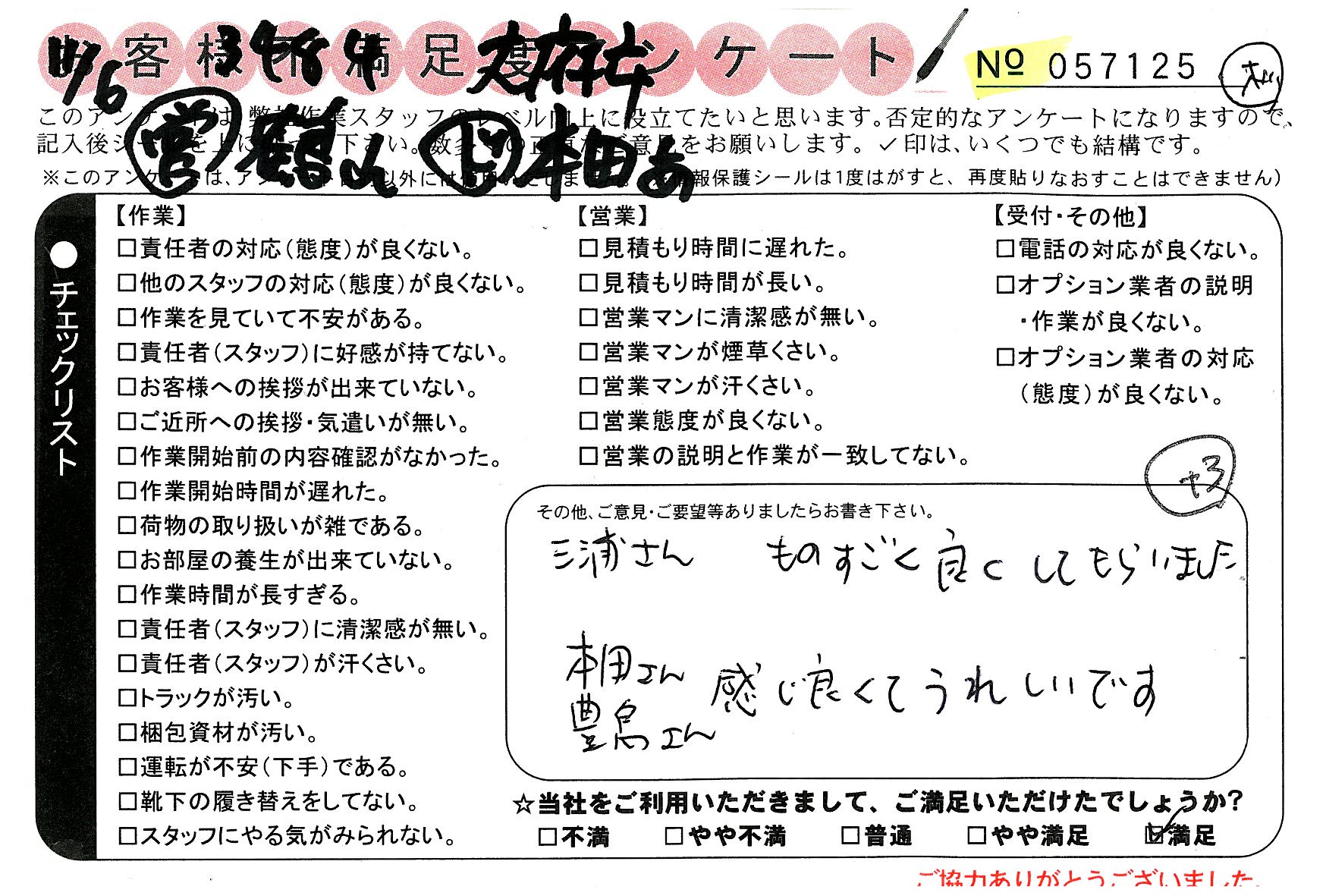 引越一番でお引越しをしていただいたお客様のうち、コメントいただいたアンケートを全て掲載しています。