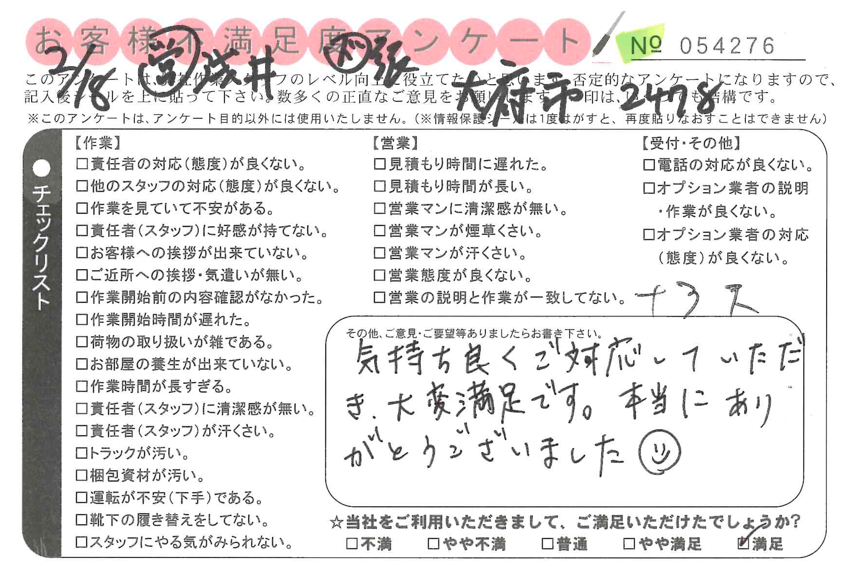 * たいへん満足でした。