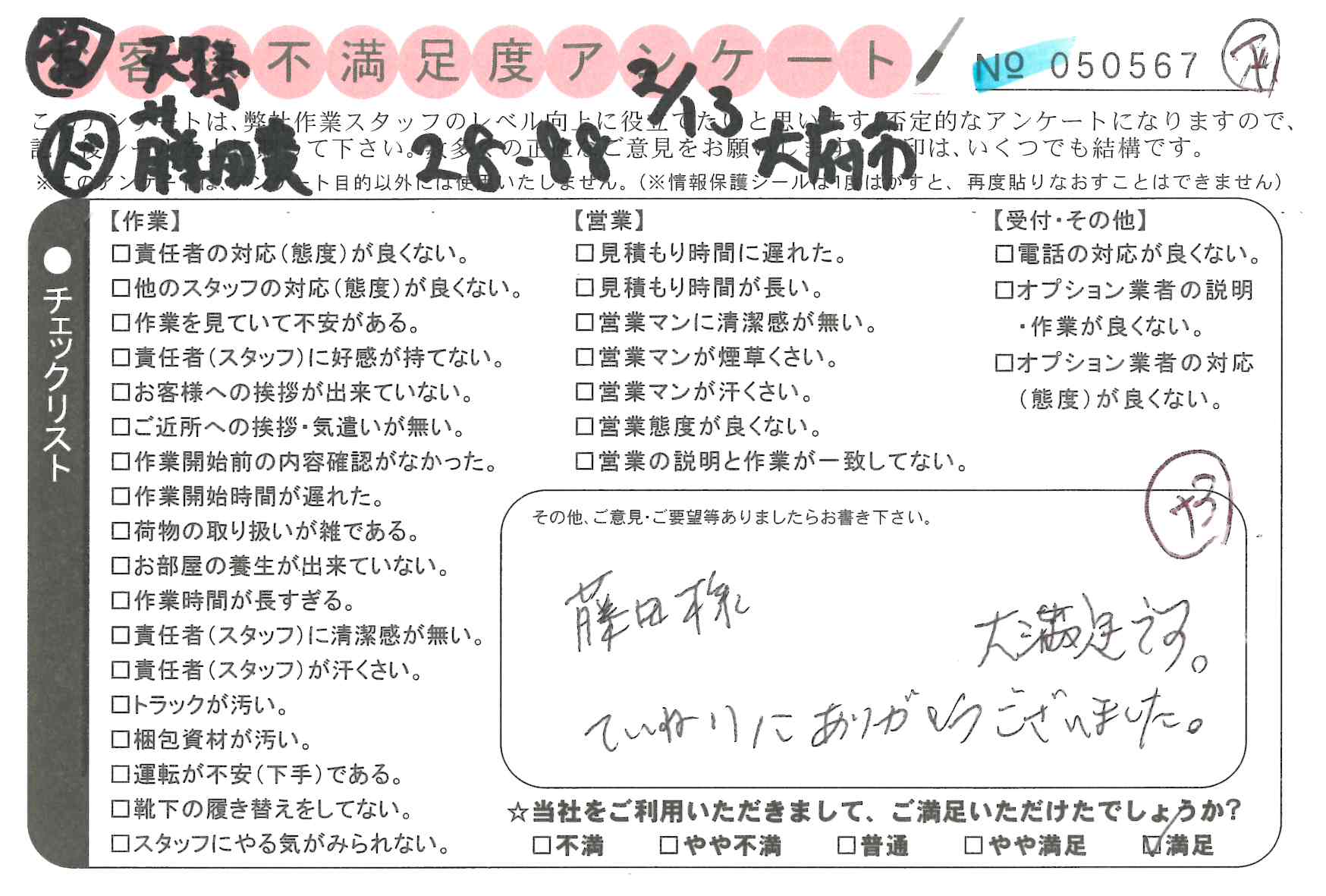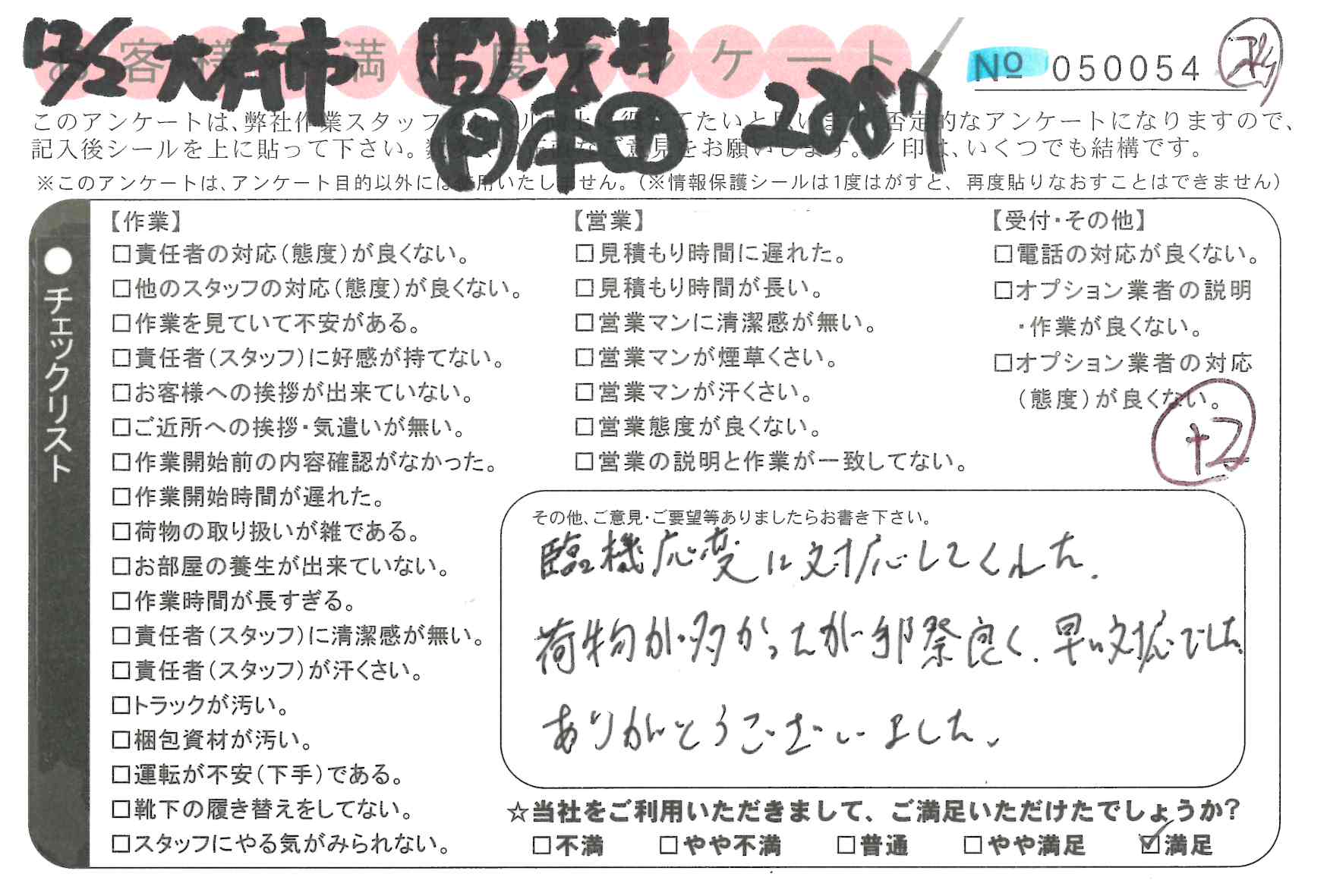 引越一番でお引越しをしていただいたお客様のうち、コメントいただいたアンケートを全て掲載しています。