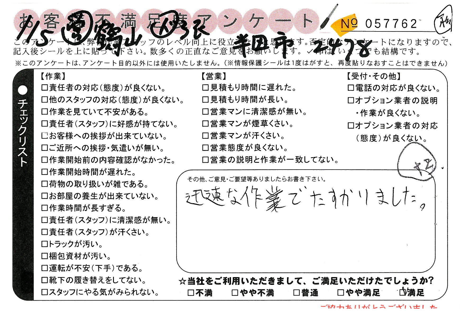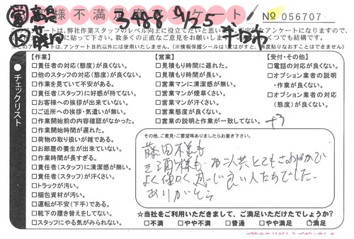 引越一番でお引越しをしていただいたお客様のうち、コメントいただいたアンケートを全て掲載しています。