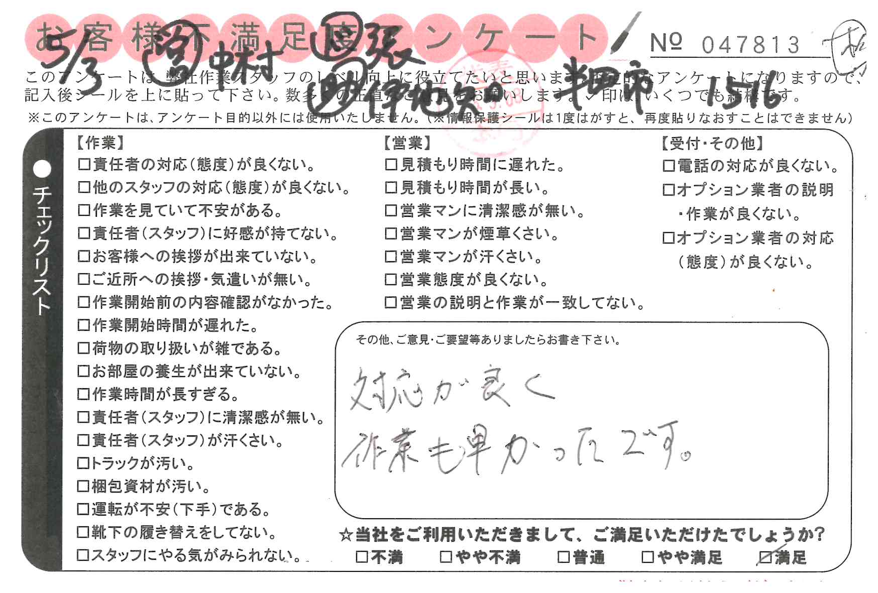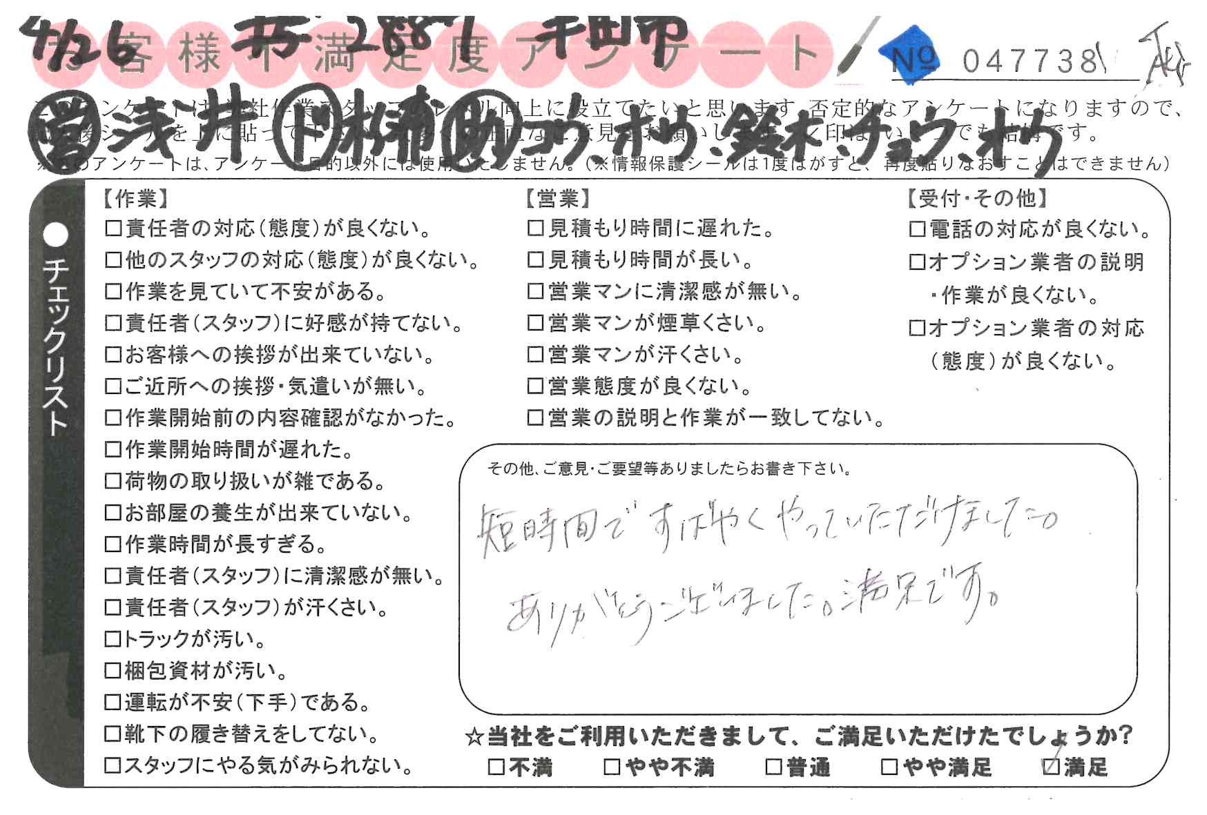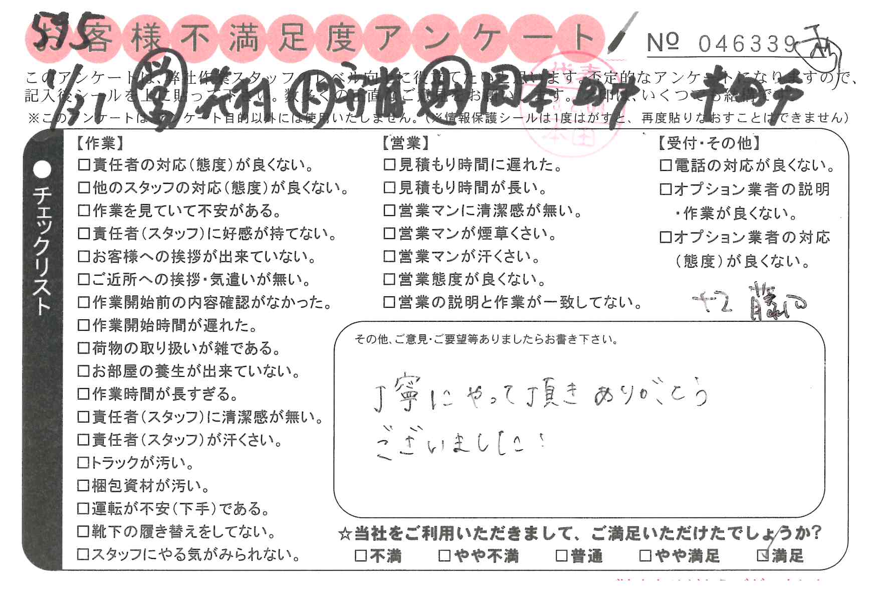 引越一番でお引越しをしていただいたお客様のうち、コメントいただいたアンケートを全て掲載しています。