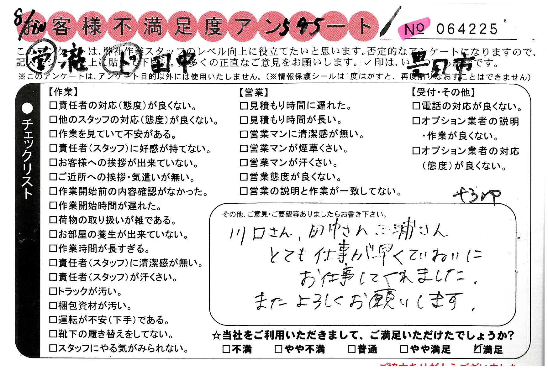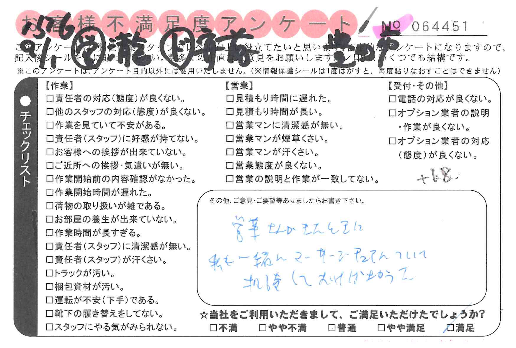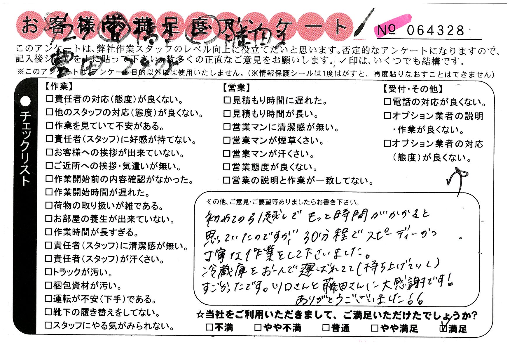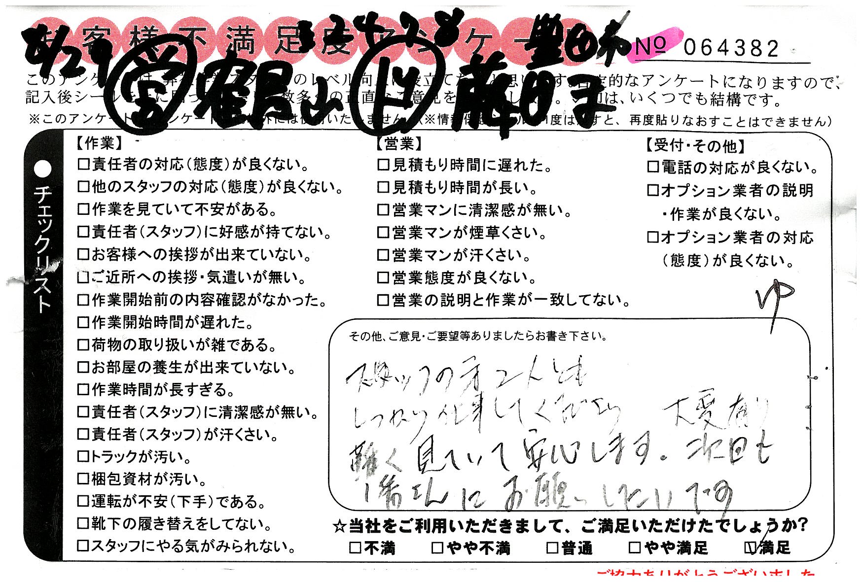 引越一番でお引越しをしていただいたお客様のうち、コメントいただいたアンケートを全て掲載しています。