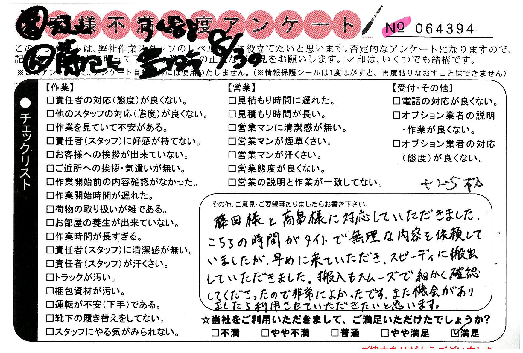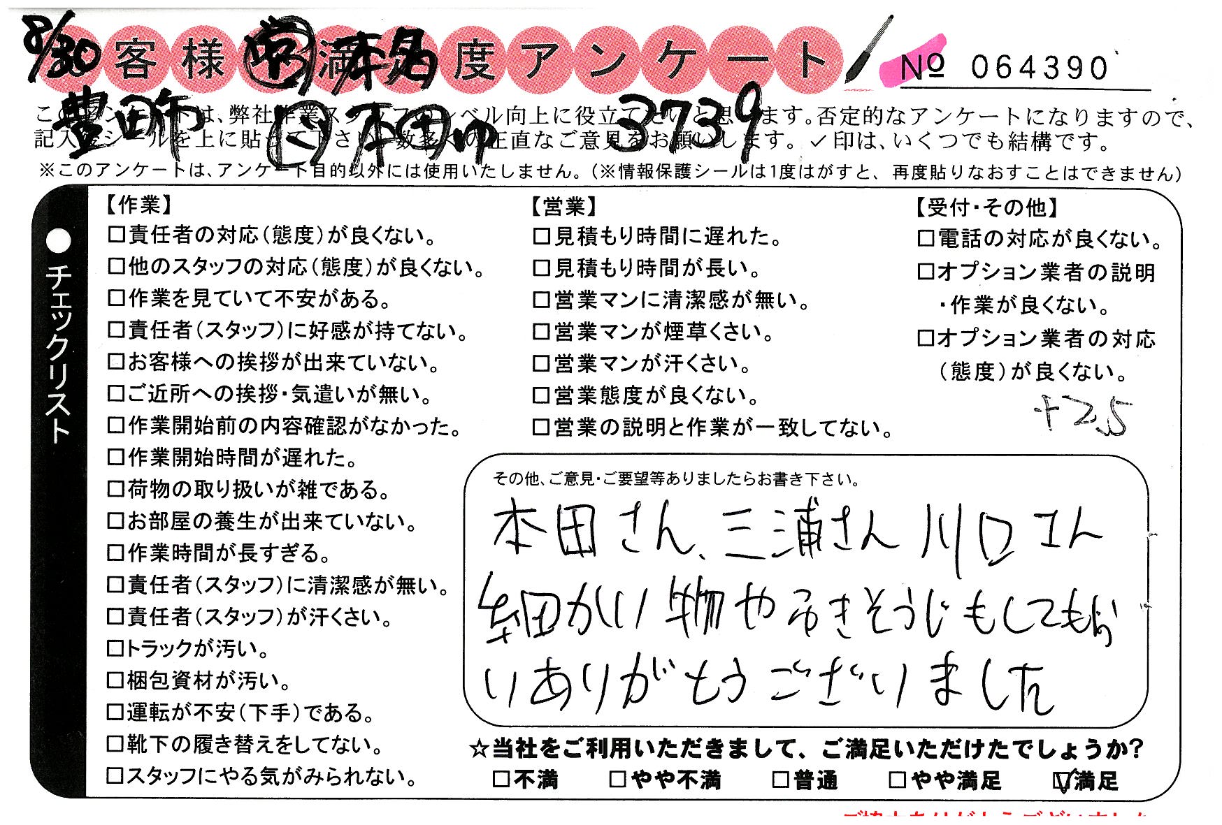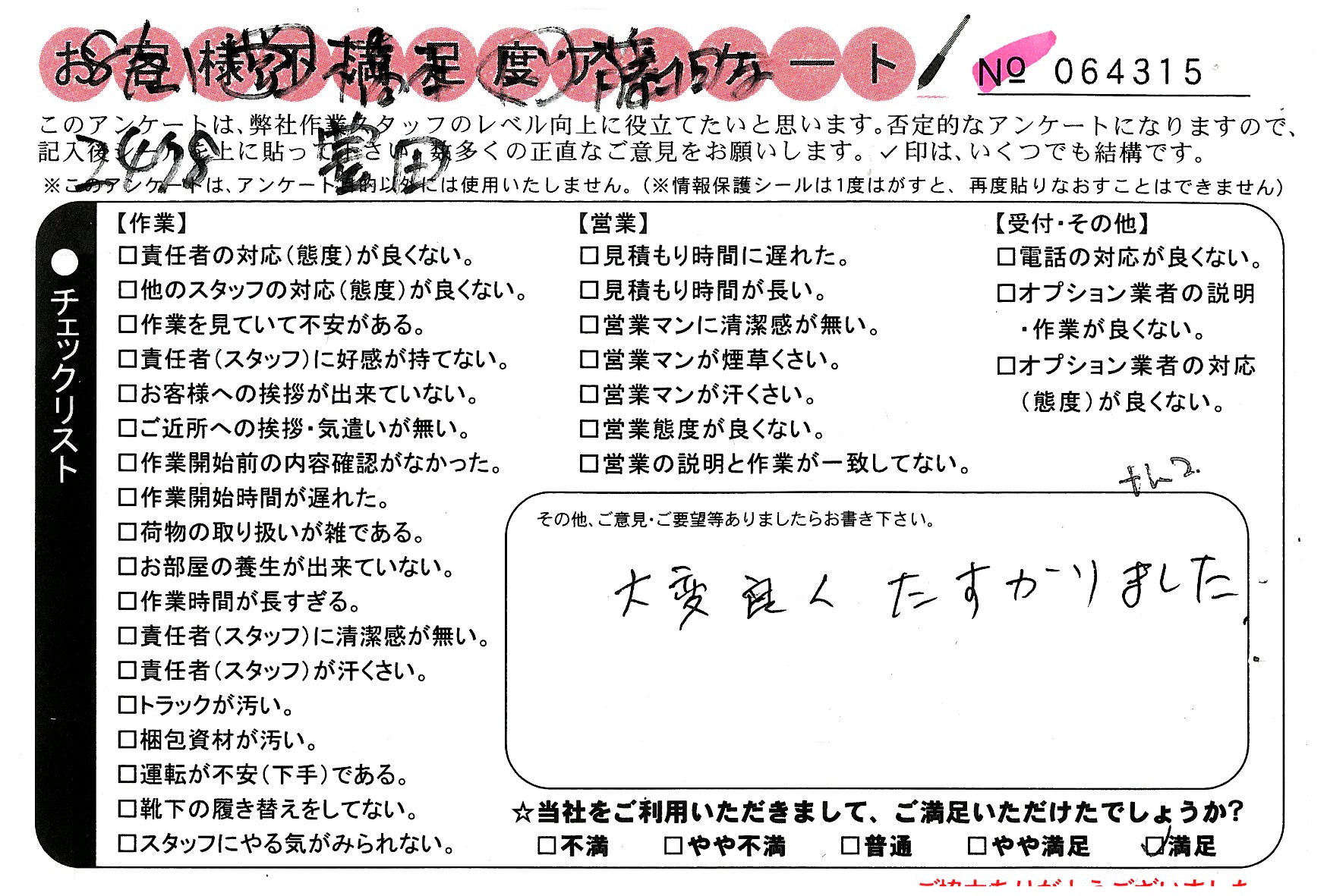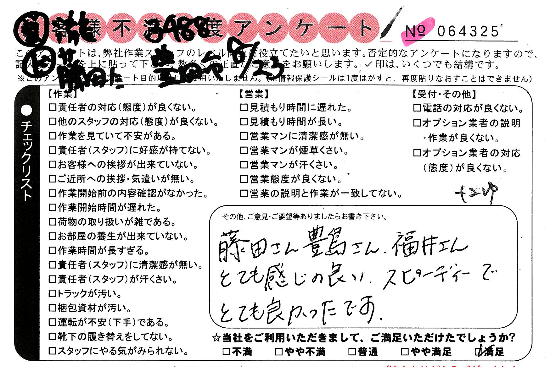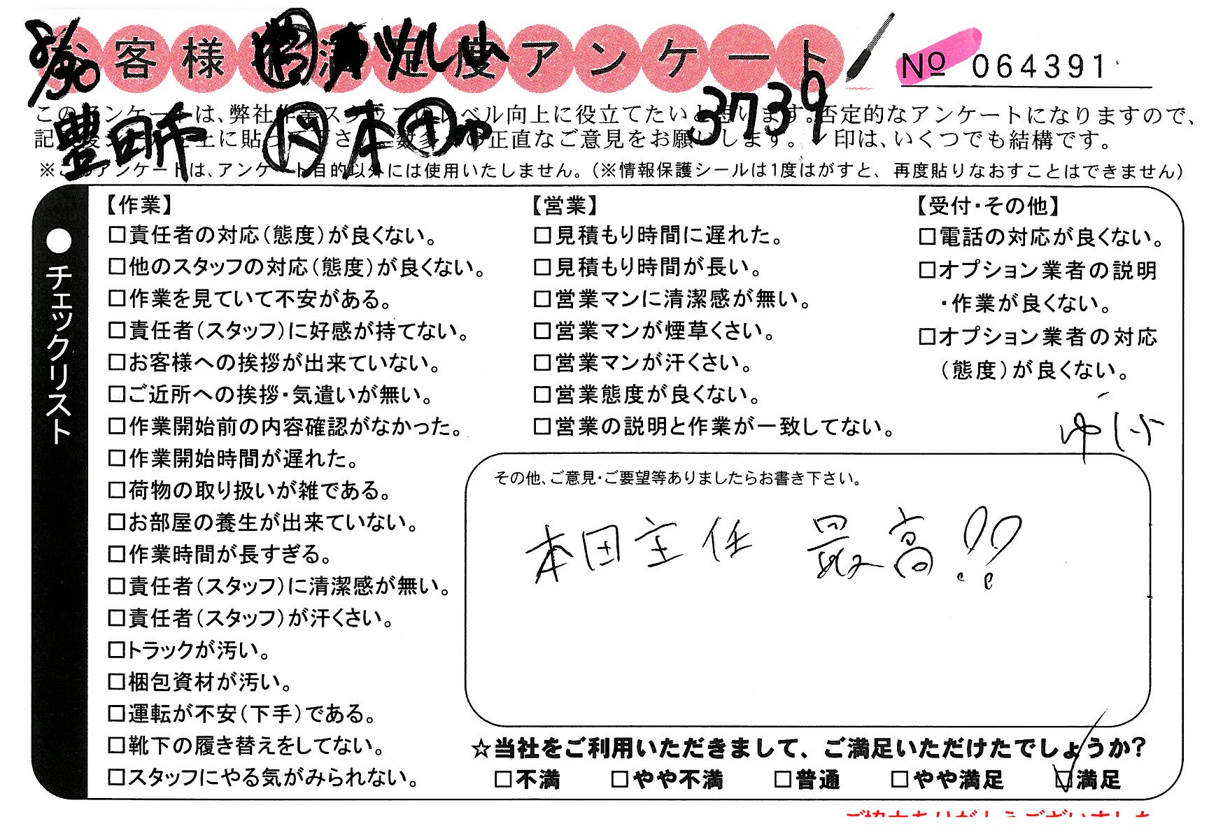 引越一番でお引越しをしていただいたお客様のうち、コメントいただいたアンケートを全て掲載しています。