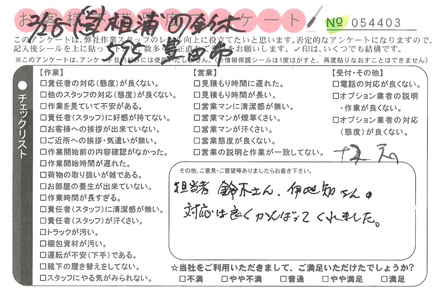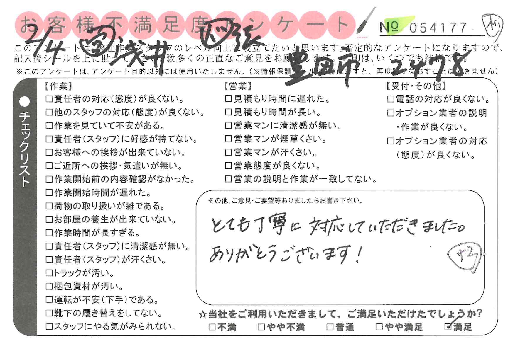 引越一番でお引越しをしていただいたお客様のうち、コメントいただいたアンケートを全て掲載しています。
