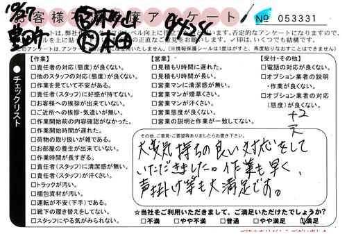 引越一番でお引越しをしていただいたお客様のうち、コメントいただいたアンケートを全て掲載しています。