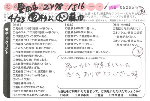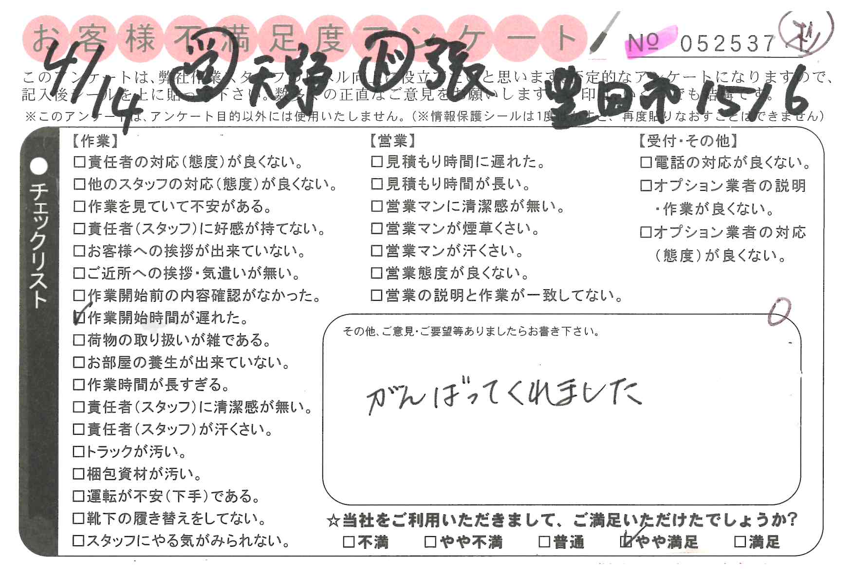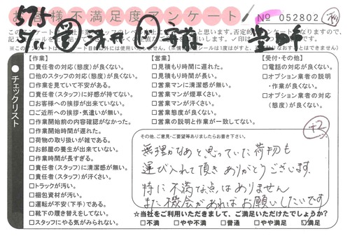 引越一番でお引越しをしていただいたお客様のうち、コメントいただいたアンケートを全て掲載しています。