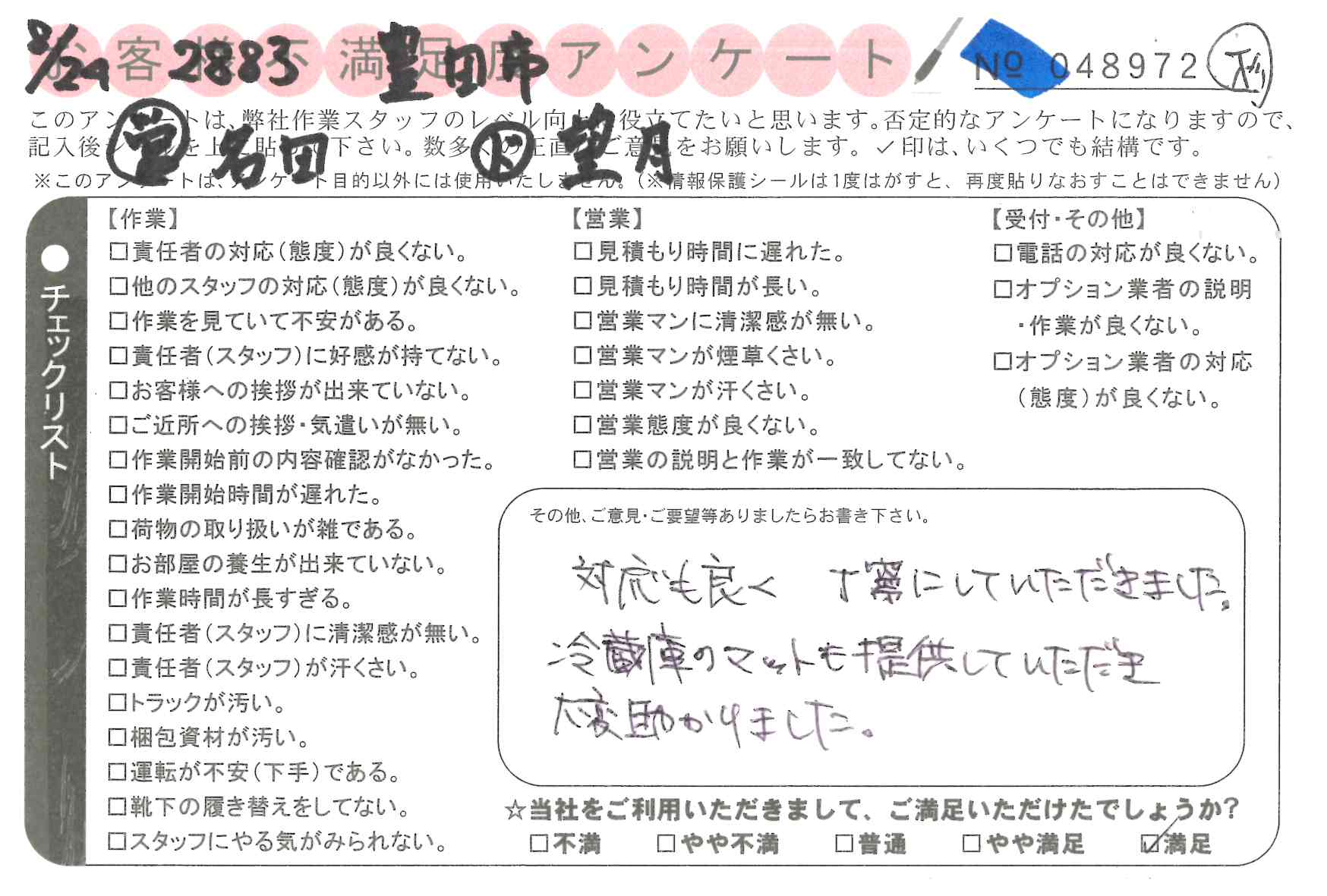 引越一番でお引越しをしていただいたお客様のうち、コメントいただいたアンケートを全て掲載しています。