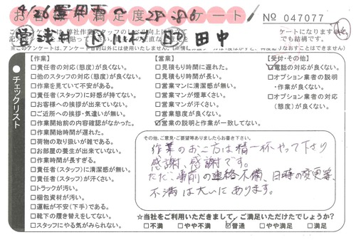 引越一番でお引越しをしていただいたお客様のうち、コメントいただいたアンケートを全て掲載しています。