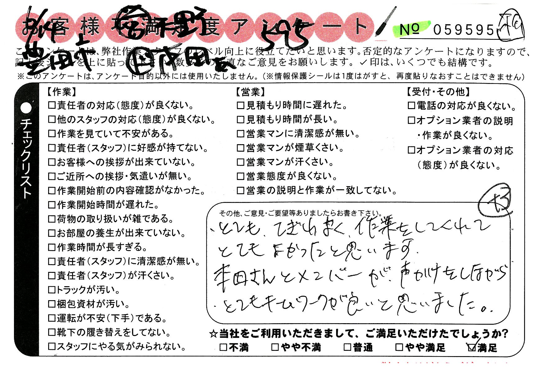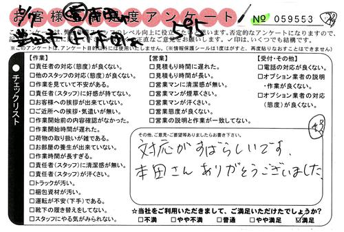 引越一番でお引越しをしていただいたお客様のうち、コメントいただいたアンケートを全て掲載しています。