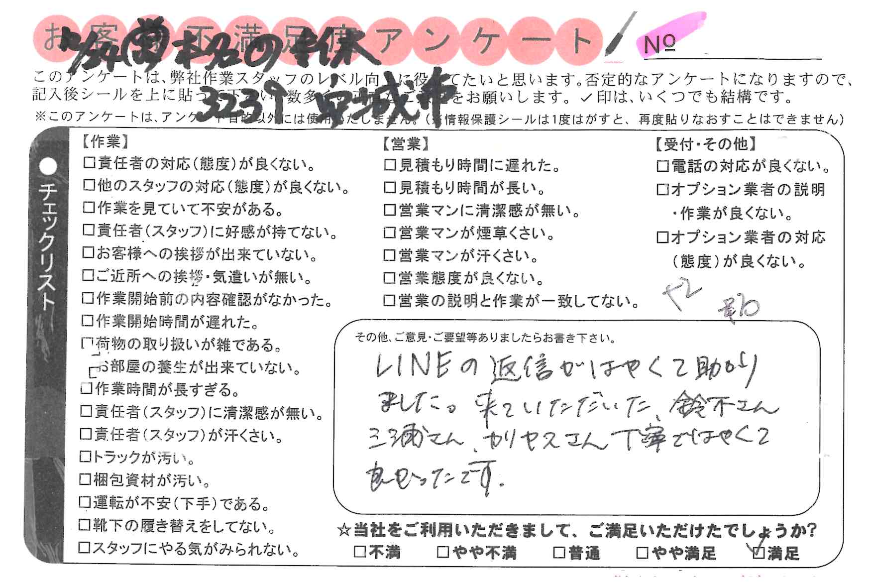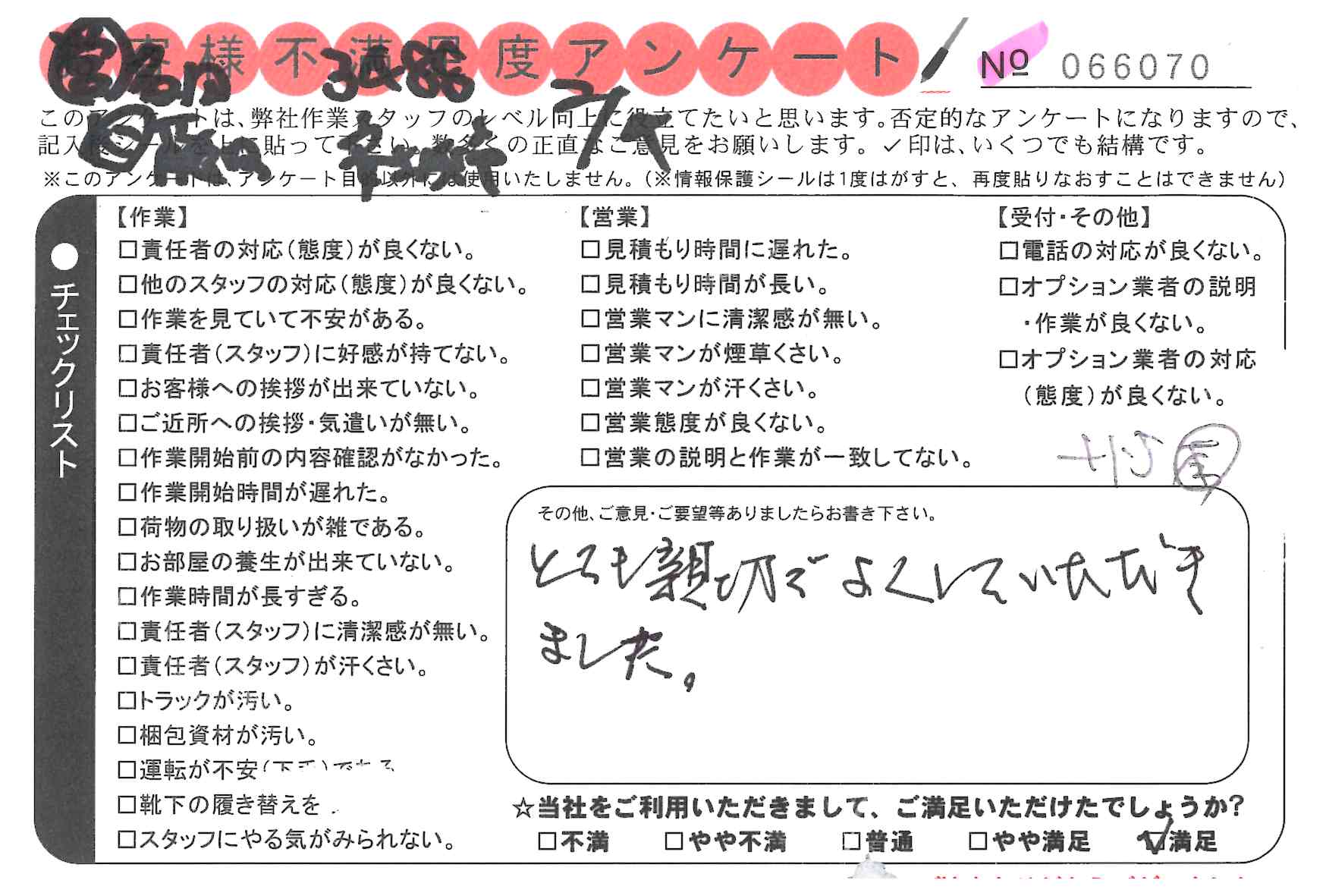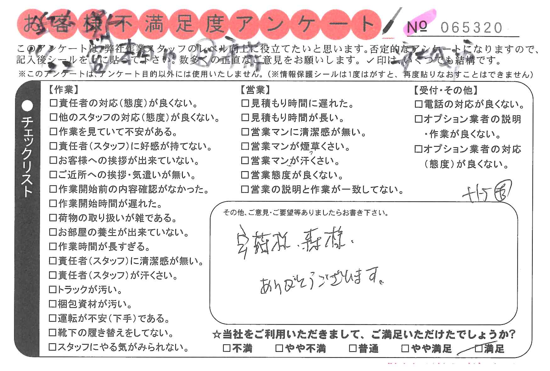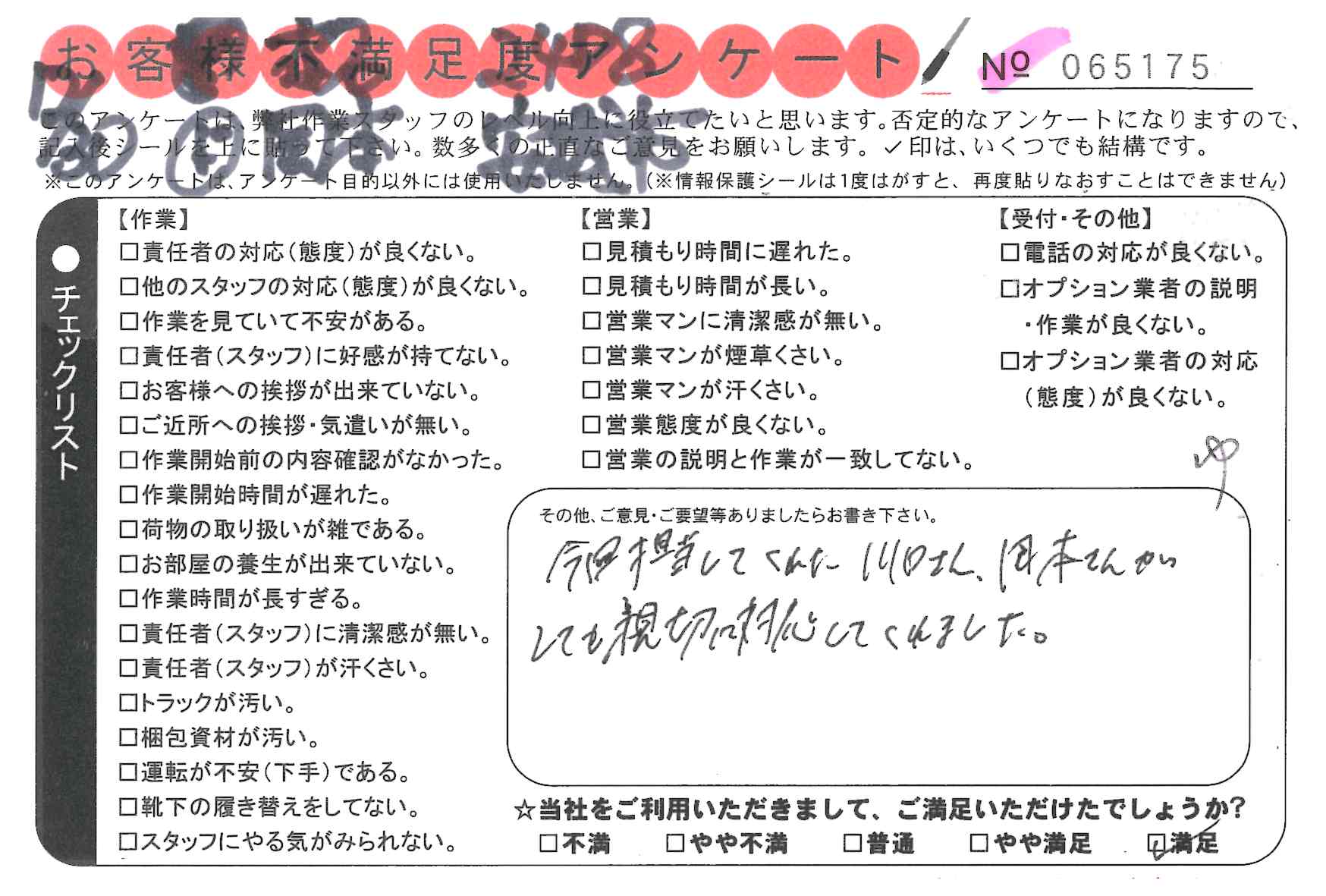 引越一番でお引越しをしていただいたお客様のうち、コメントいただいたアンケートを全て掲載しています。