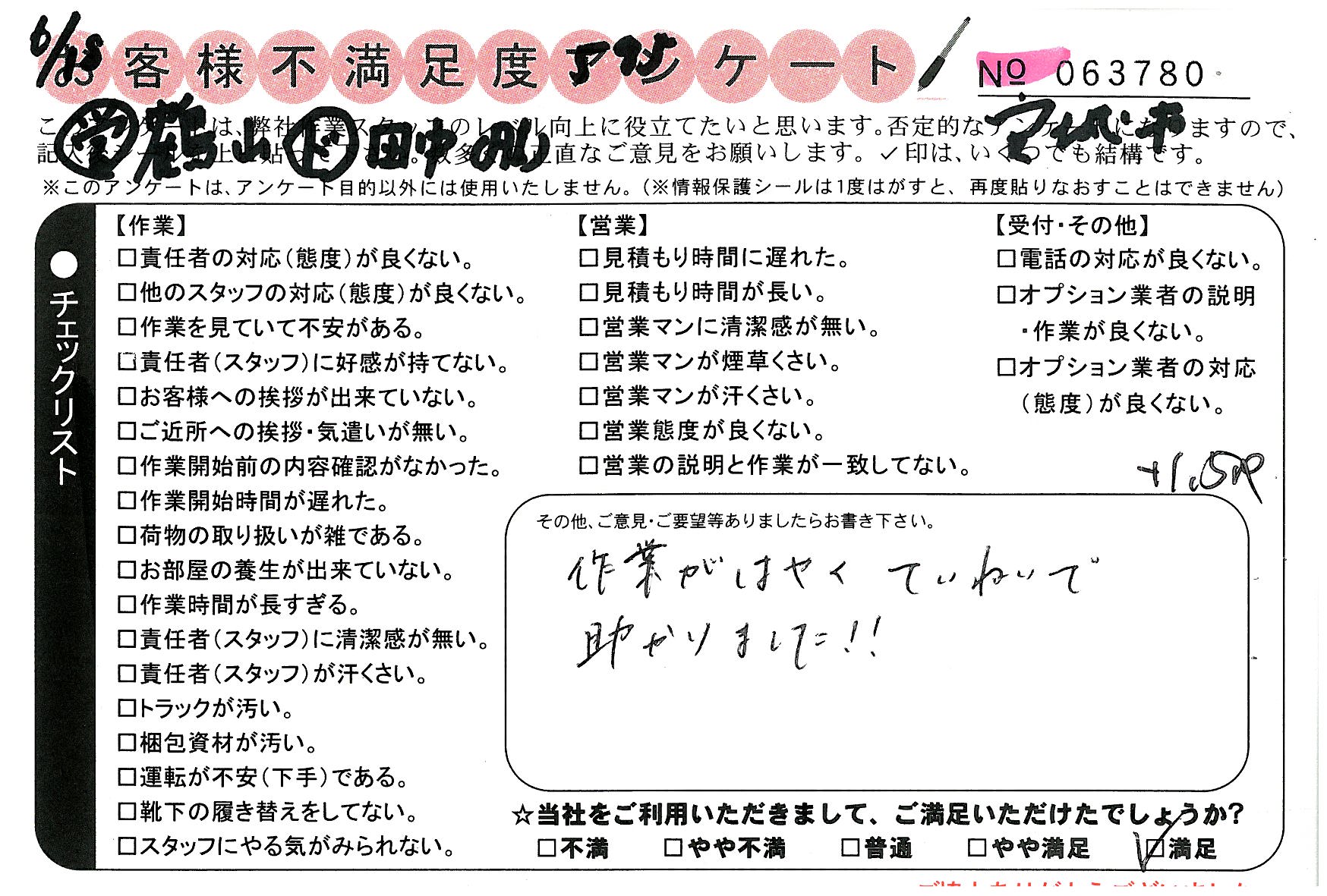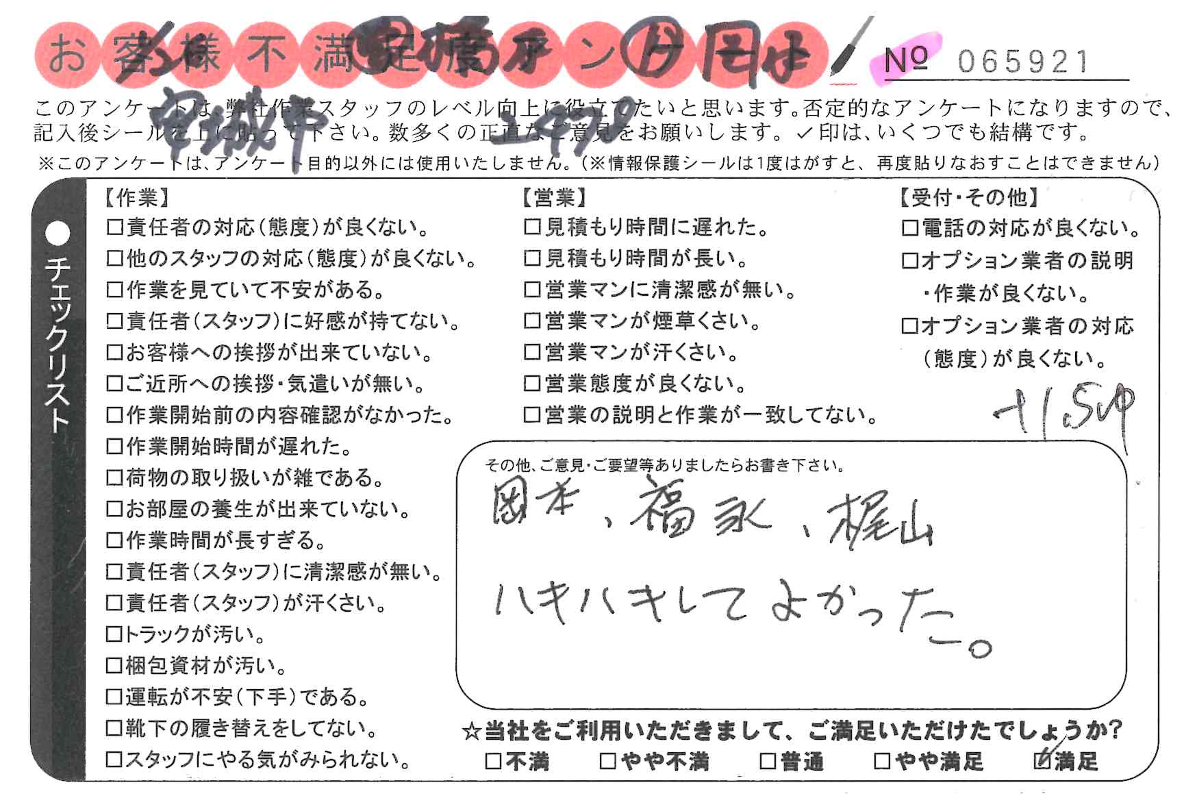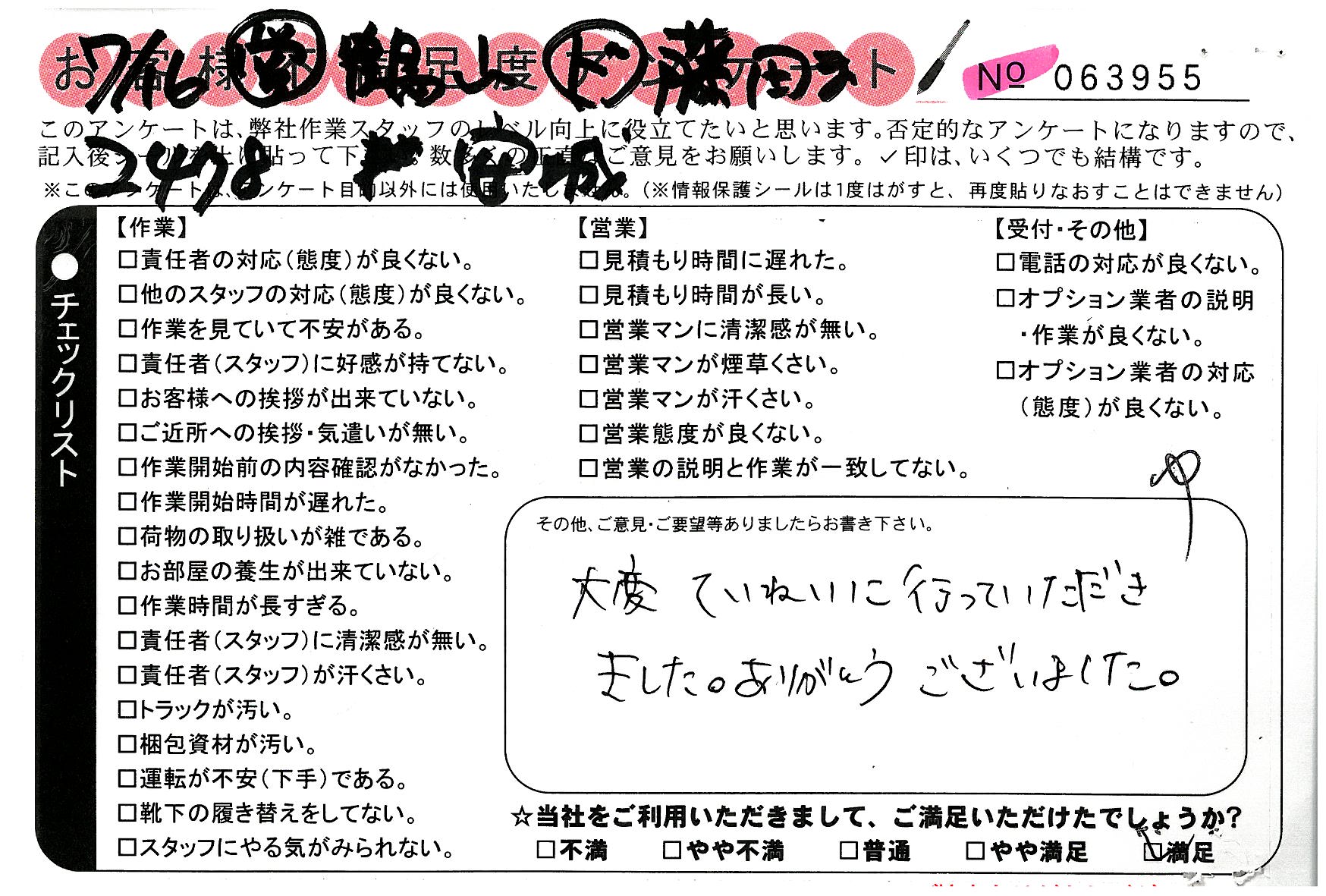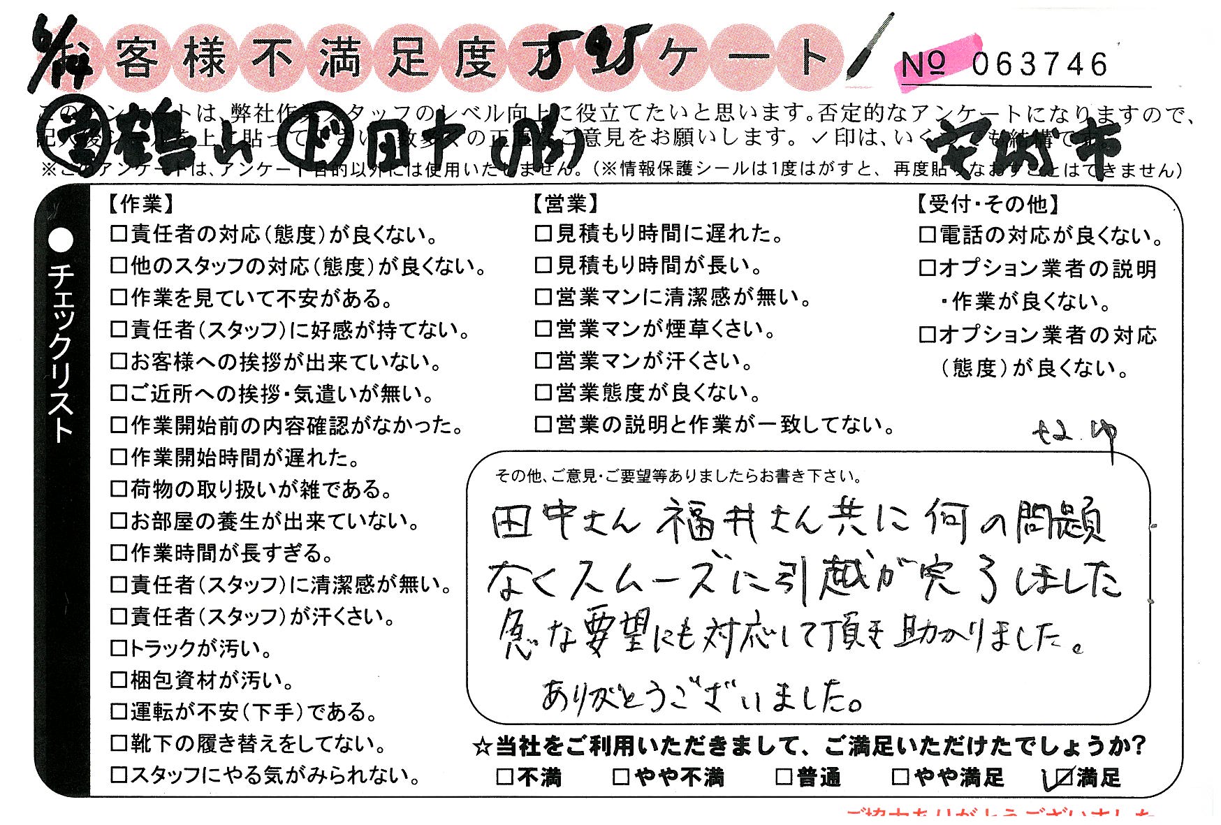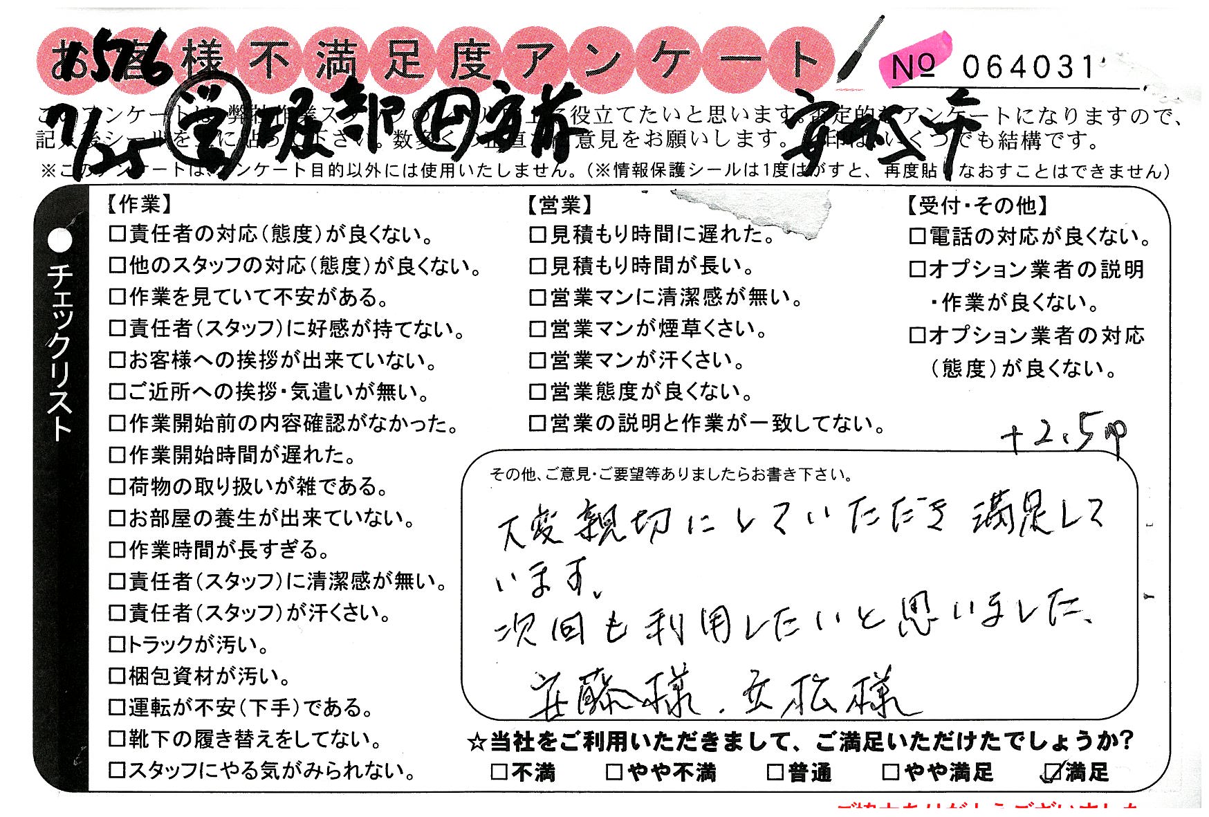 引越一番でお引越しをしていただいたお客様のうち、コメントいただいたアンケートを全て掲載しています。