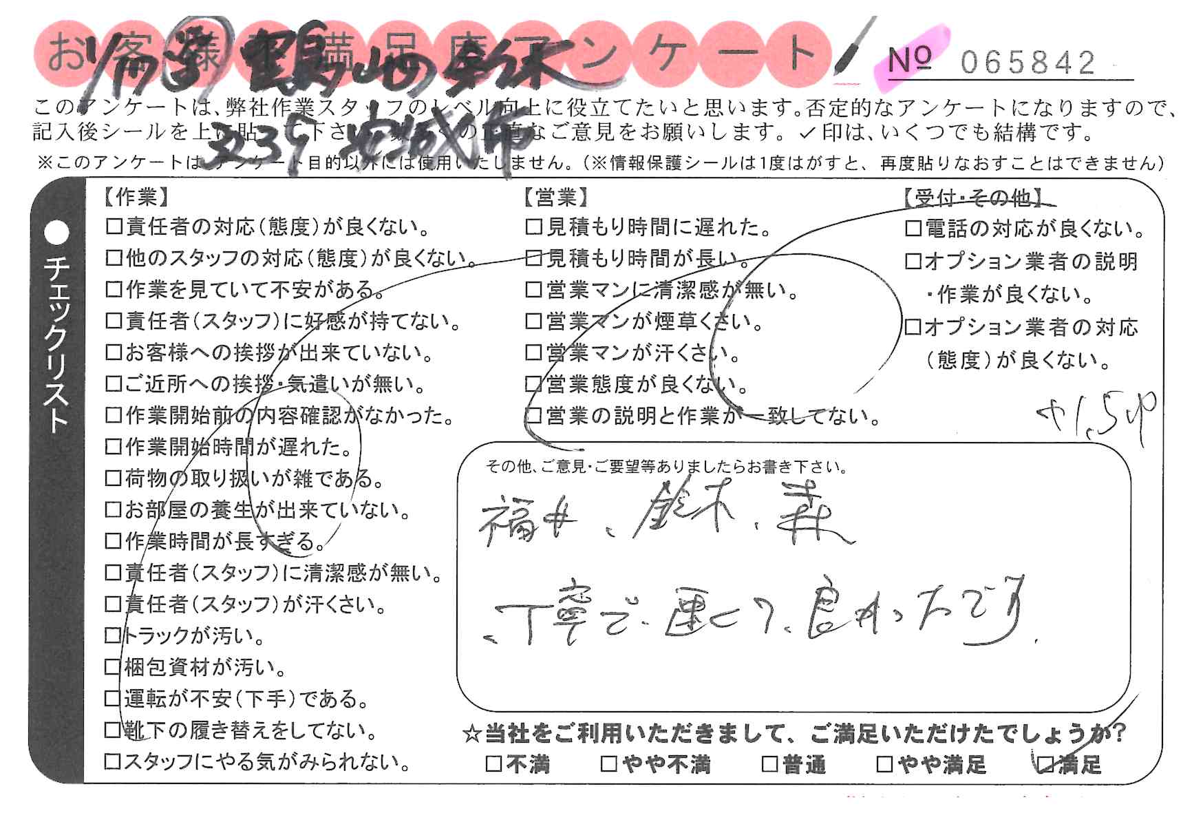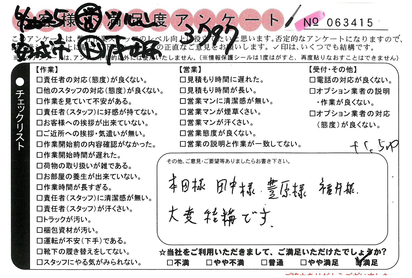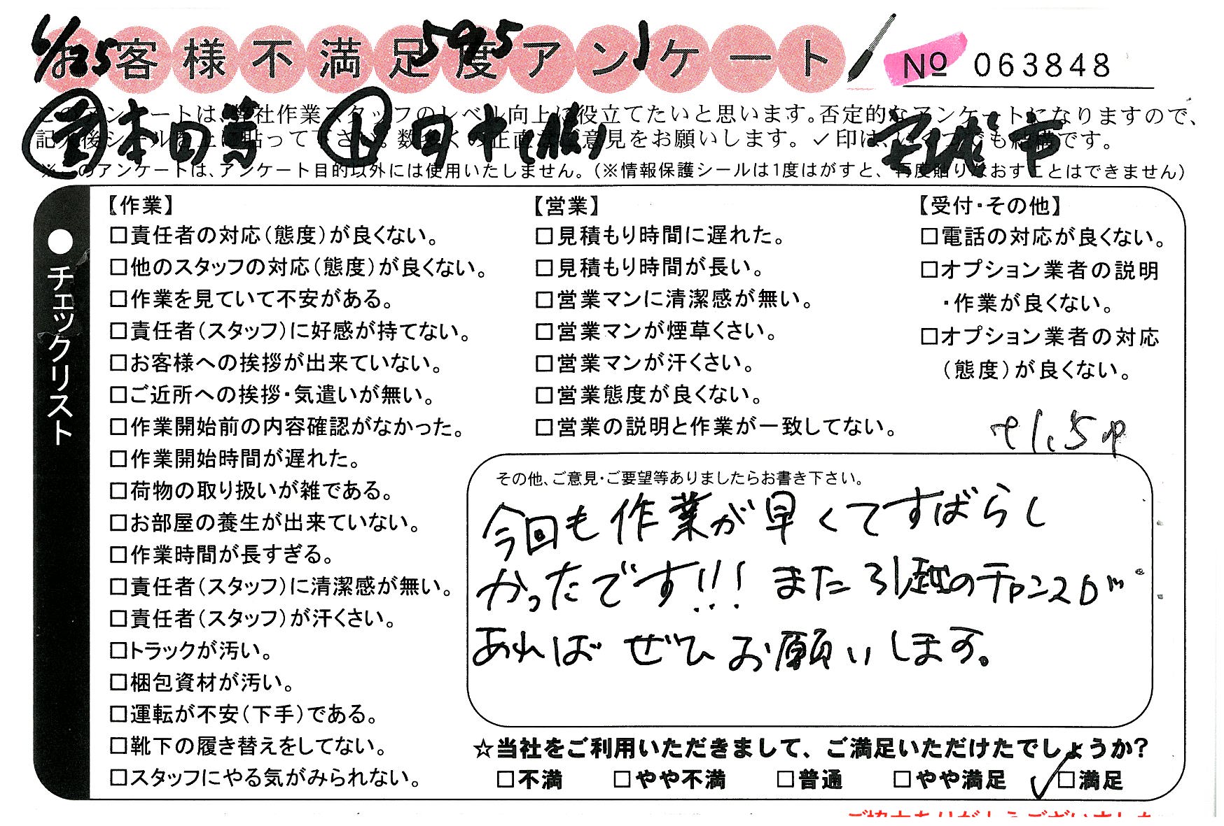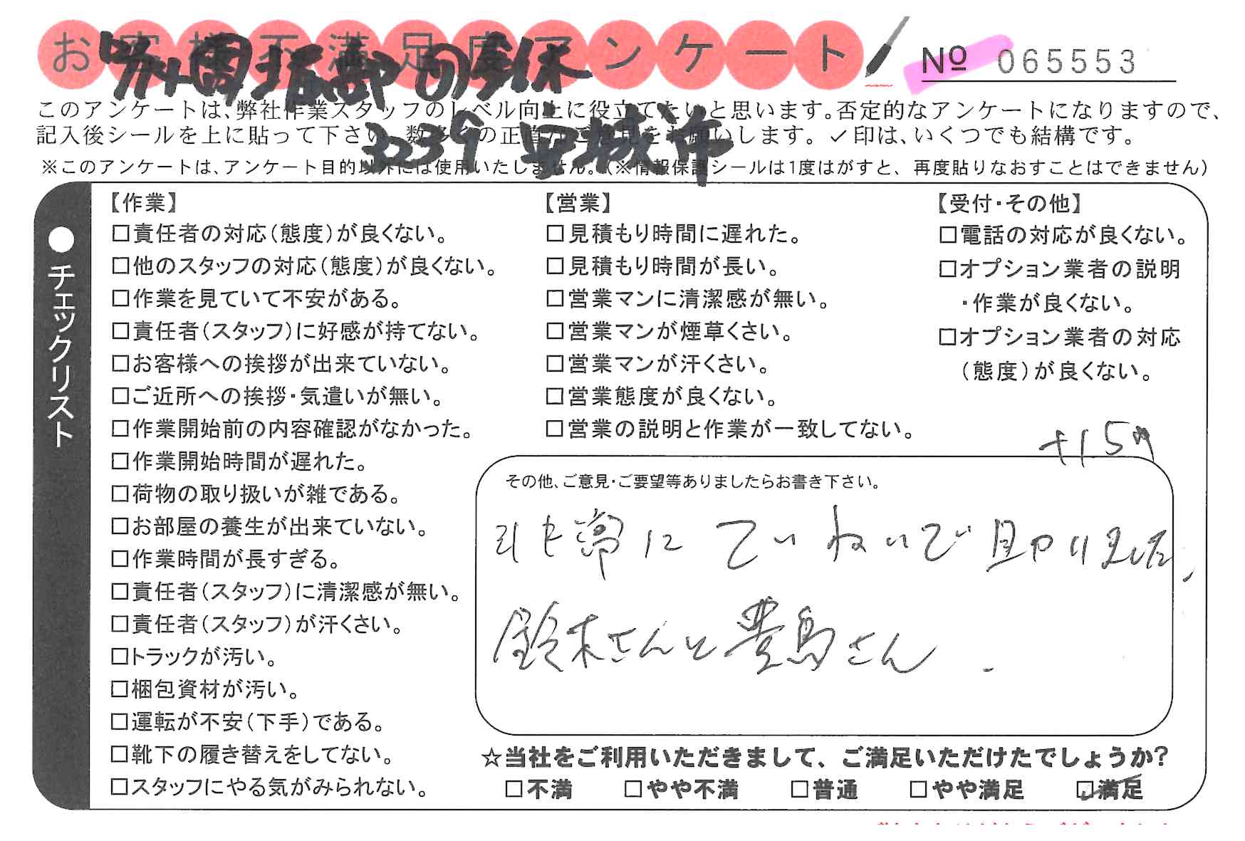 引越一番でお引越しをしていただいたお客様のうち、コメントいただいたアンケートを全て掲載しています。