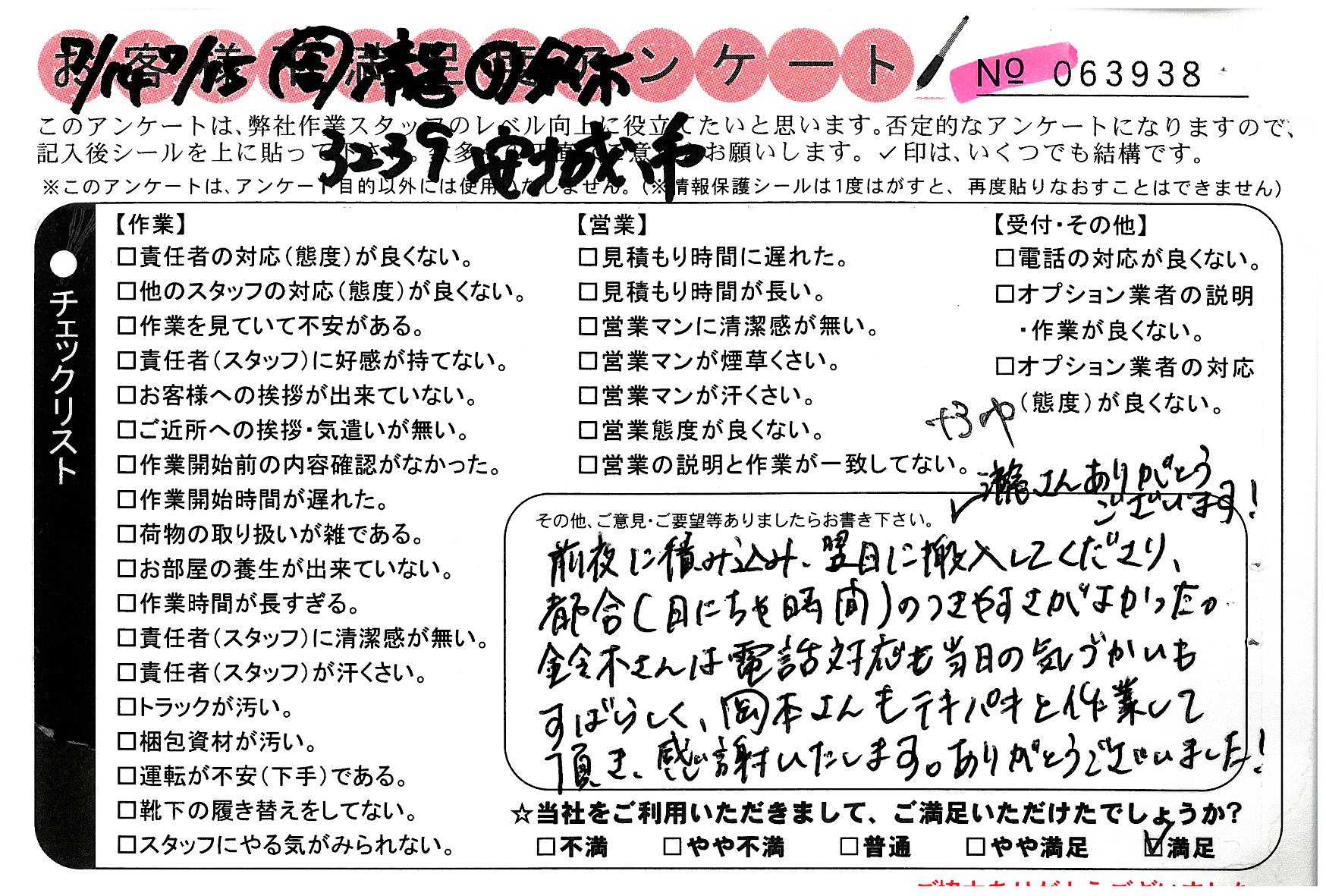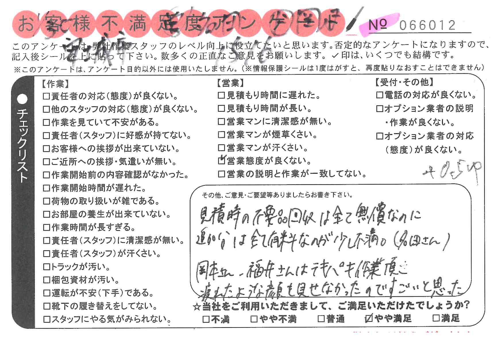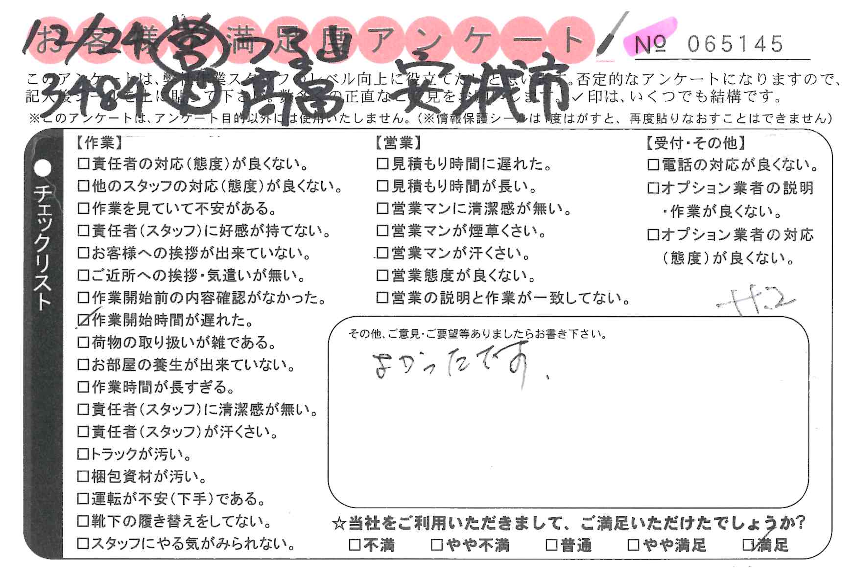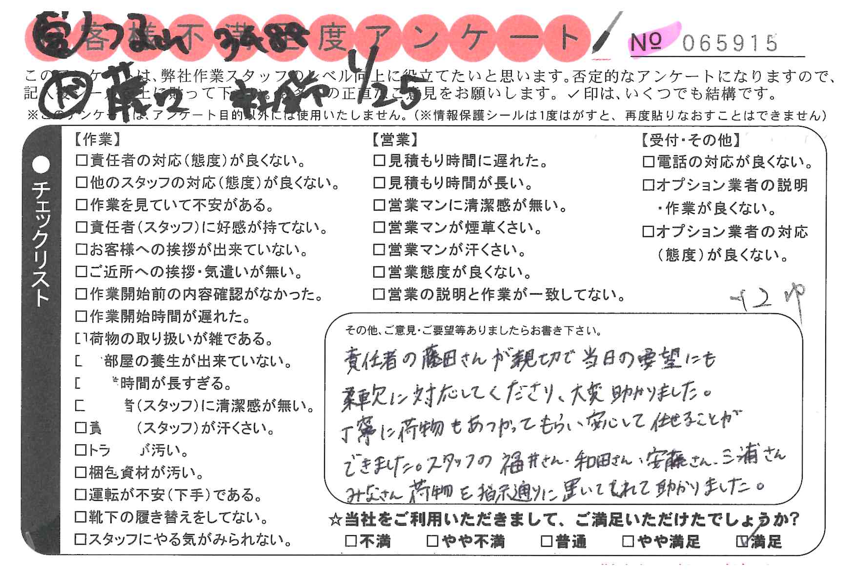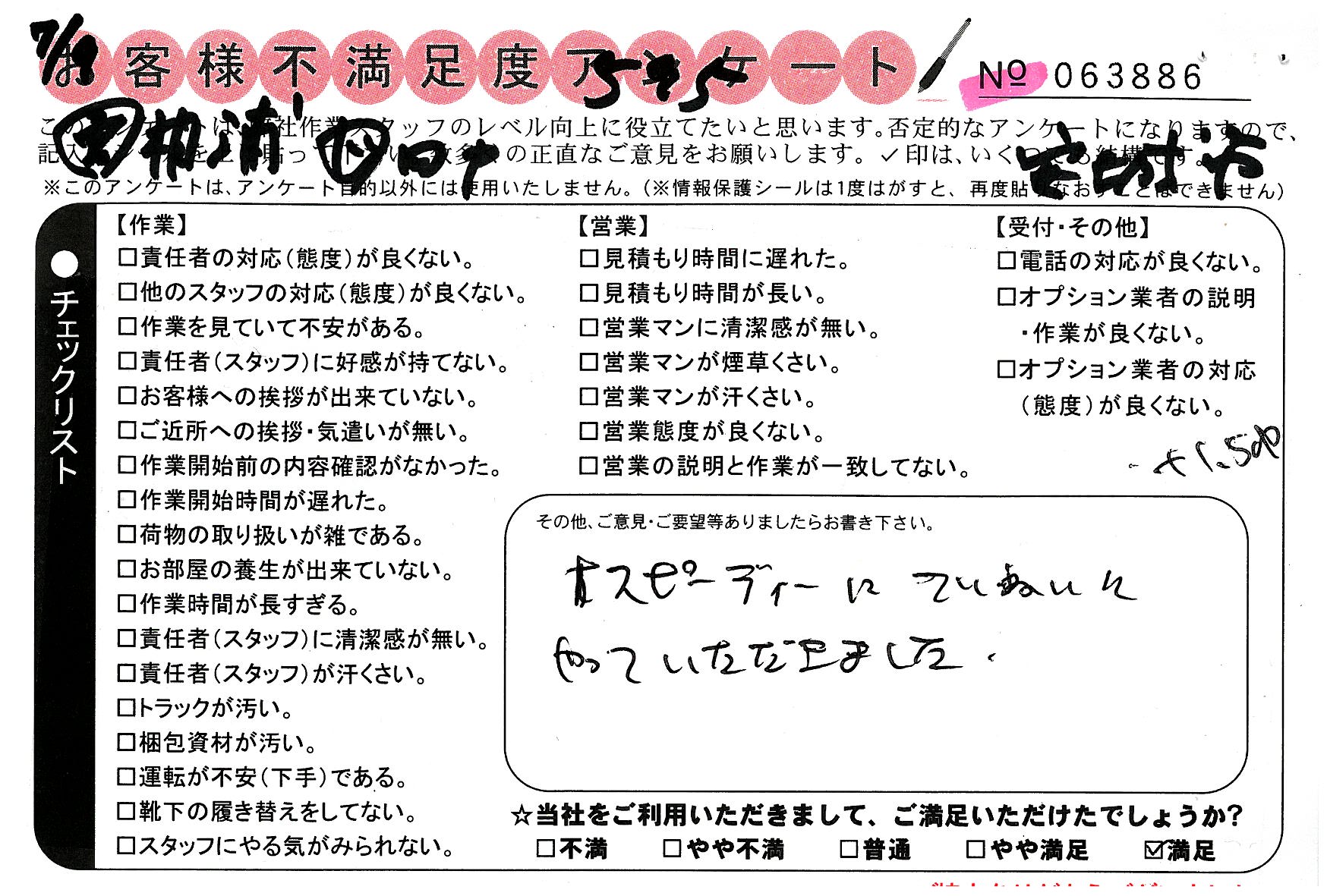引越一番でお引越しをしていただいたお客様のうち、コメントいただいたアンケートを全て掲載しています。