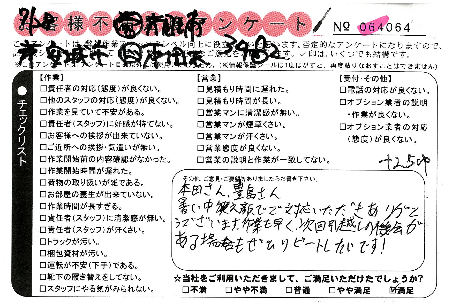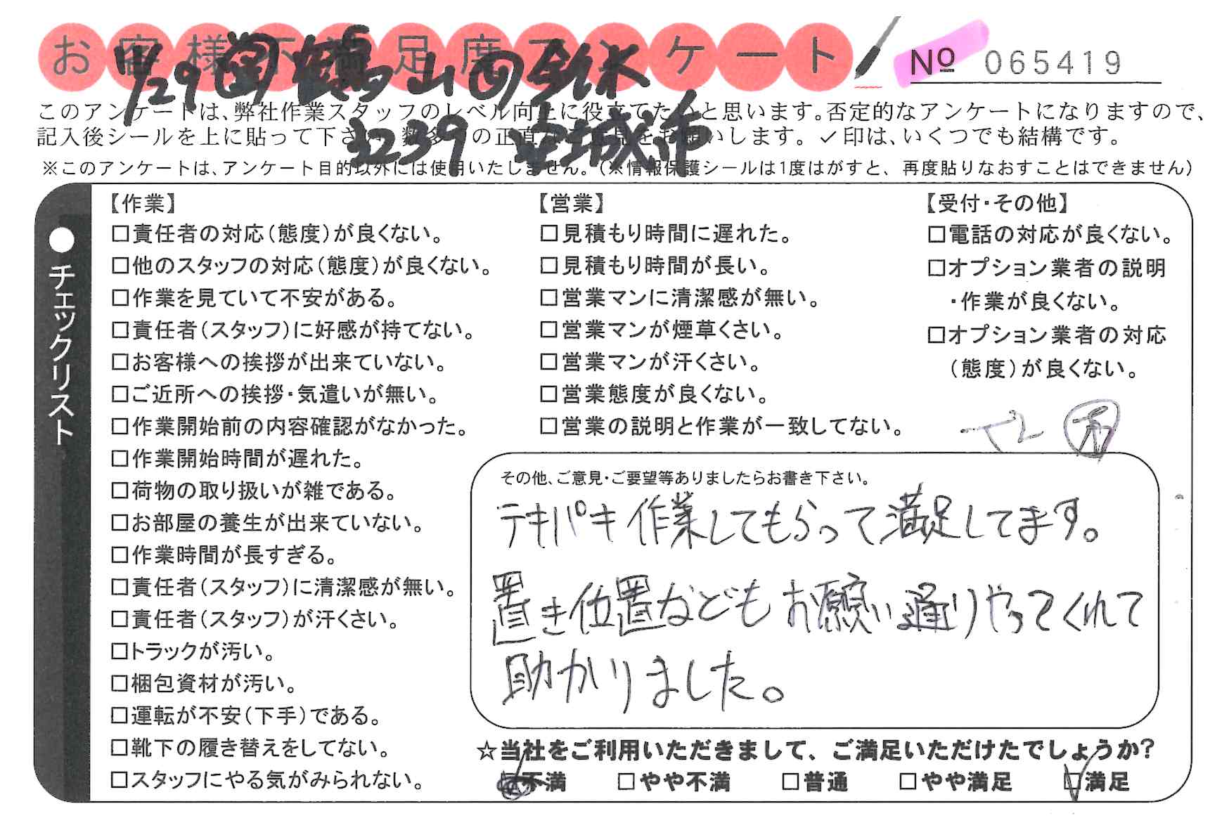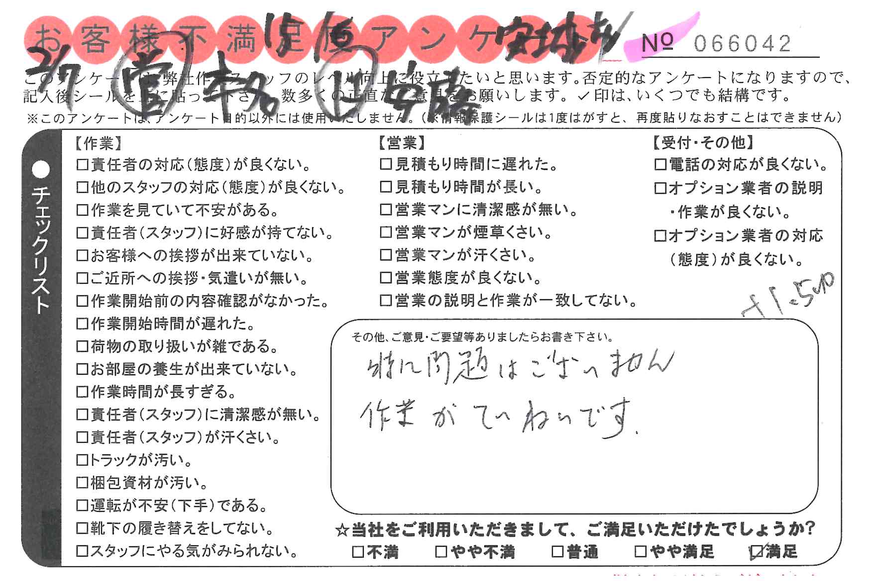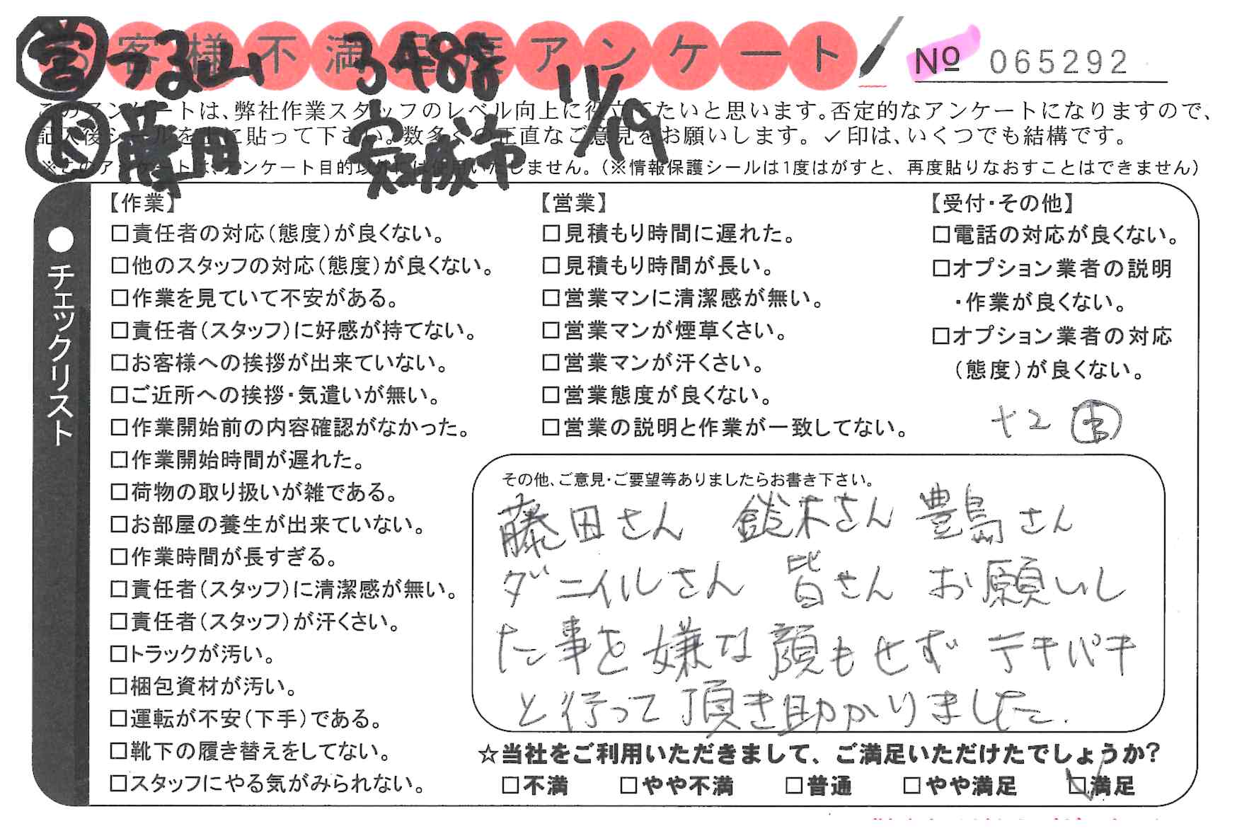 引越一番でお引越しをしていただいたお客様のうち、コメントいただいたアンケートを全て掲載しています。