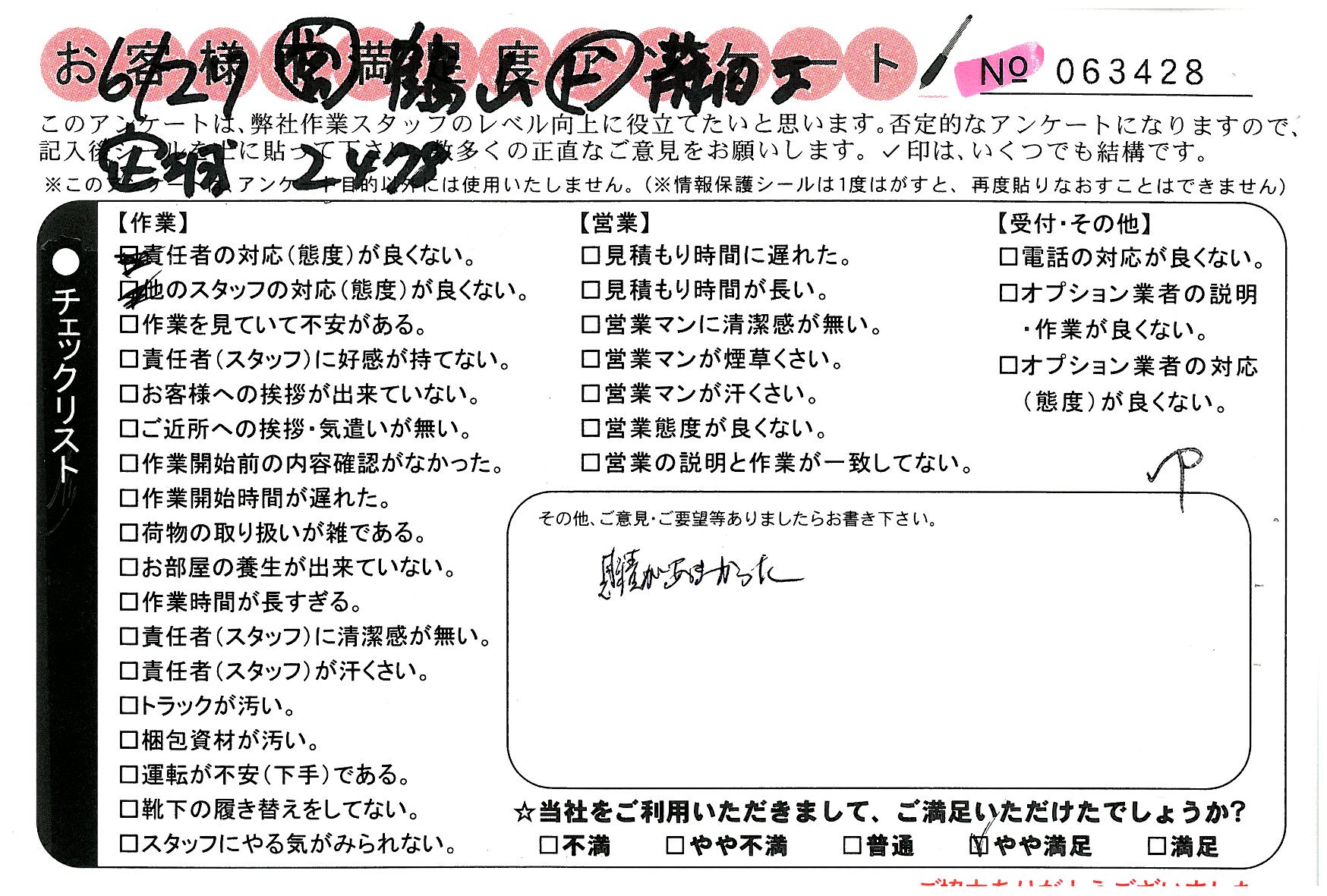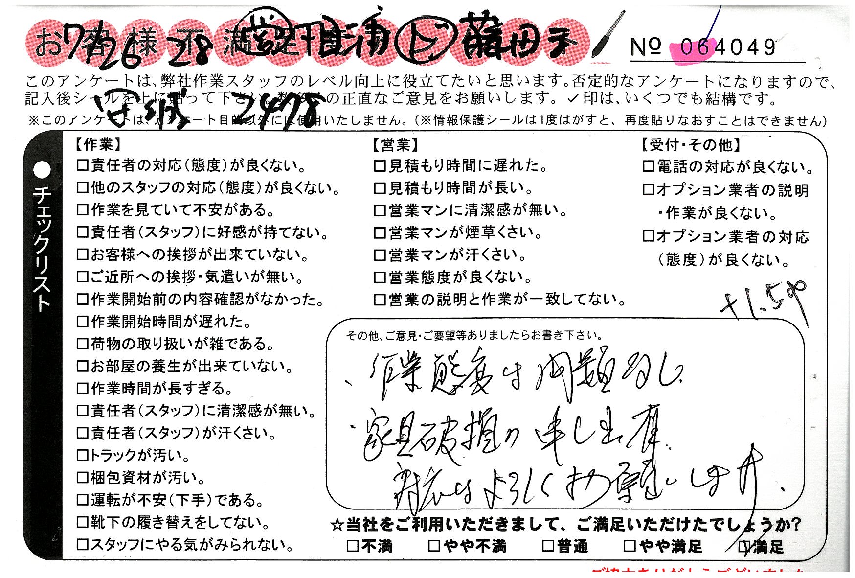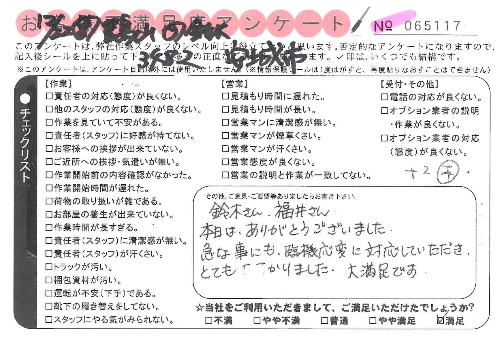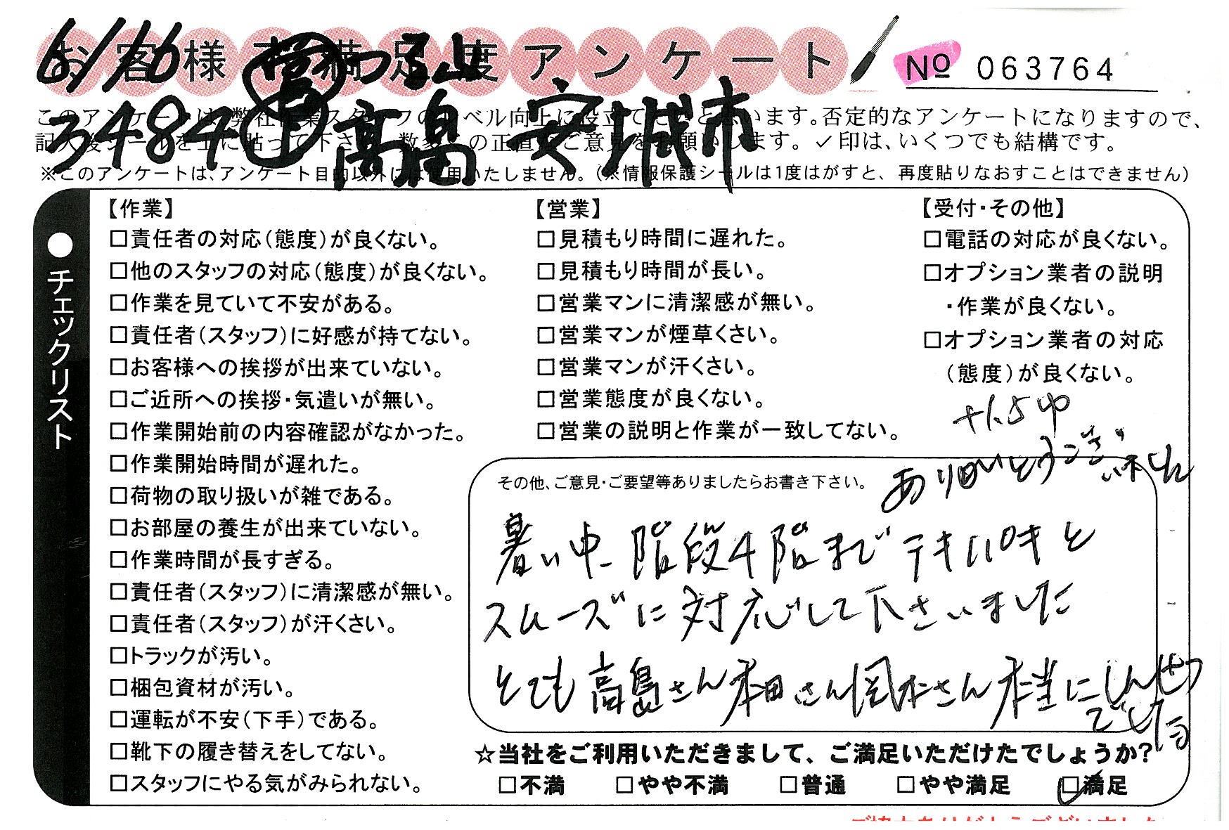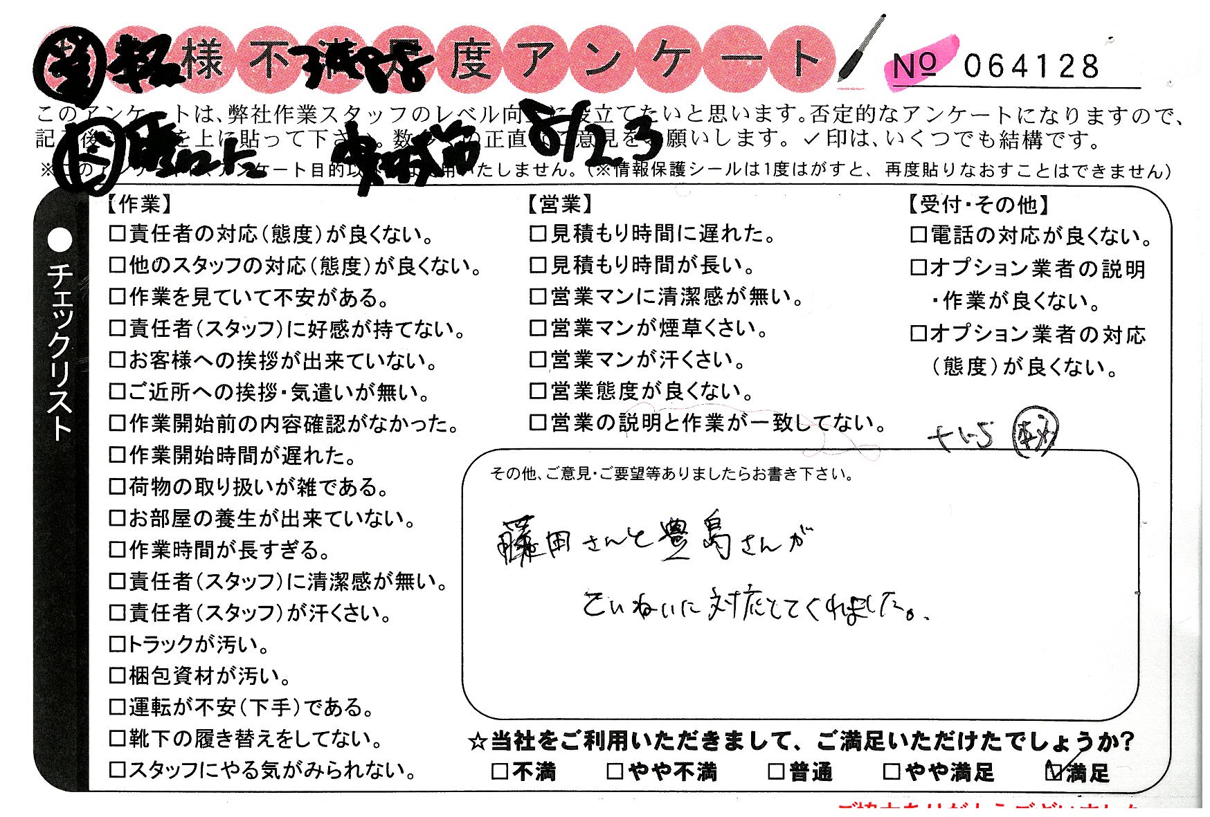 引越一番でお引越しをしていただいたお客様のうち、コメントいただいたアンケートを全て掲載しています。