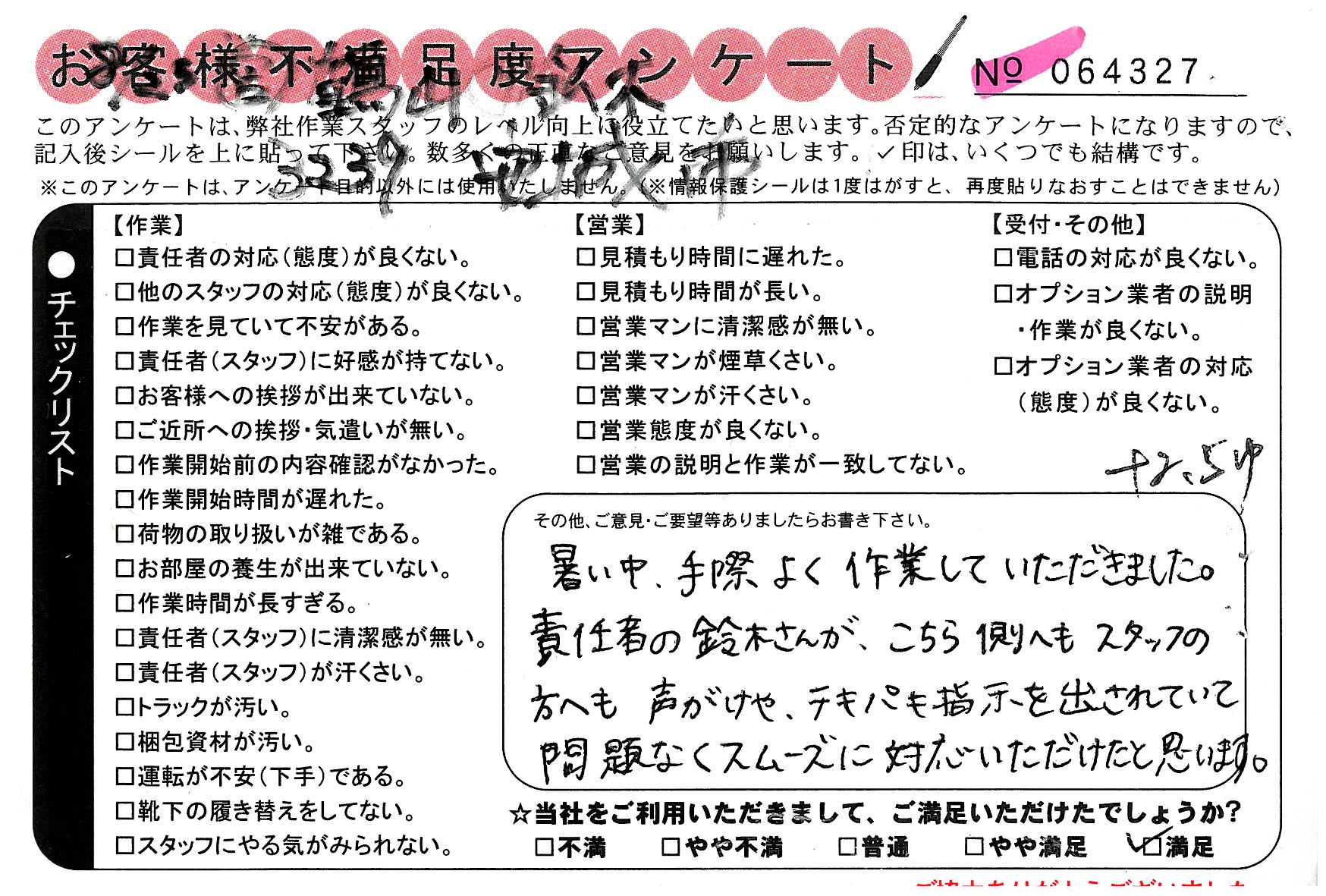 営業の方は、対応に不満あり。