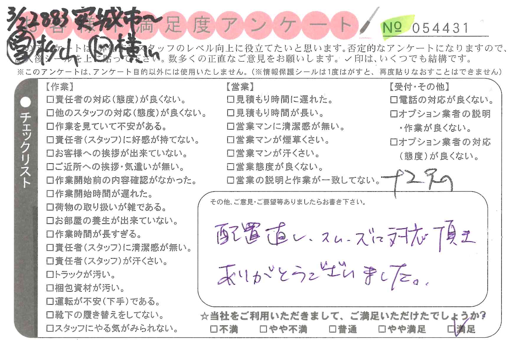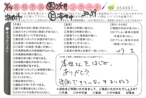 引越一番でお引越しをしていただいたお客様のうち、コメントいただいたアンケートを全て掲載しています。