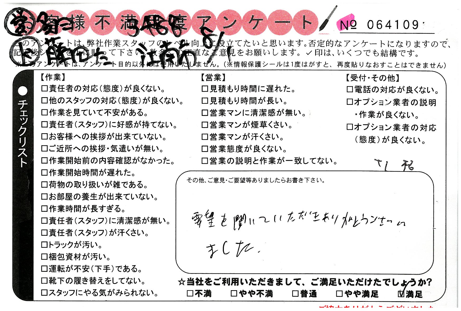 引越一番でお引越しをしていただいたお客様のうち、コメントいただいたアンケートを全て掲載しています。