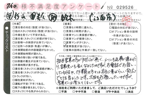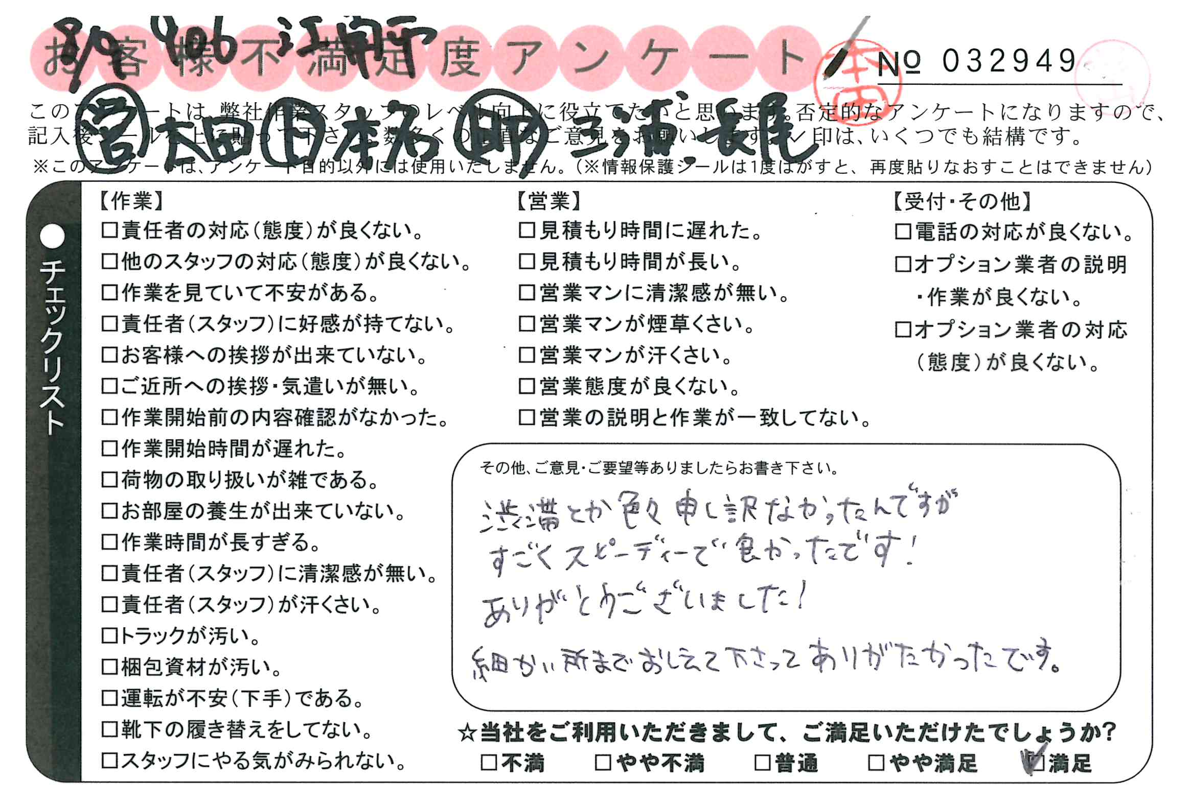 引越一番でお引越しをしていただいたお客様のうち、コメントいただいたアンケートを全て掲載しています。