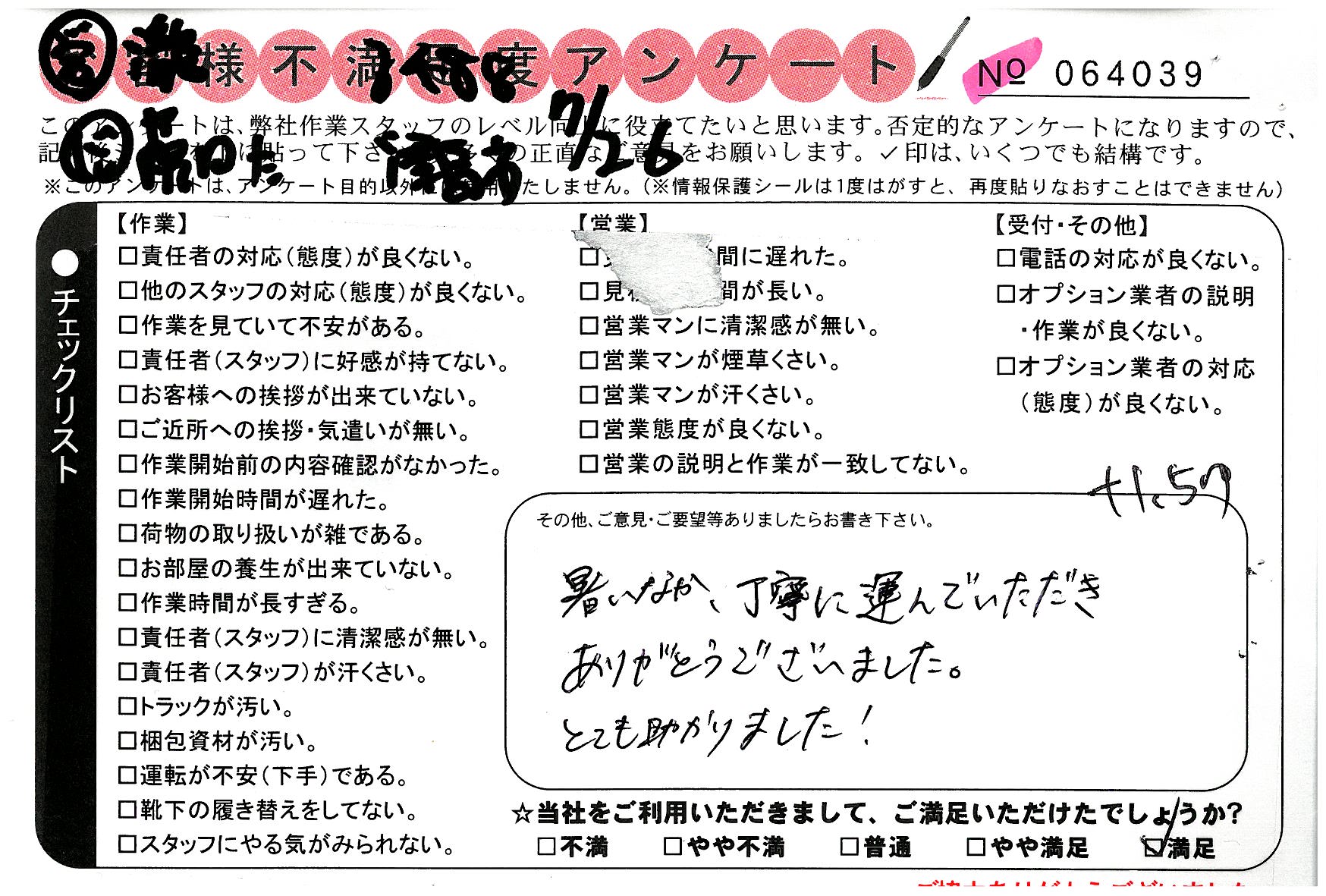 引越一番でお引越しをしていただいたお客様のうち、コメントいただいたアンケートを全て掲載しています。