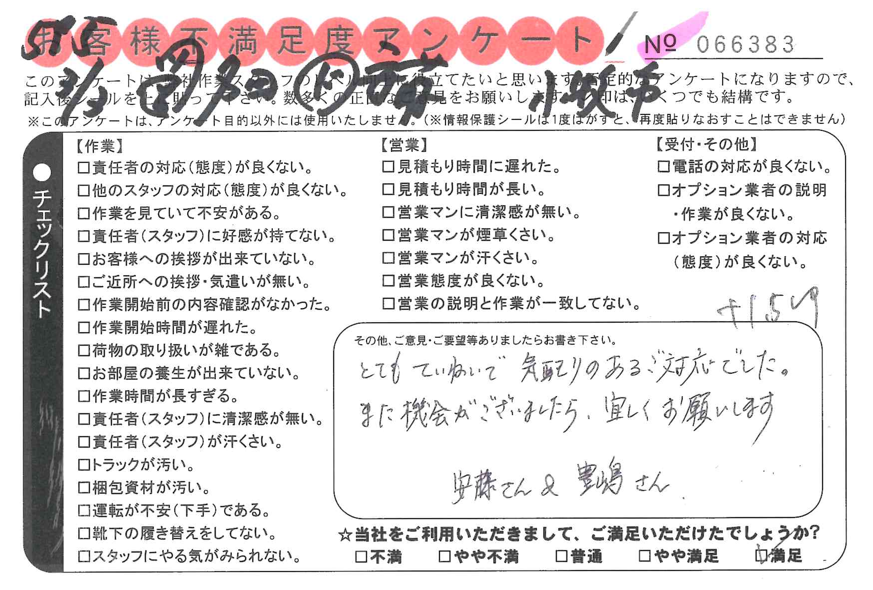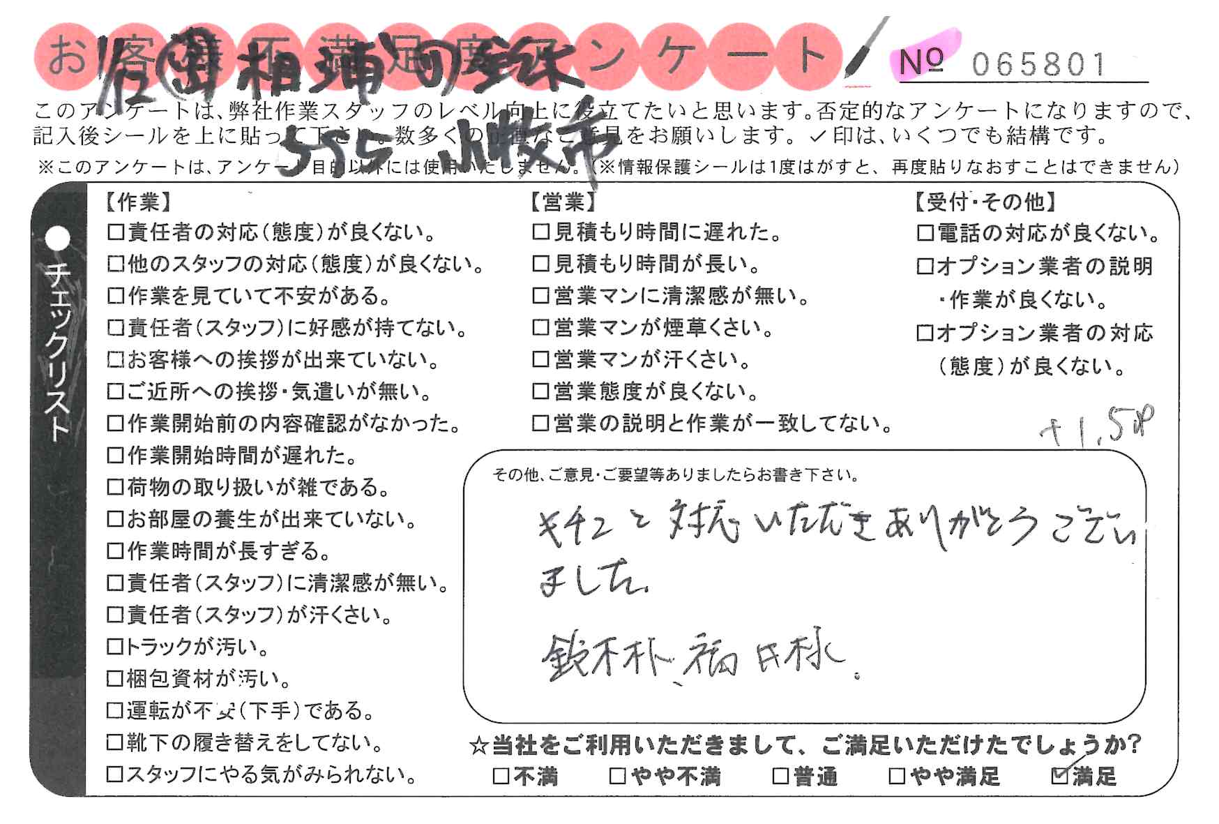 不満足度アンケートを行っている引越一番では、不評なアンケートも、好評なアンケートも全て掲載しています。