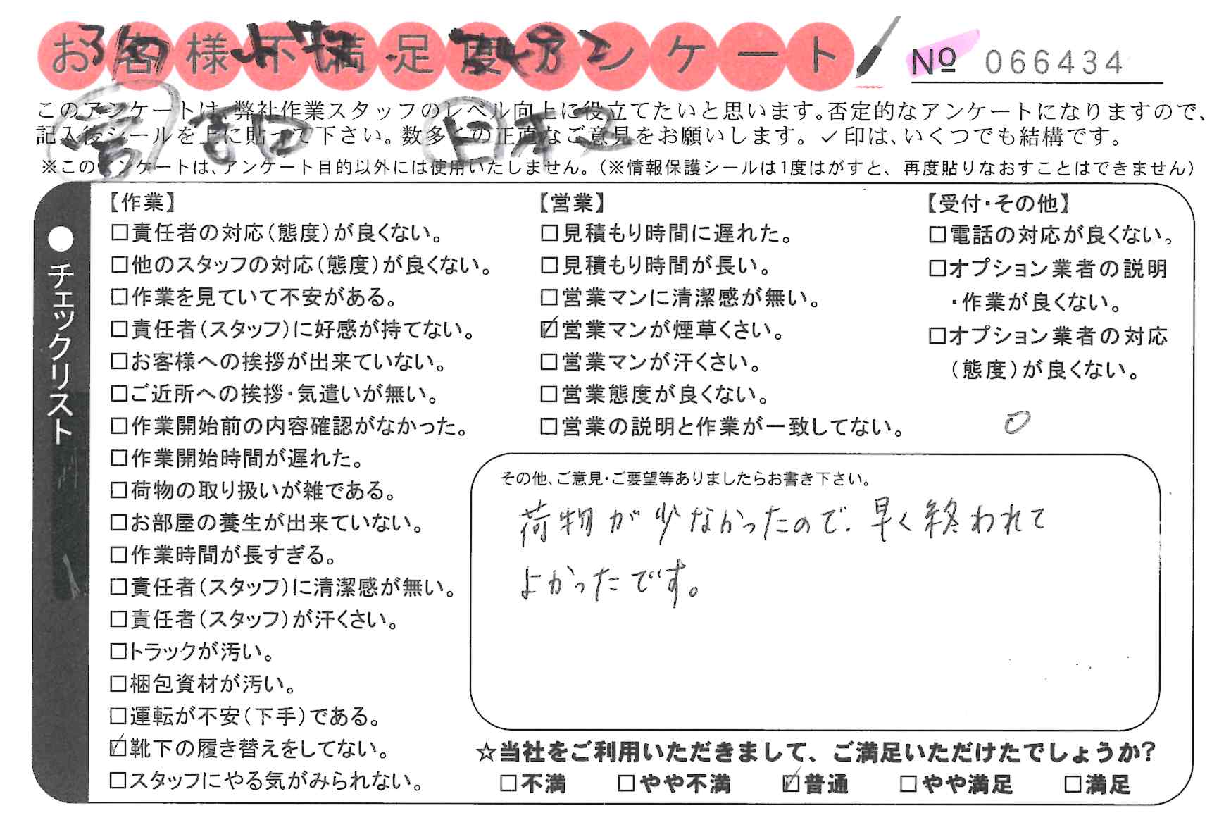 * 荷物が少なかったので、早く終われてよかったです。
