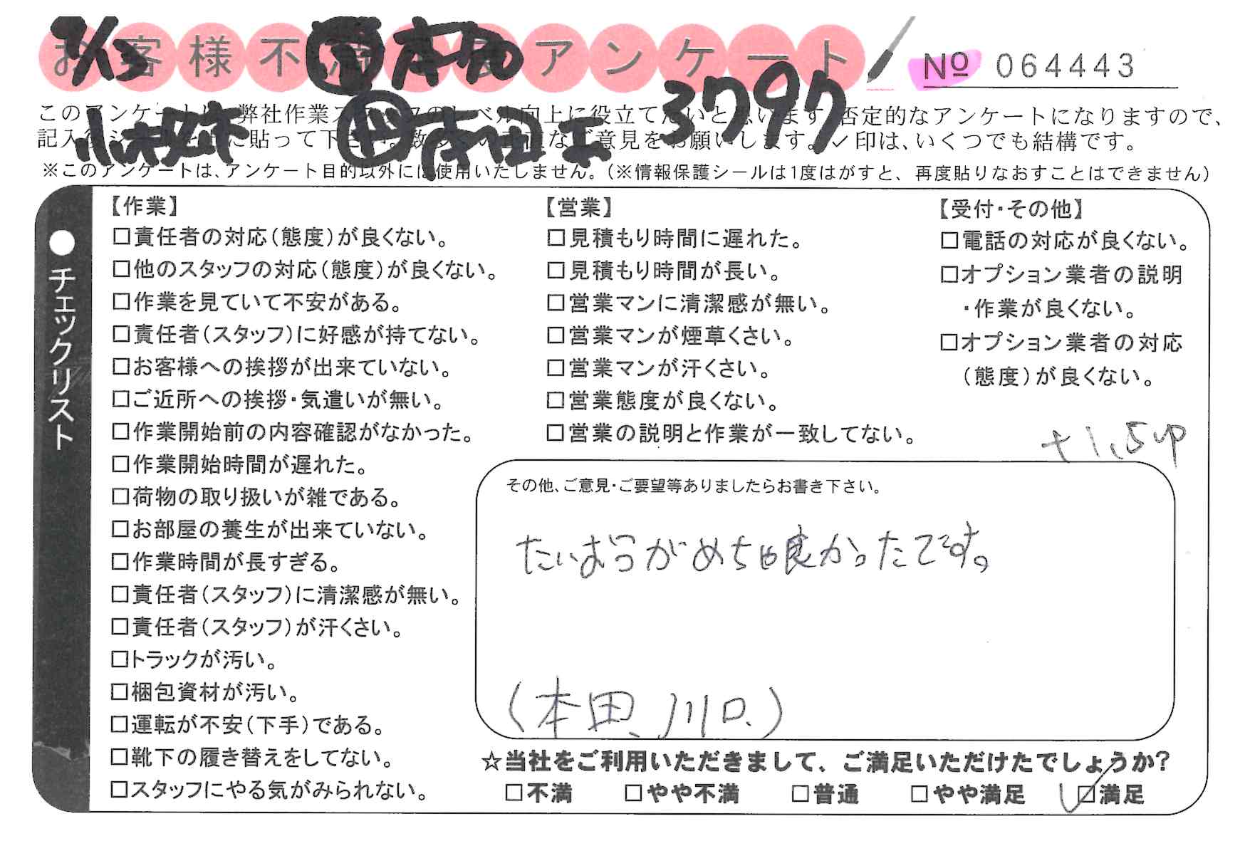 不満足度アンケートを行っている引越一番では、不評なアンケートも、好評なアンケートも全て掲載しています。