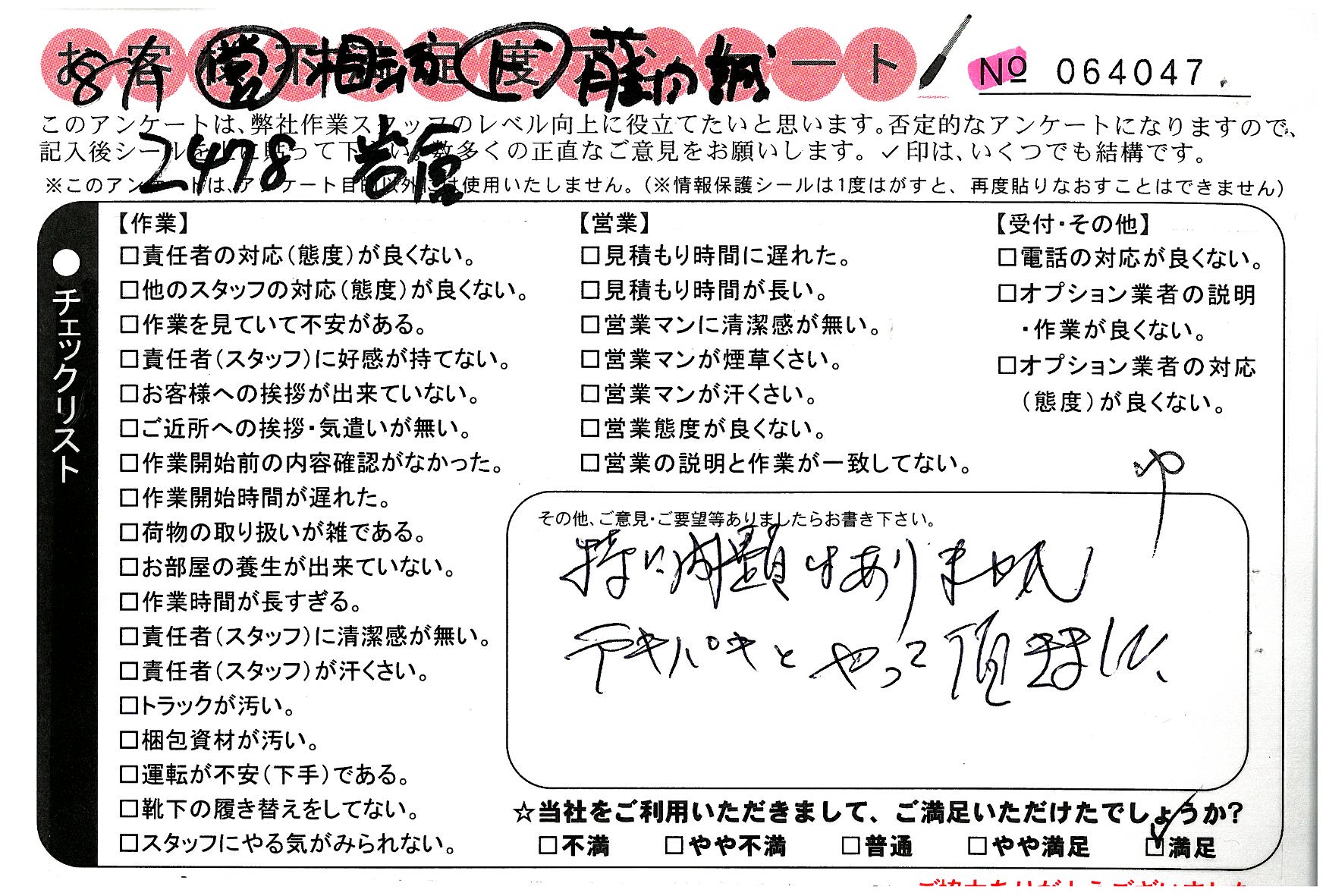 引越一番でお引越しをしていただいたお客様のうち、コメントいただいたアンケートを全て掲載しています。