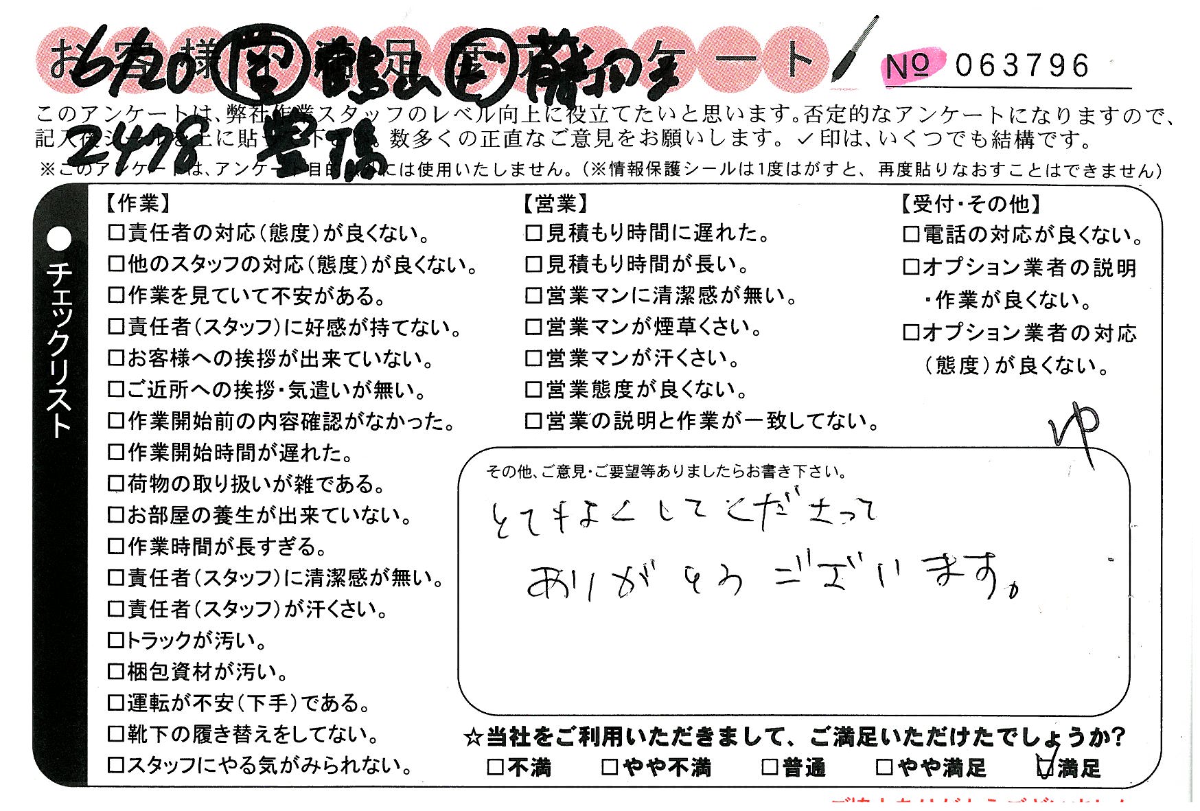 引越一番でお引越しをしていただいたお客様のうち、コメントいただいたアンケートを全て掲載しています。