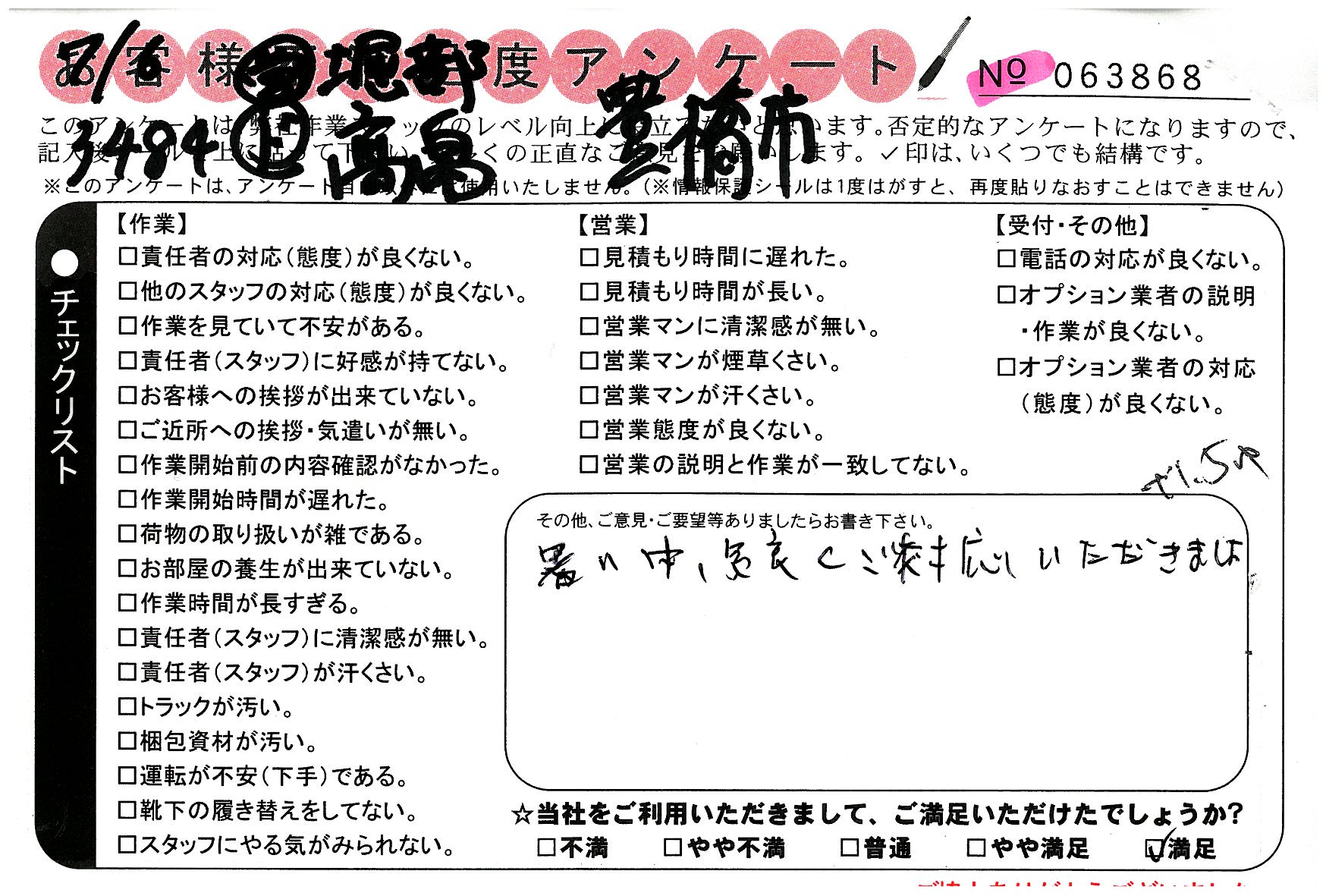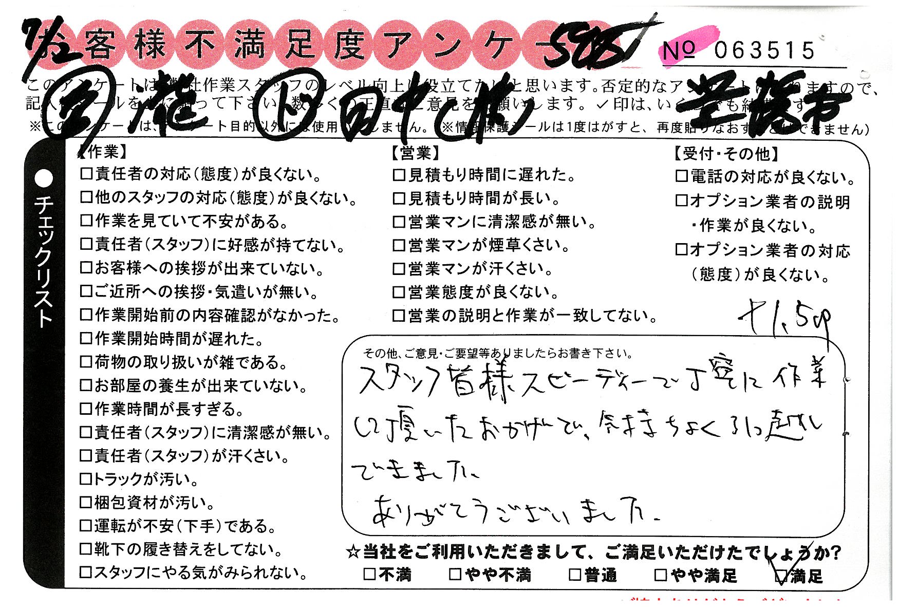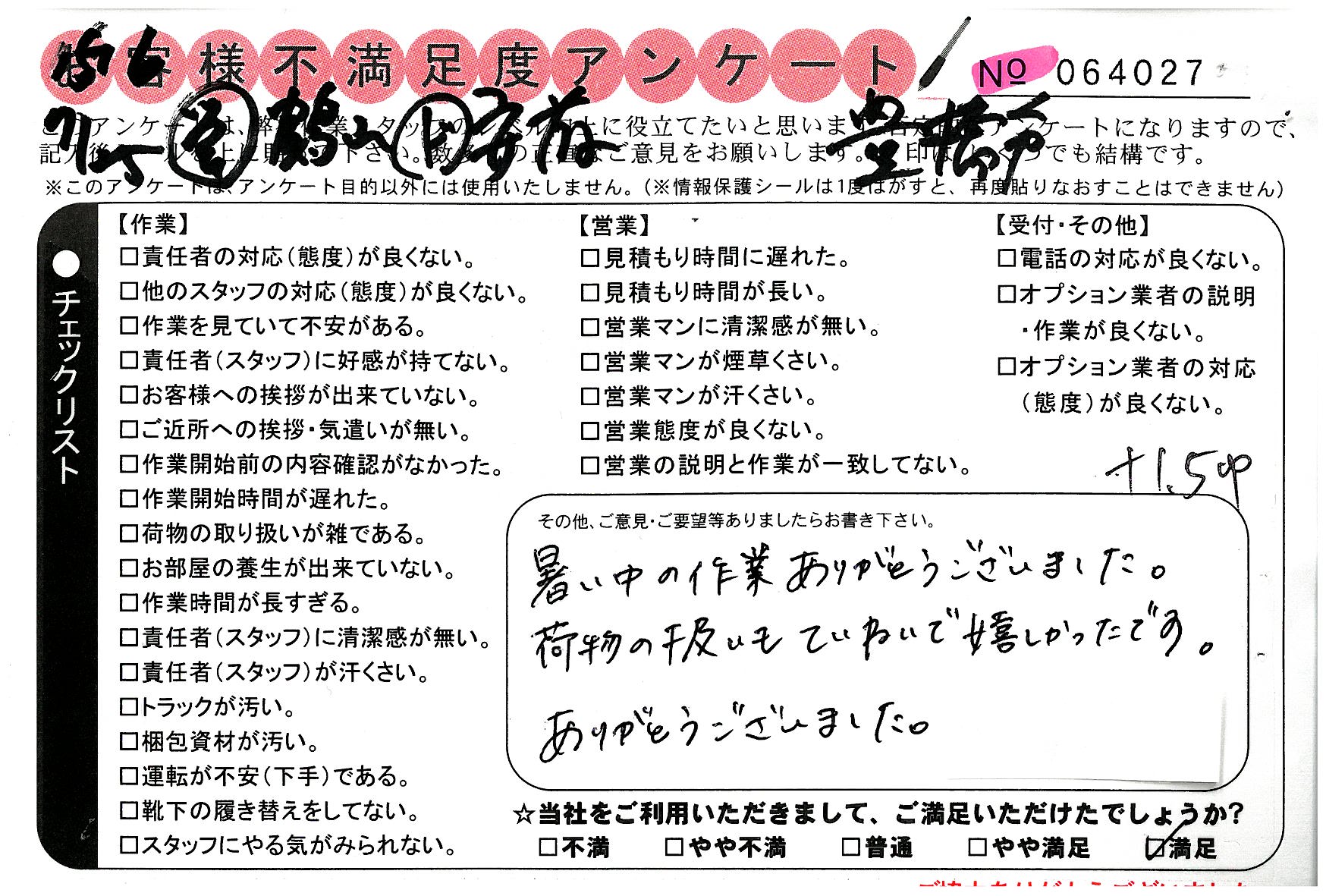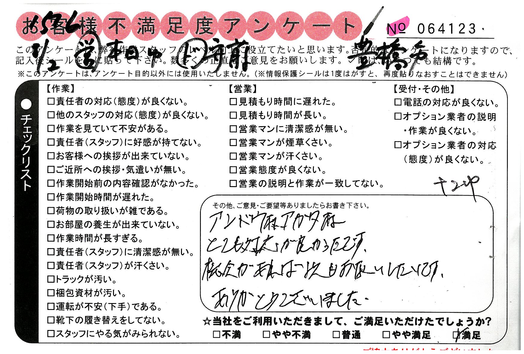 引越一番でお引越しをしていただいたお客様のうち、コメントいただいたアンケートを全て掲載しています。