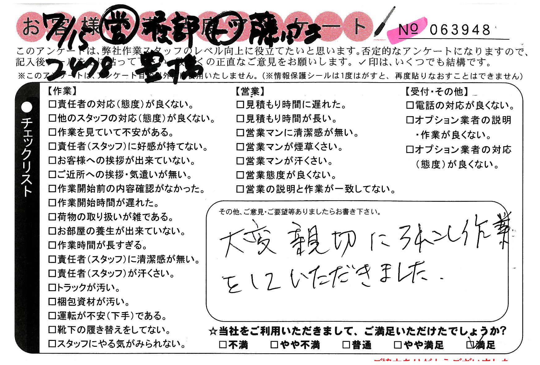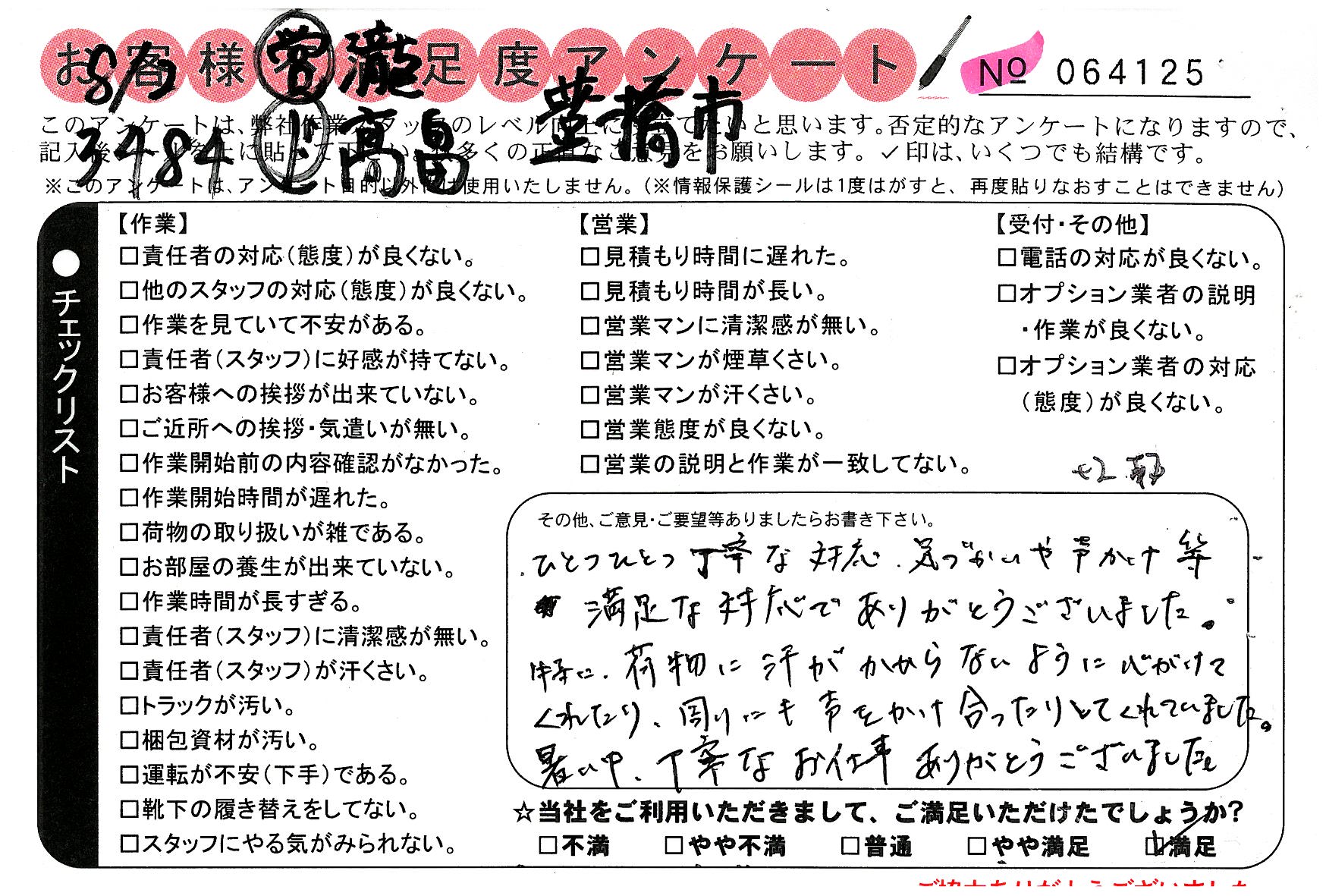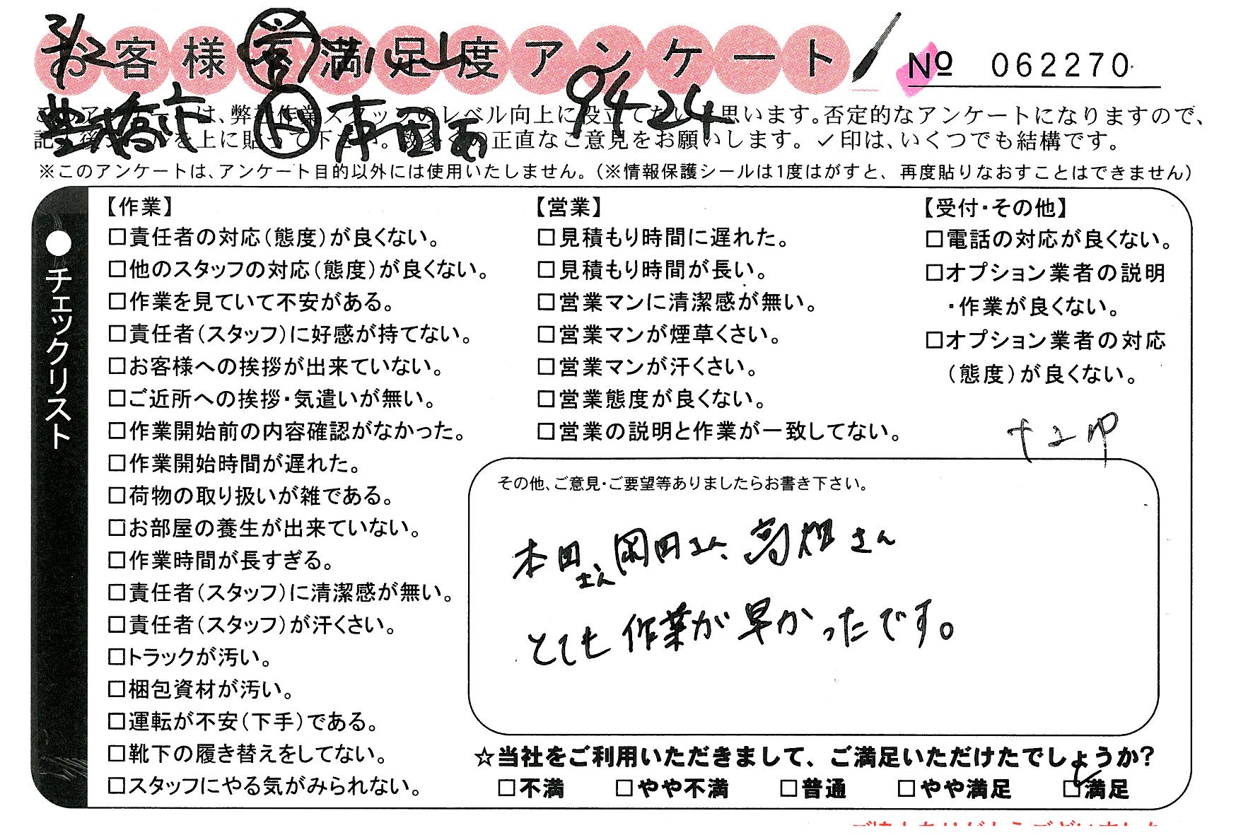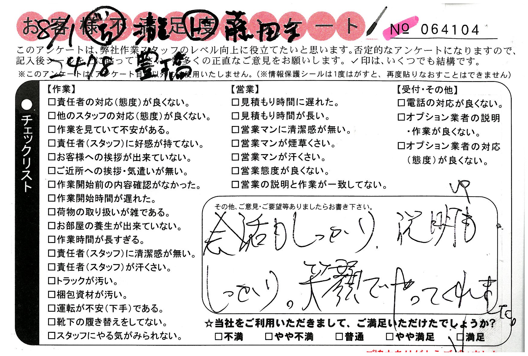 引越一番でお引越しをしていただいたお客様のうち、コメントいただいたアンケートを全て掲載しています。