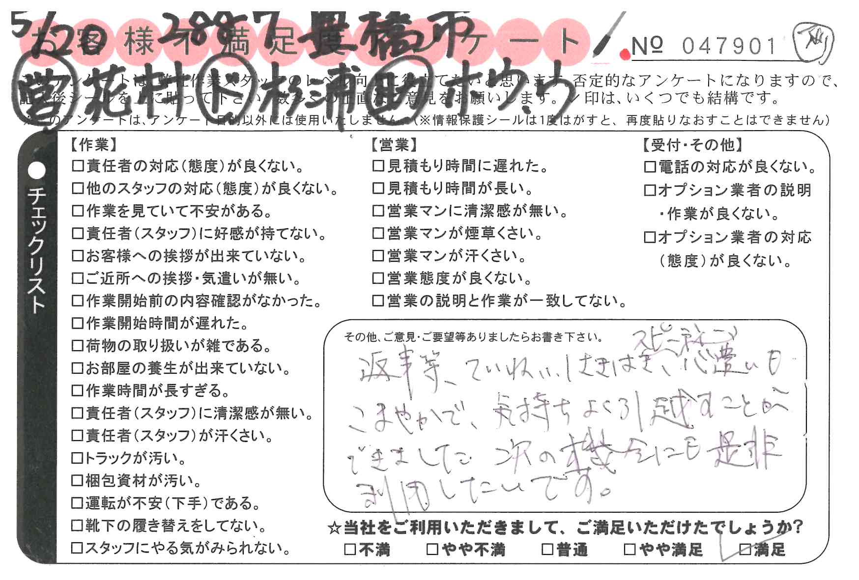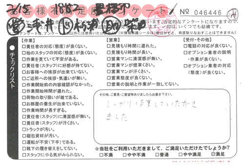 引越一番でお引越しをしていただいたお客様のうち、コメントいただいたアンケートを全て掲載しています。