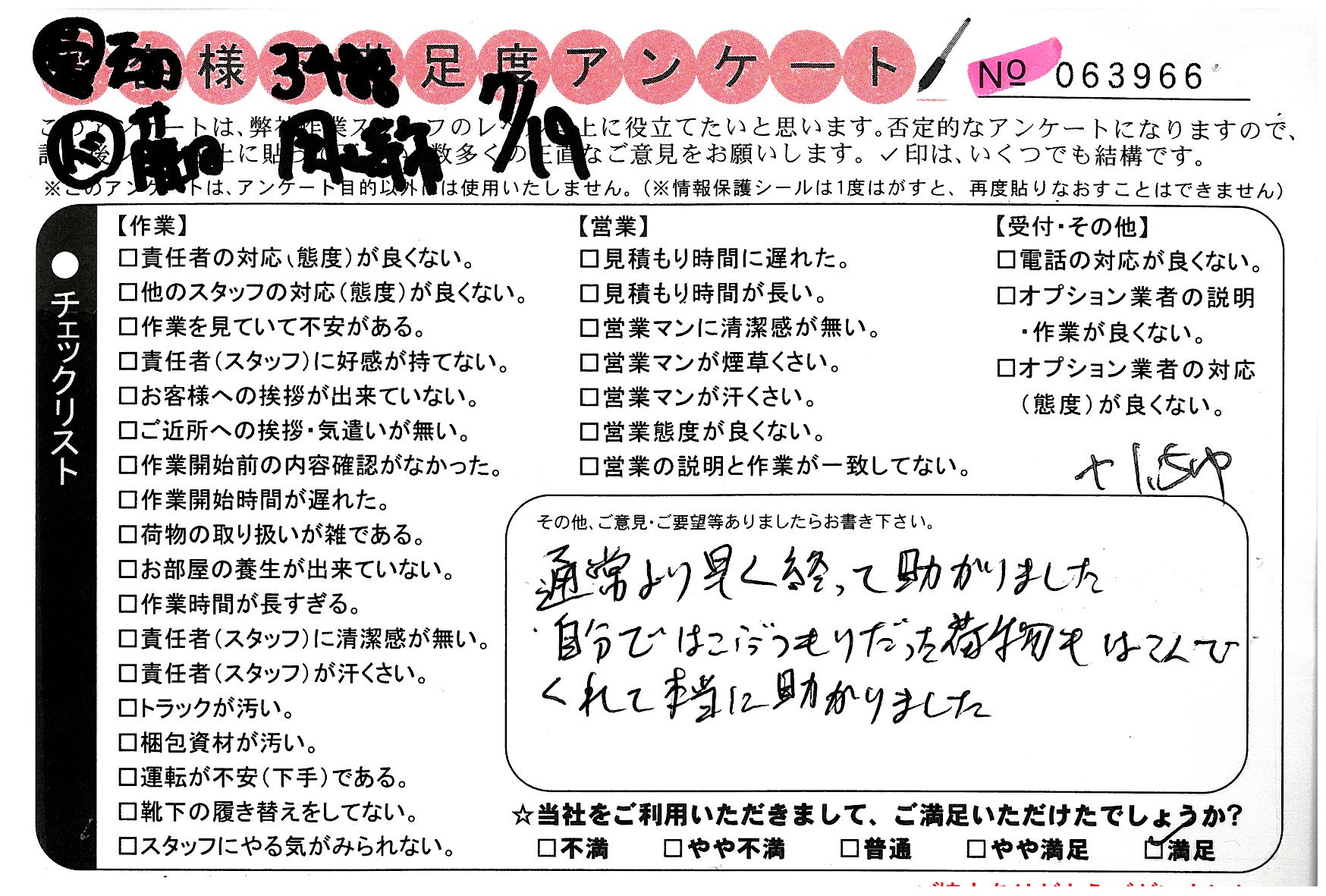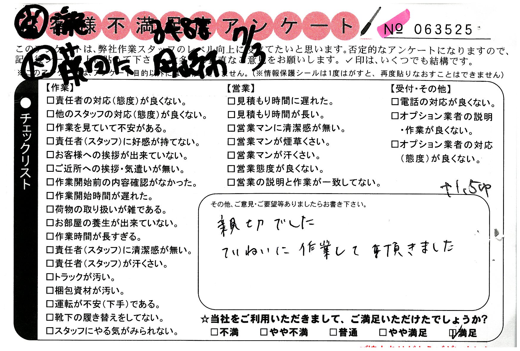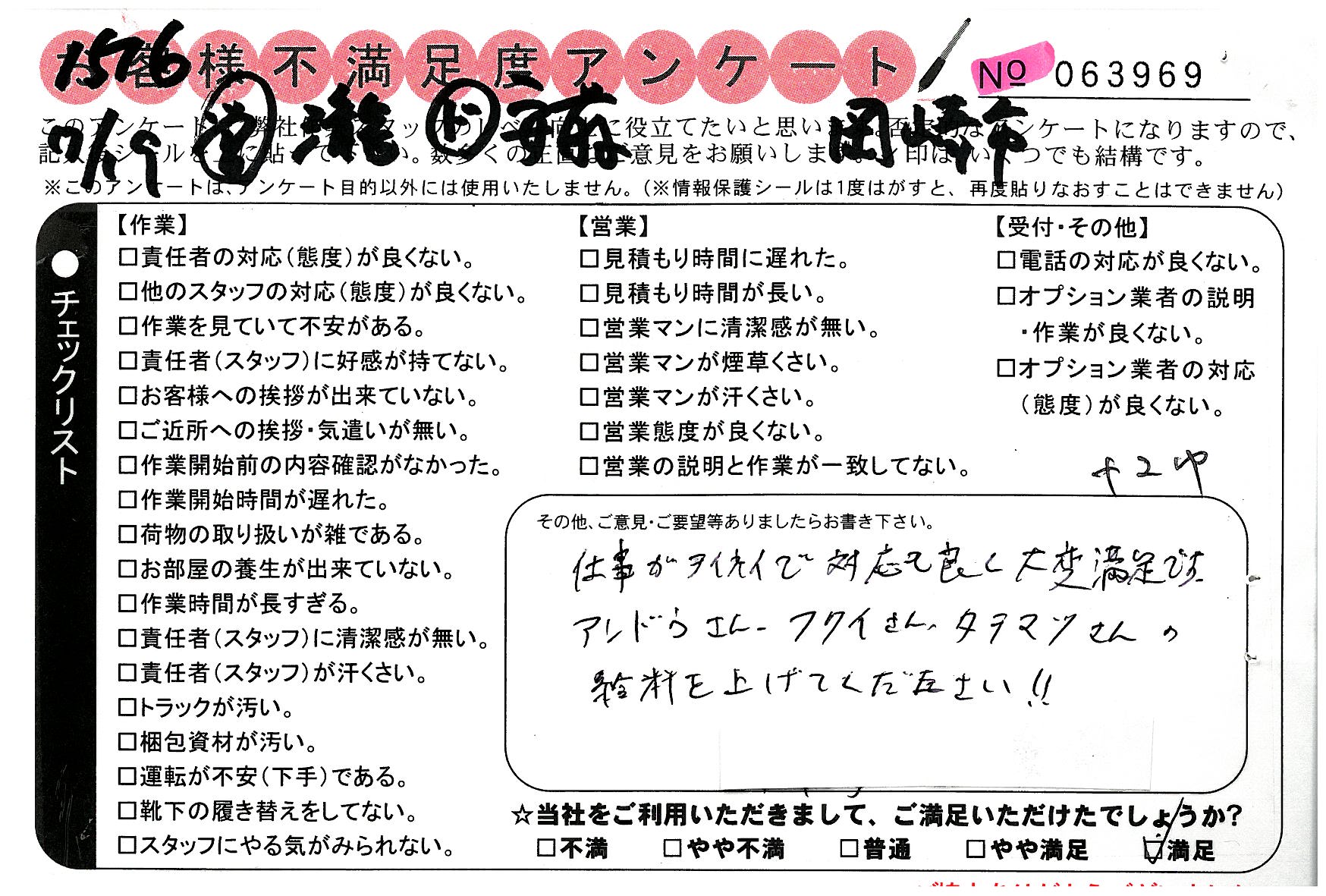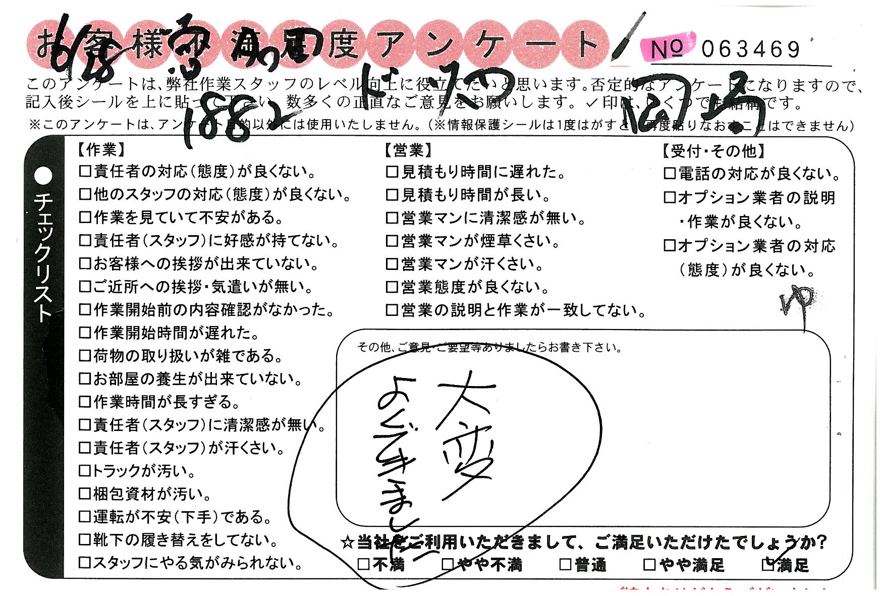 引越一番でお引越しをしていただいたお客様のうち、コメントいただいたアンケートを全て掲載しています。
