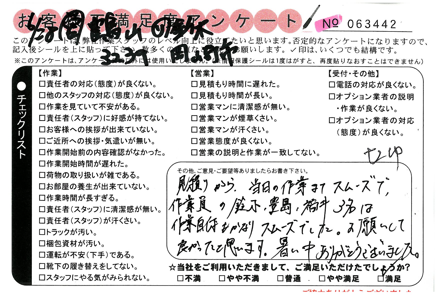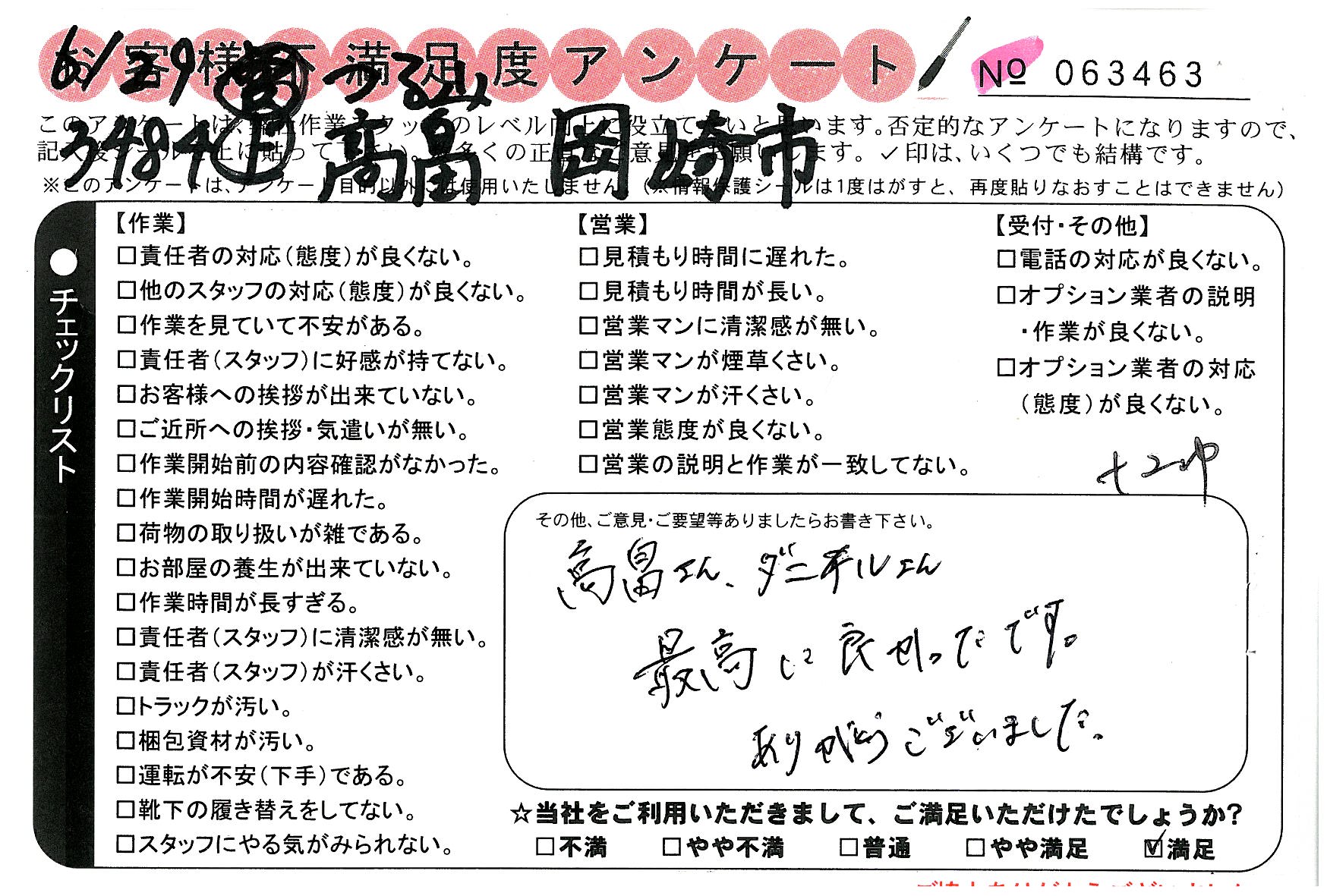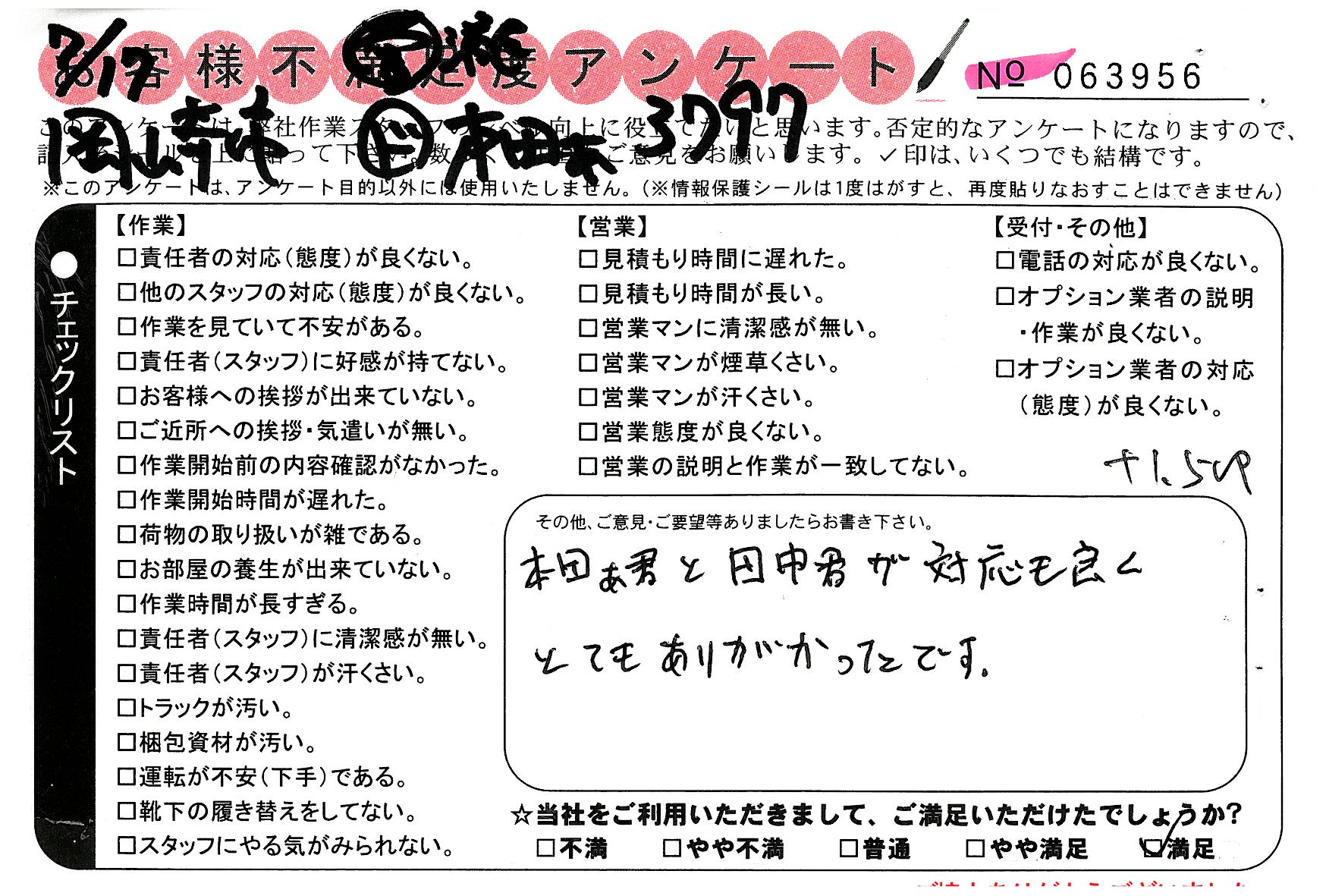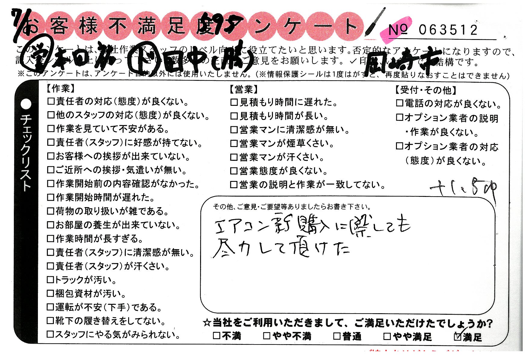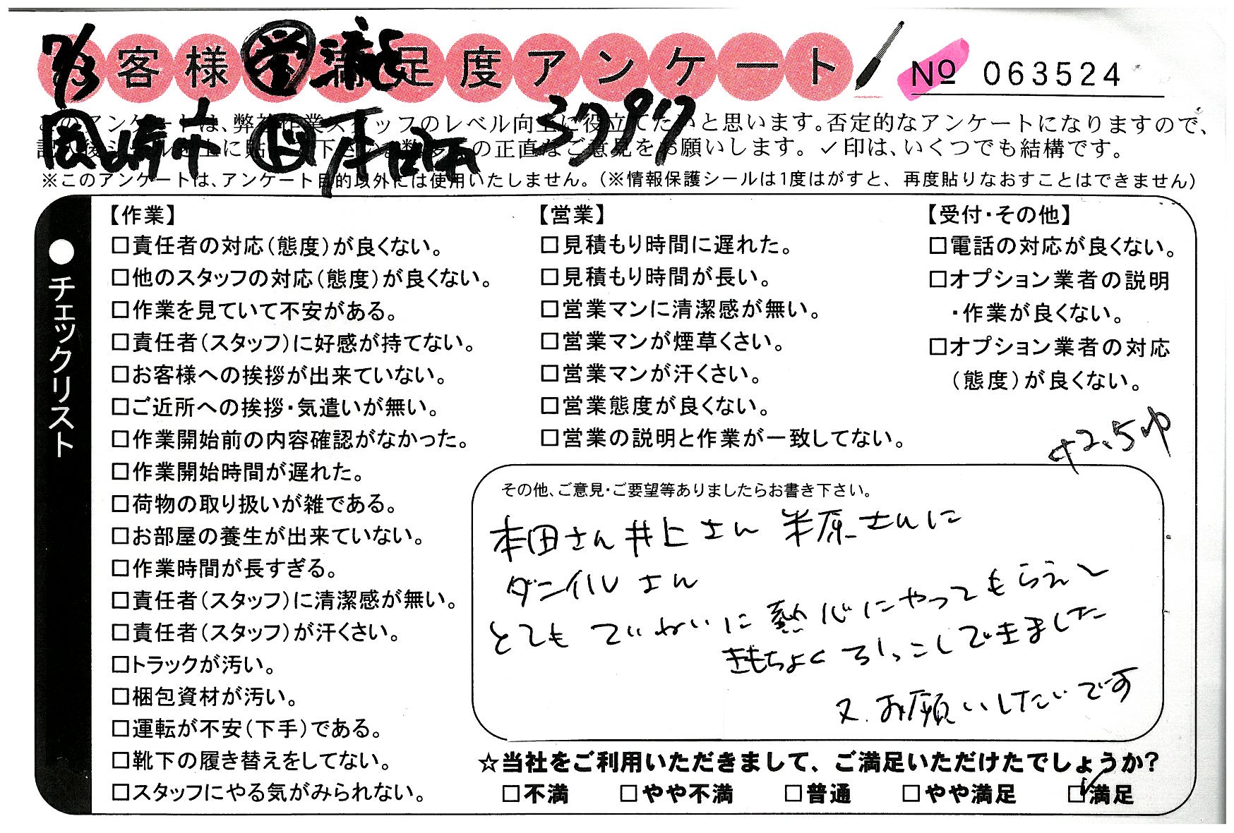 引越一番でお引越しをしていただいたお客様のうち、コメントいただいたアンケートを全て掲載しています。