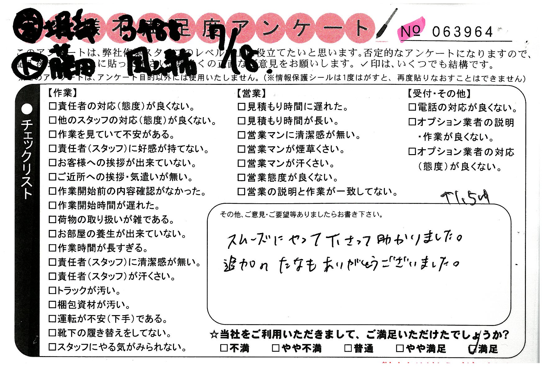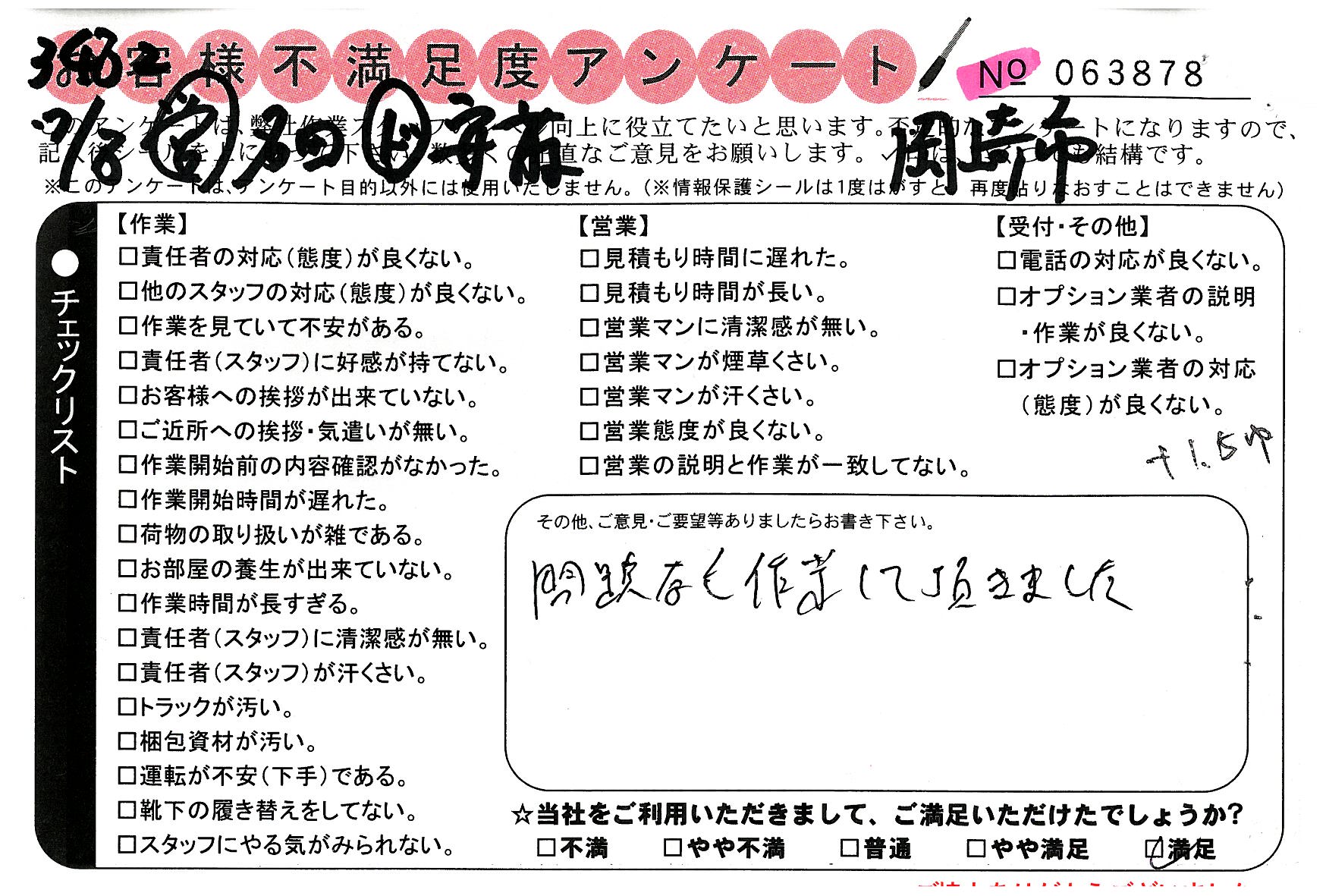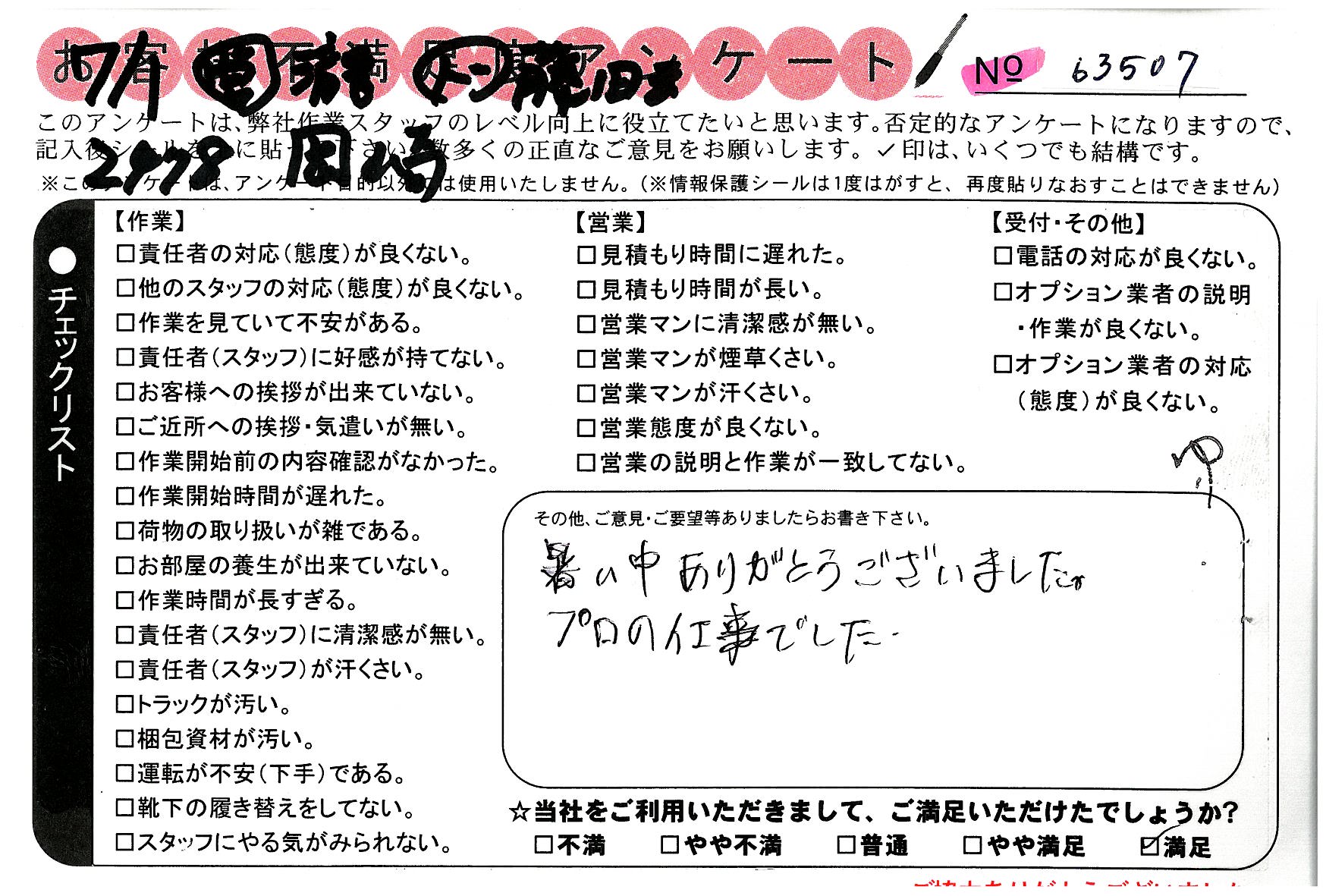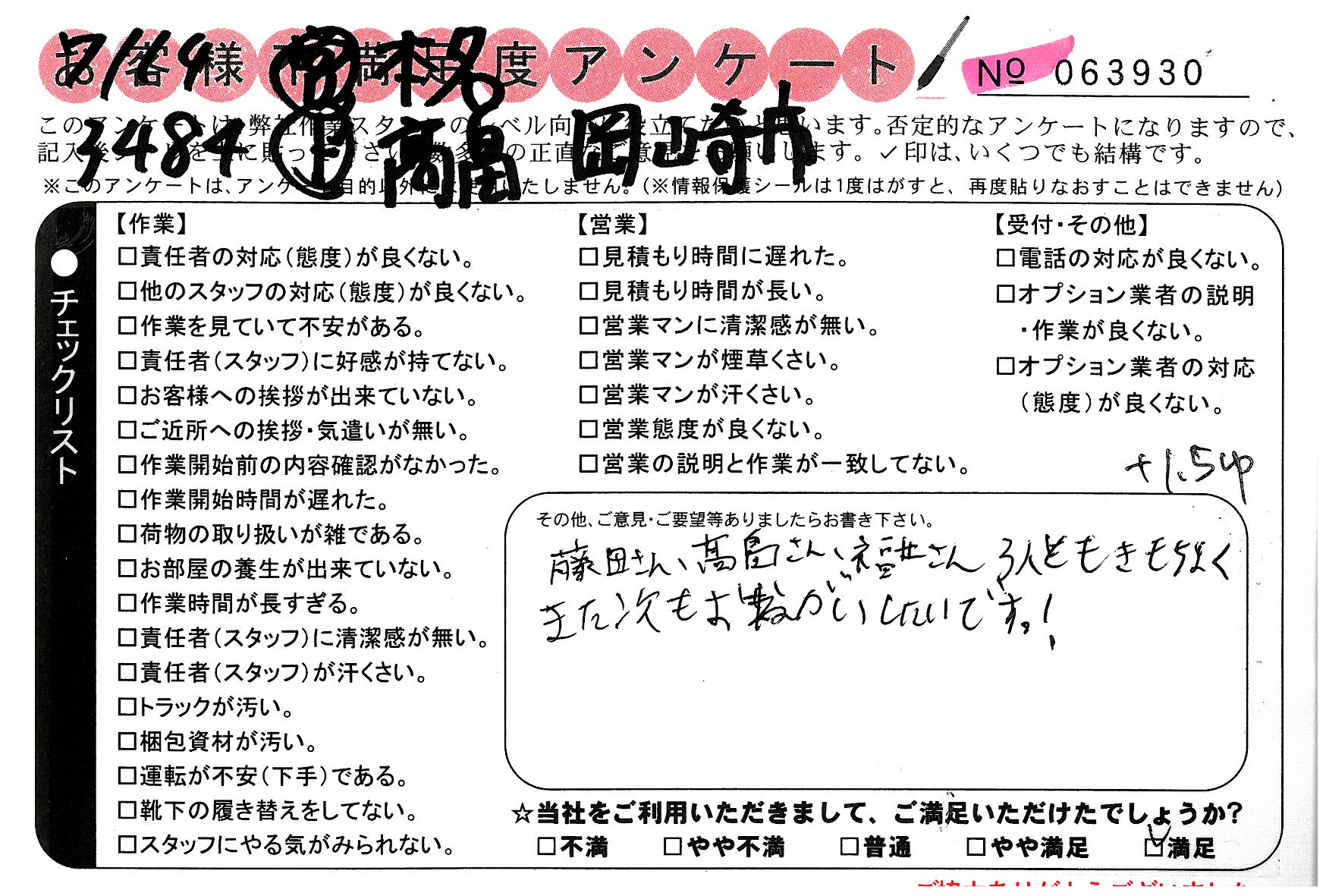 引越一番でお引越しをしていただいたお客様のうち、コメントいただいたアンケートを全て掲載しています。