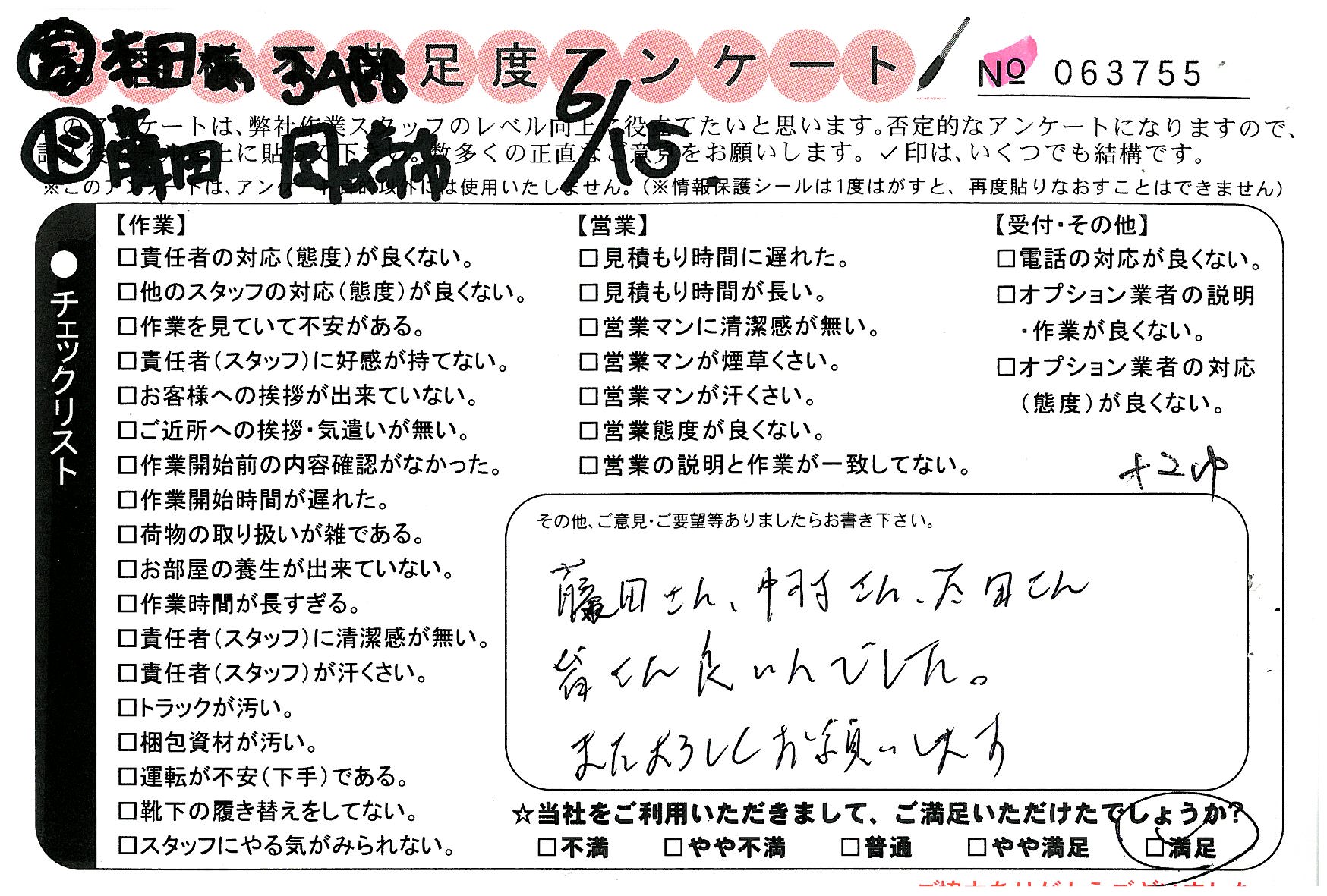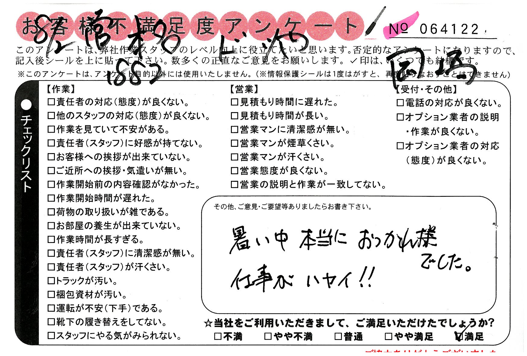 引越一番でお引越しをしていただいたお客様のうち、コメントいただいたアンケートを全て掲載しています。