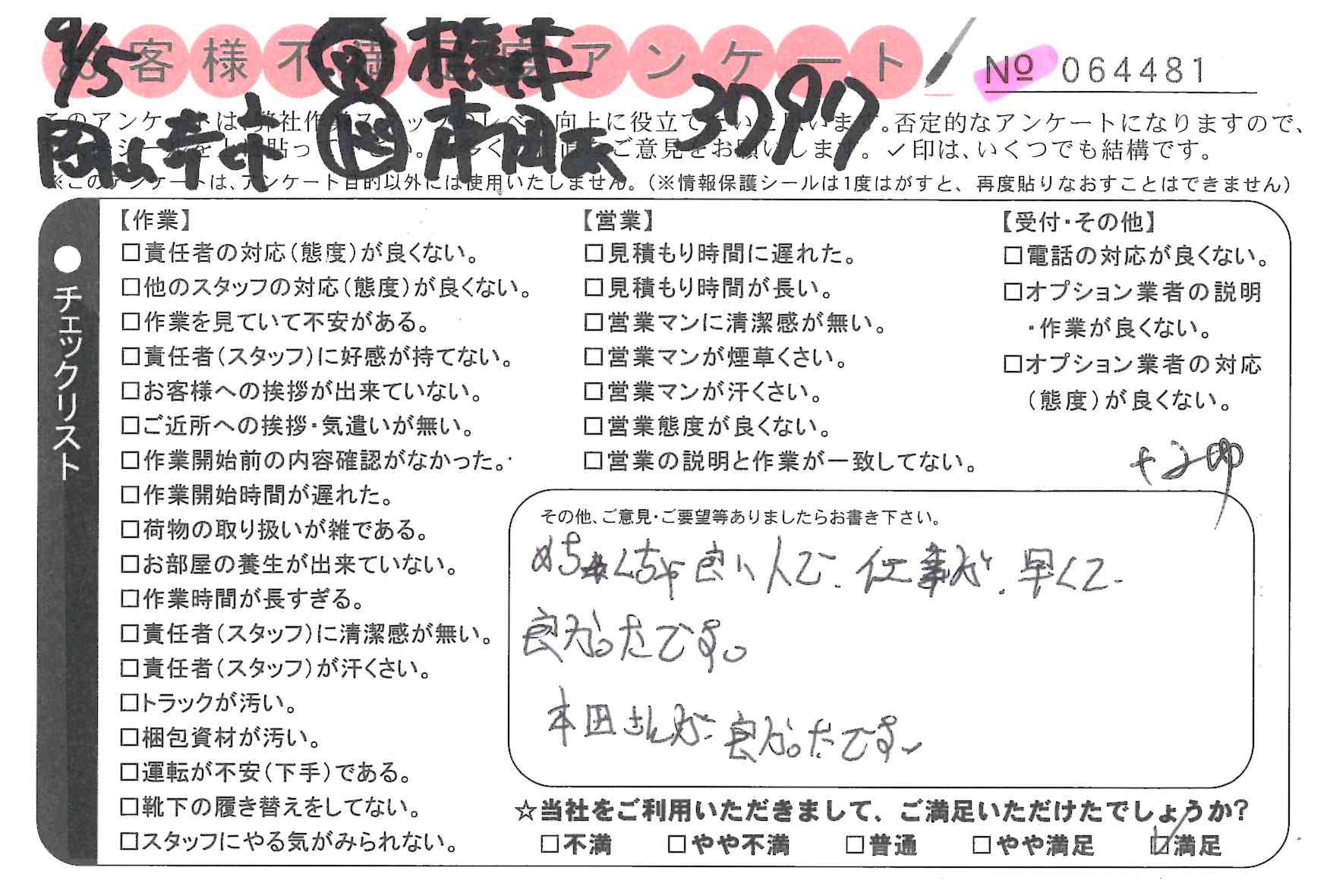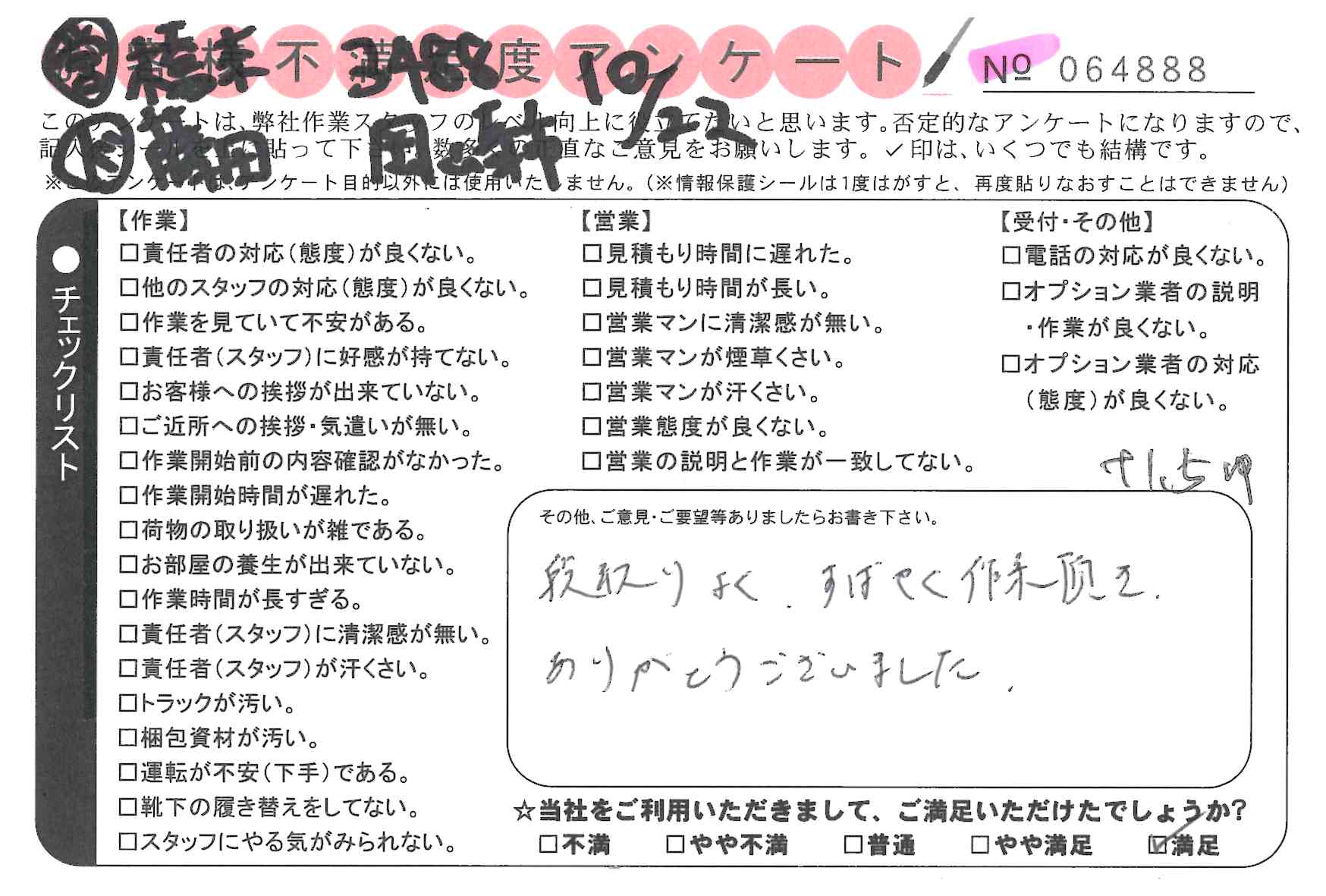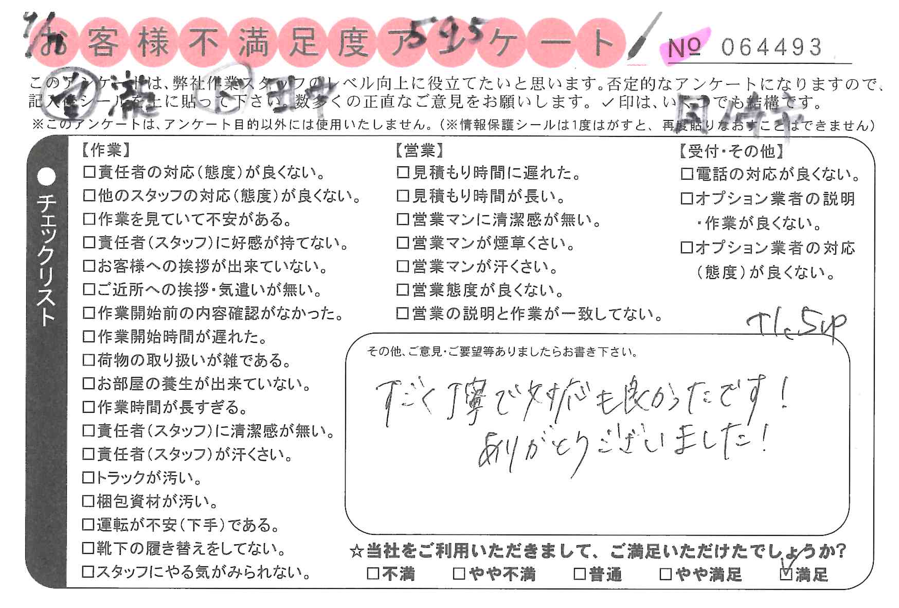 * 速やかに作業をしていただき、ありがとうございました。