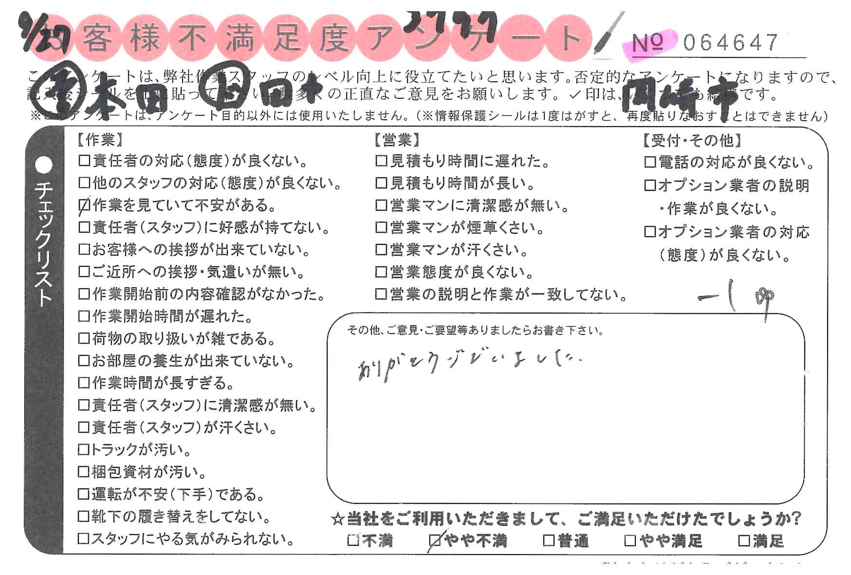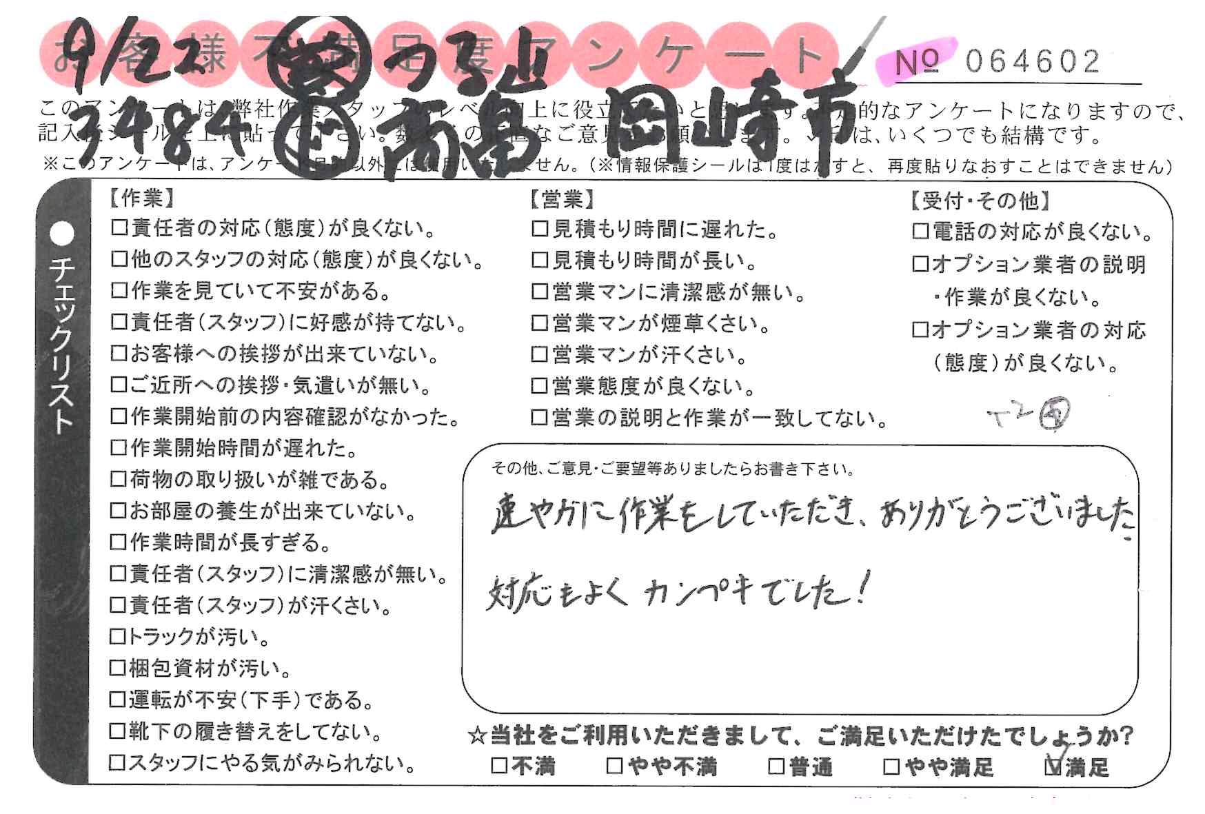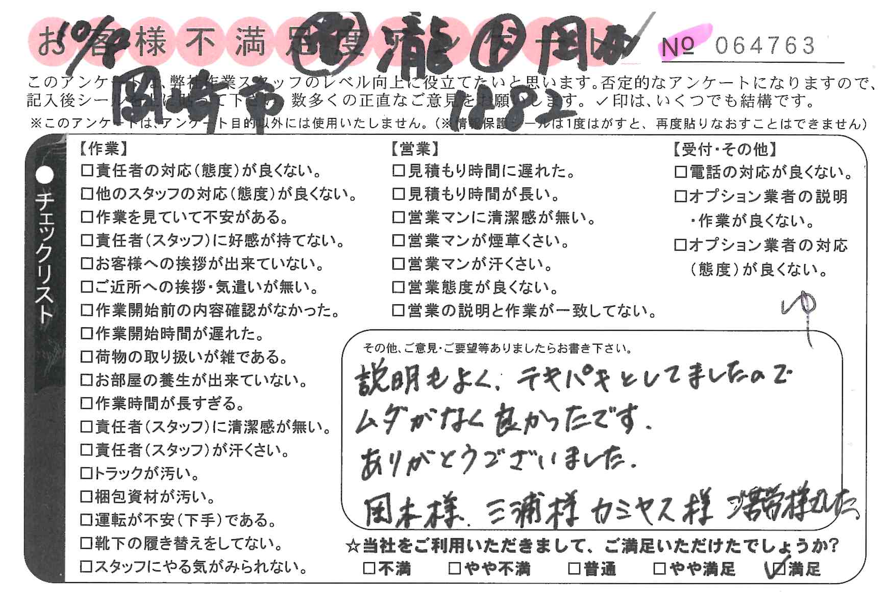 * 速やかに作業をしていただき、ありがとうございました。