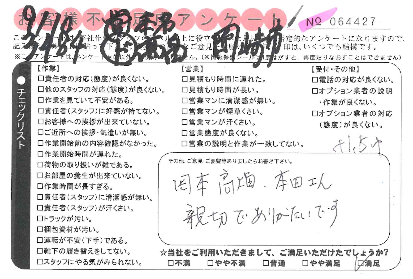 * 岡本、髙畠、本田さん 親切でありがたいです