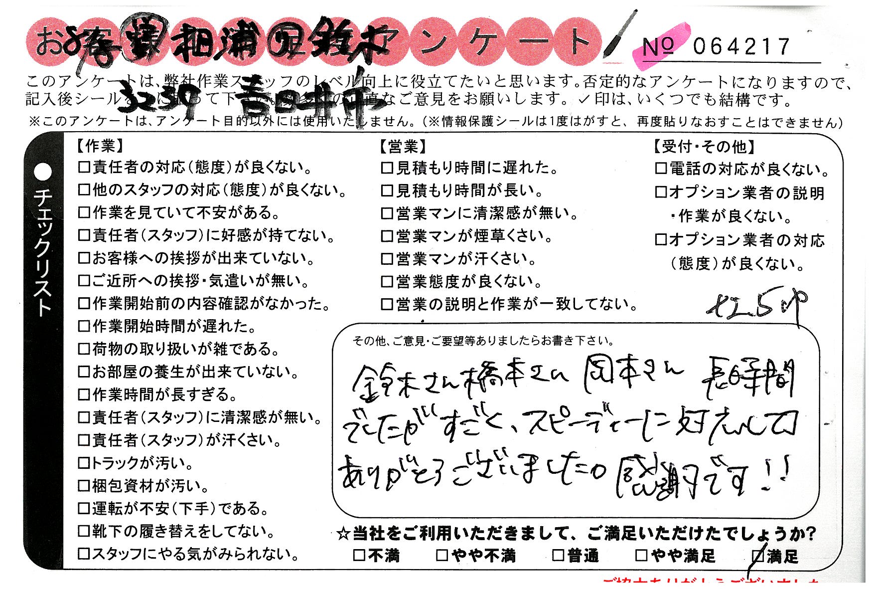 * 親切に作業して下さり、ありがとうございました。