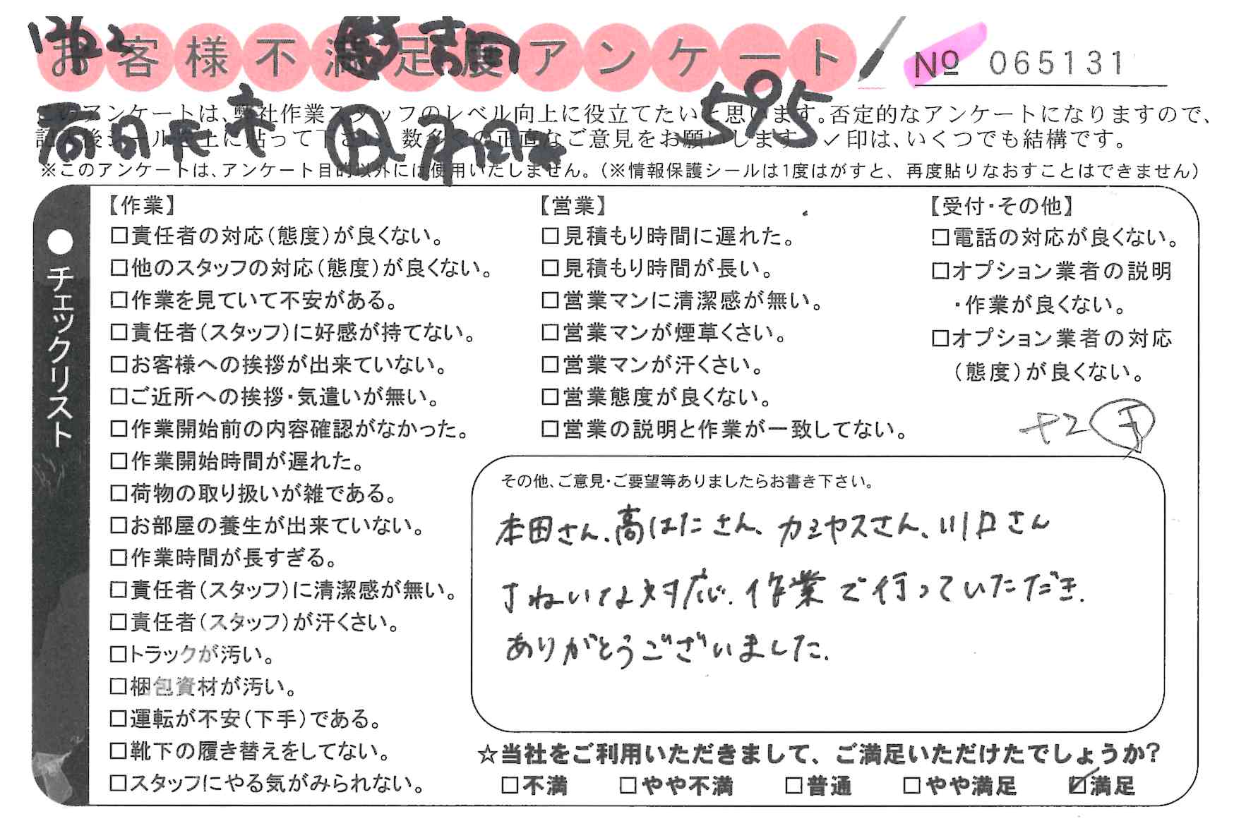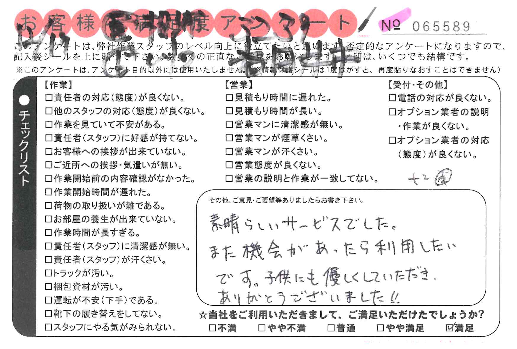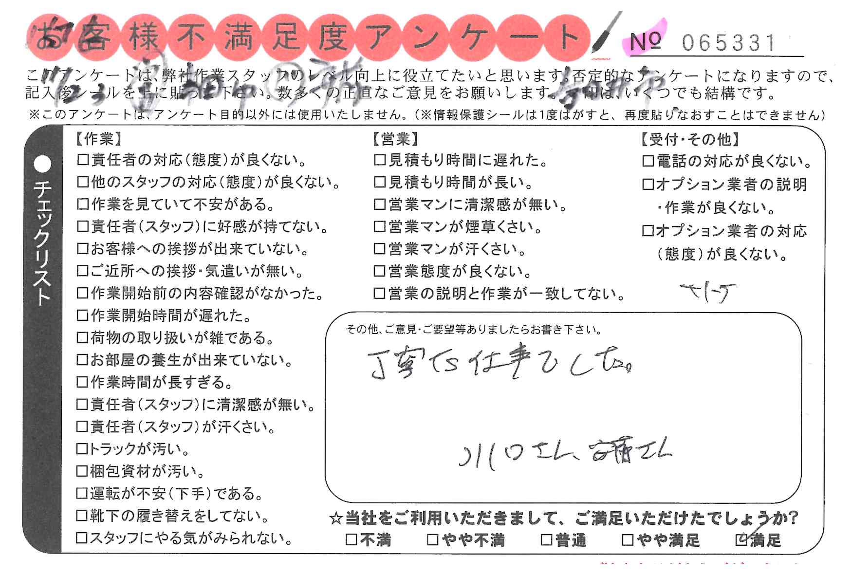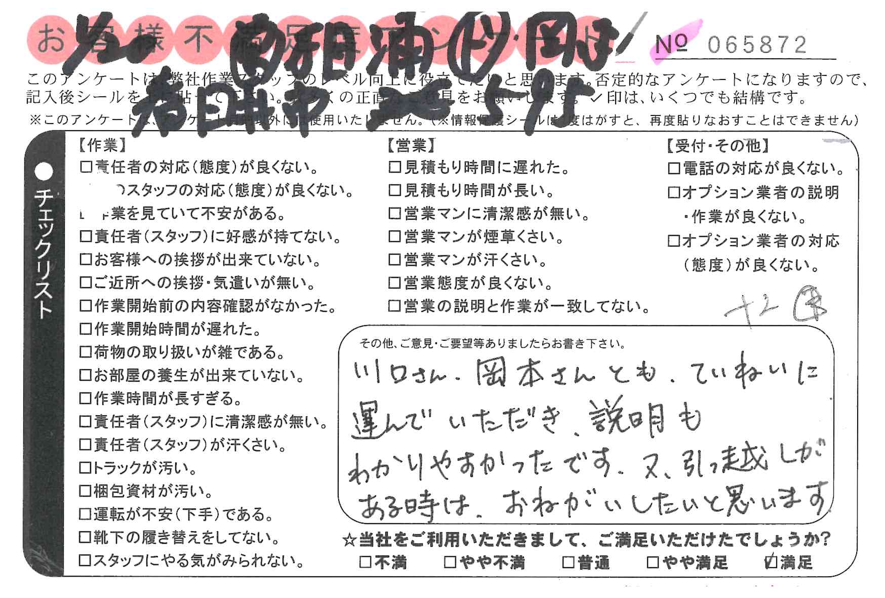 引越一番でお引越しをしていただいたお客様のうち、コメントいただいたアンケートを全て掲載しています。