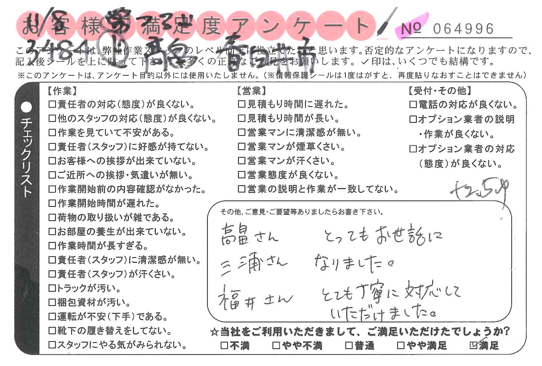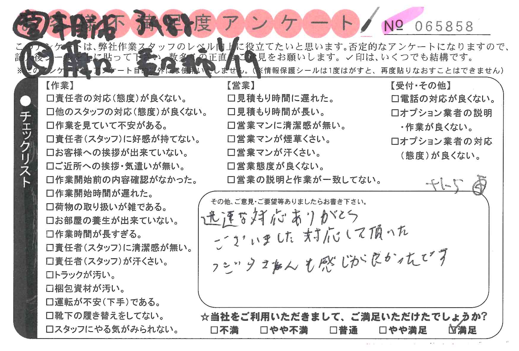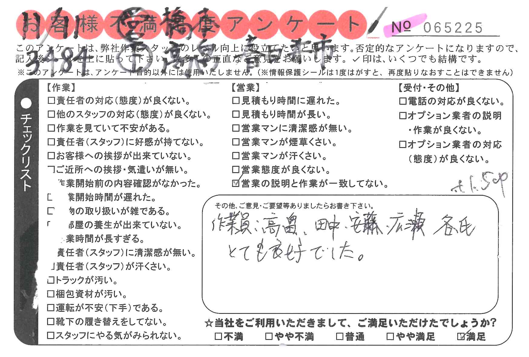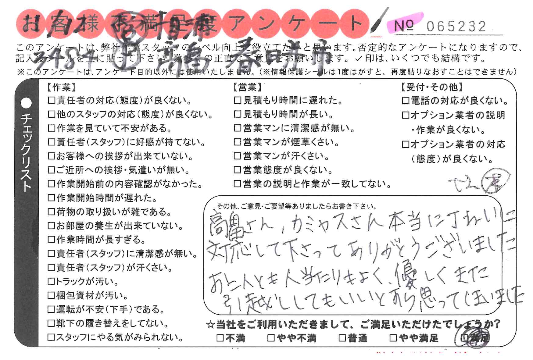 引越一番でお引越しをしていただいたお客様のうち、コメントいただいたアンケートを全て掲載しています。