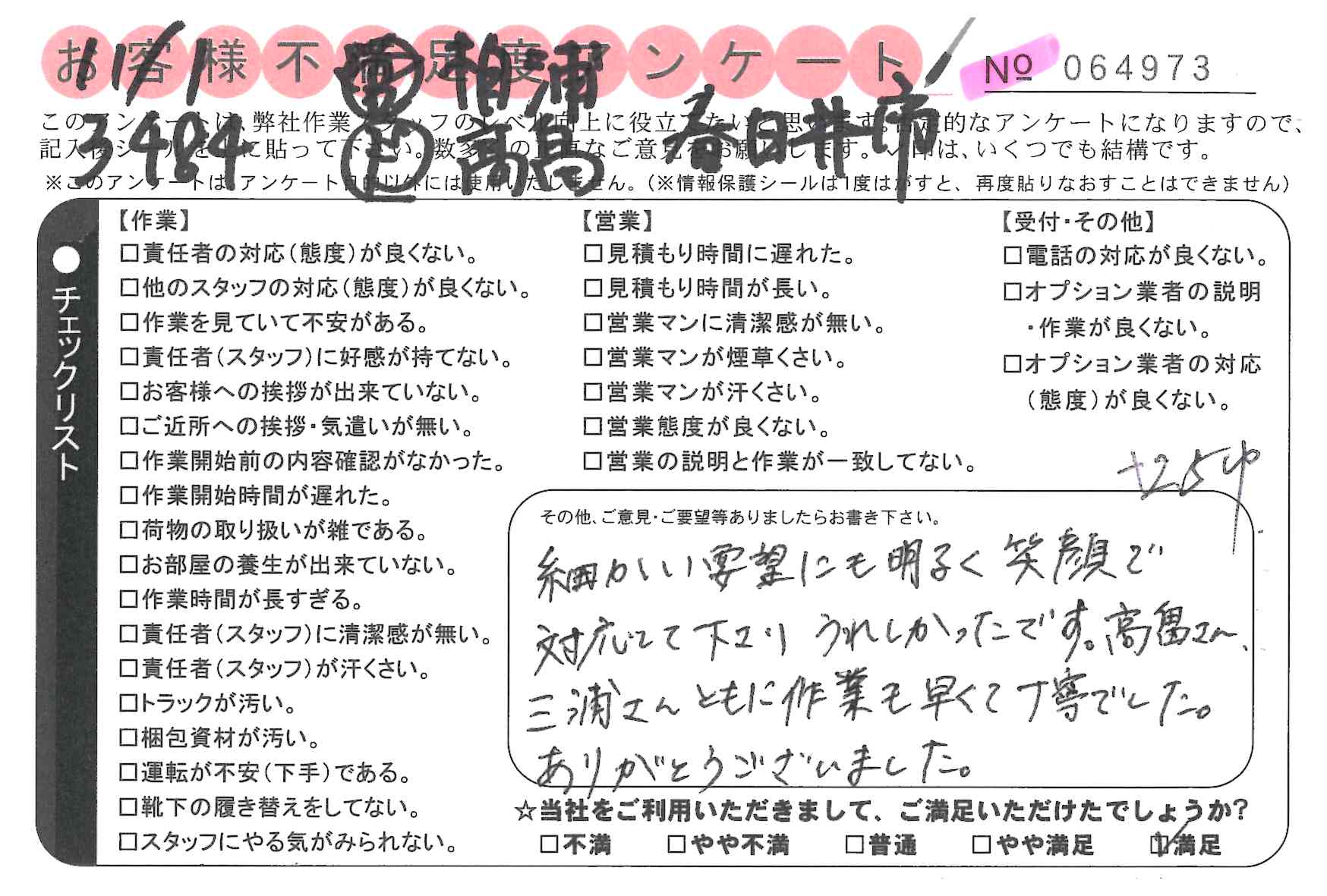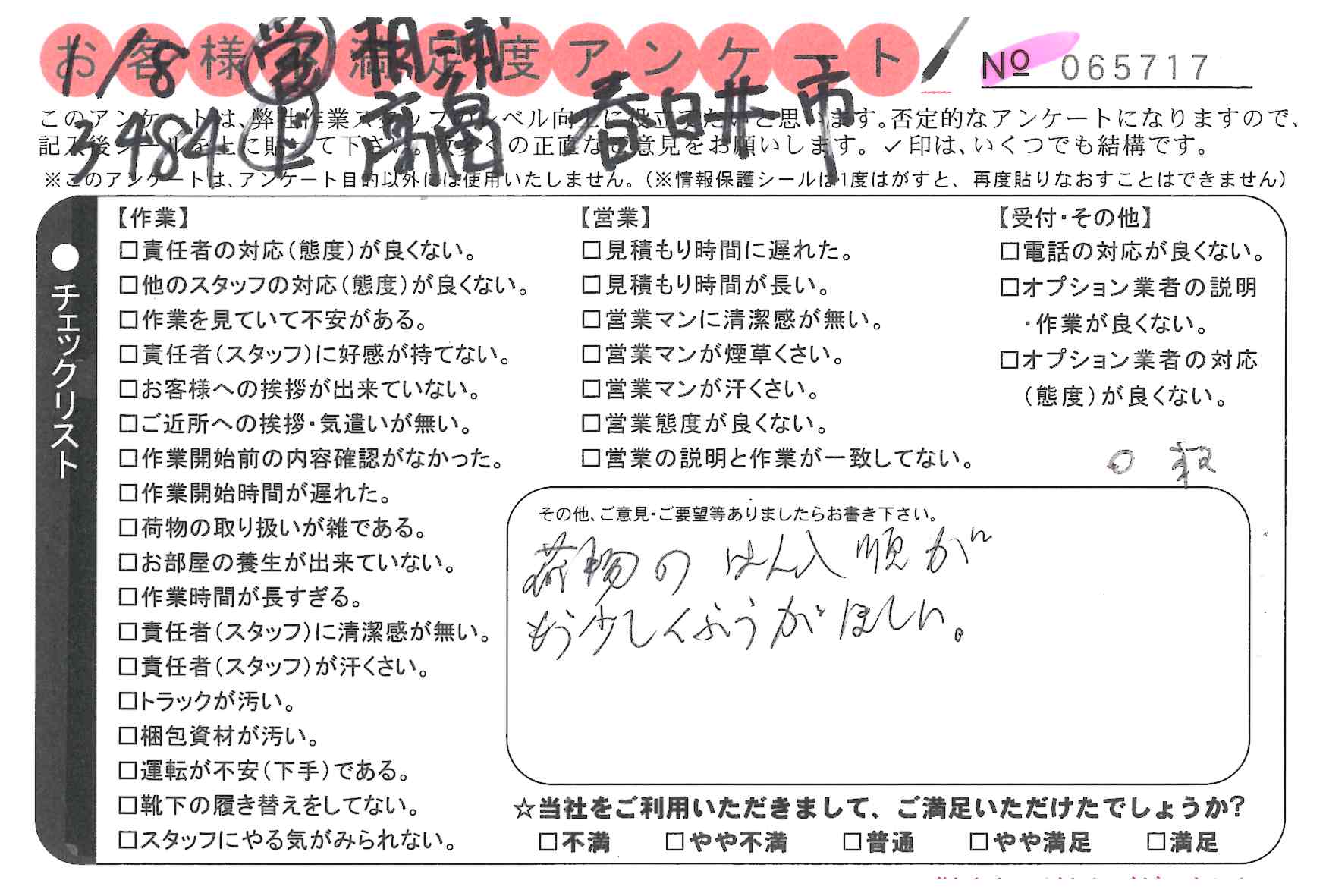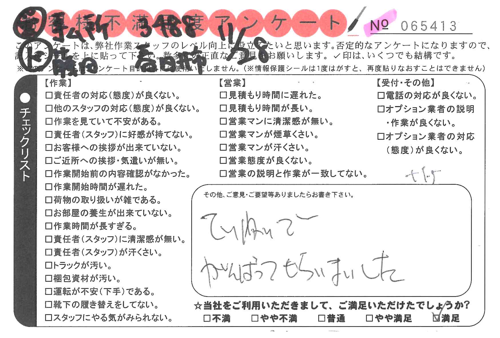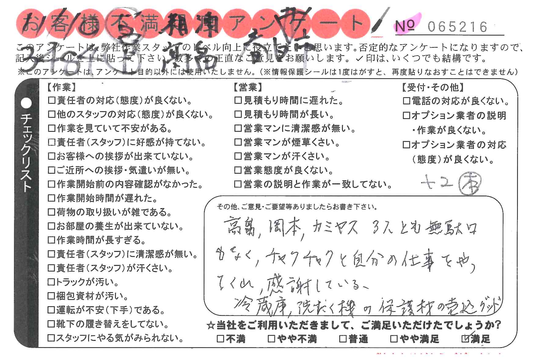引越一番でお引越しをしていただいたお客様のうち、コメントいただいたアンケートを全て掲載しています。