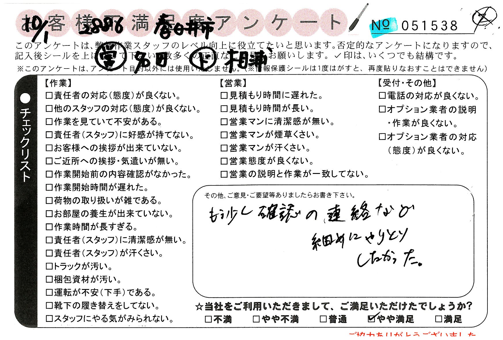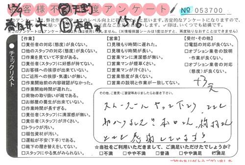 引越一番でお引越しをしていただいたお客様のうち、コメントいただいたアンケートを全て掲載しています。