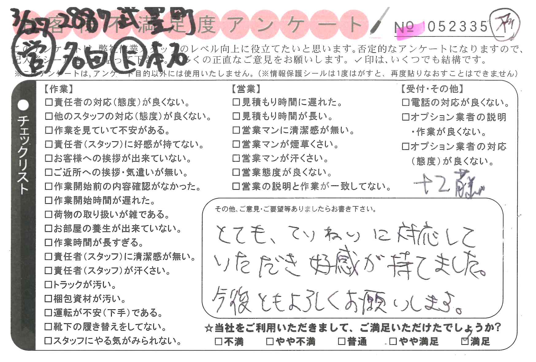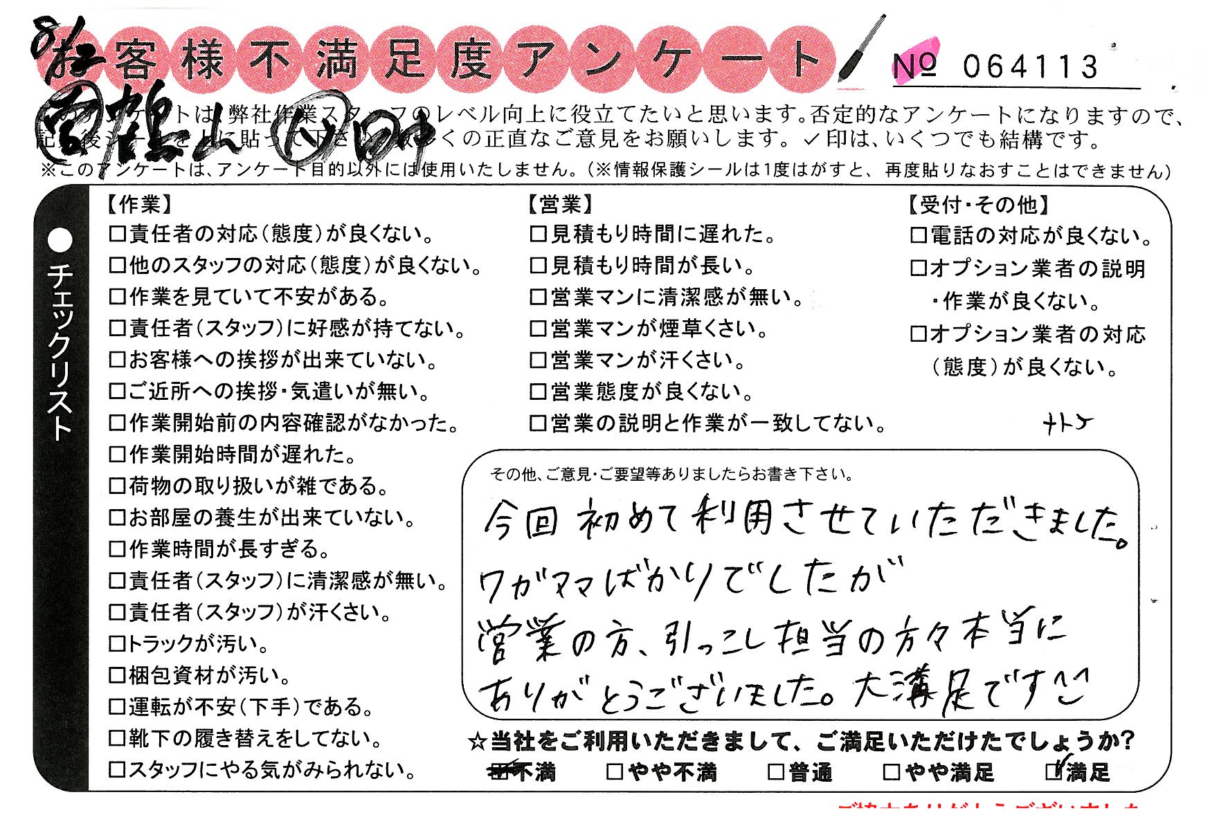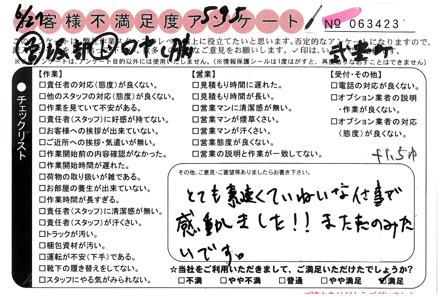 引越一番でお引越しをしていただいたお客様のうち、コメントいただいたアンケートを全て掲載しています。
