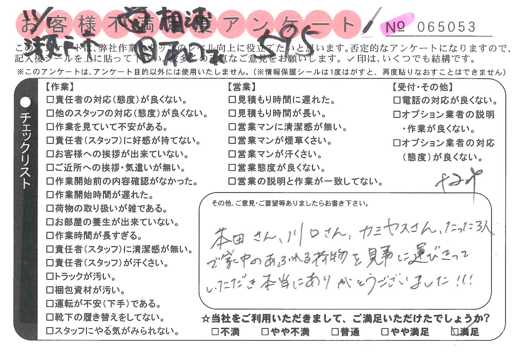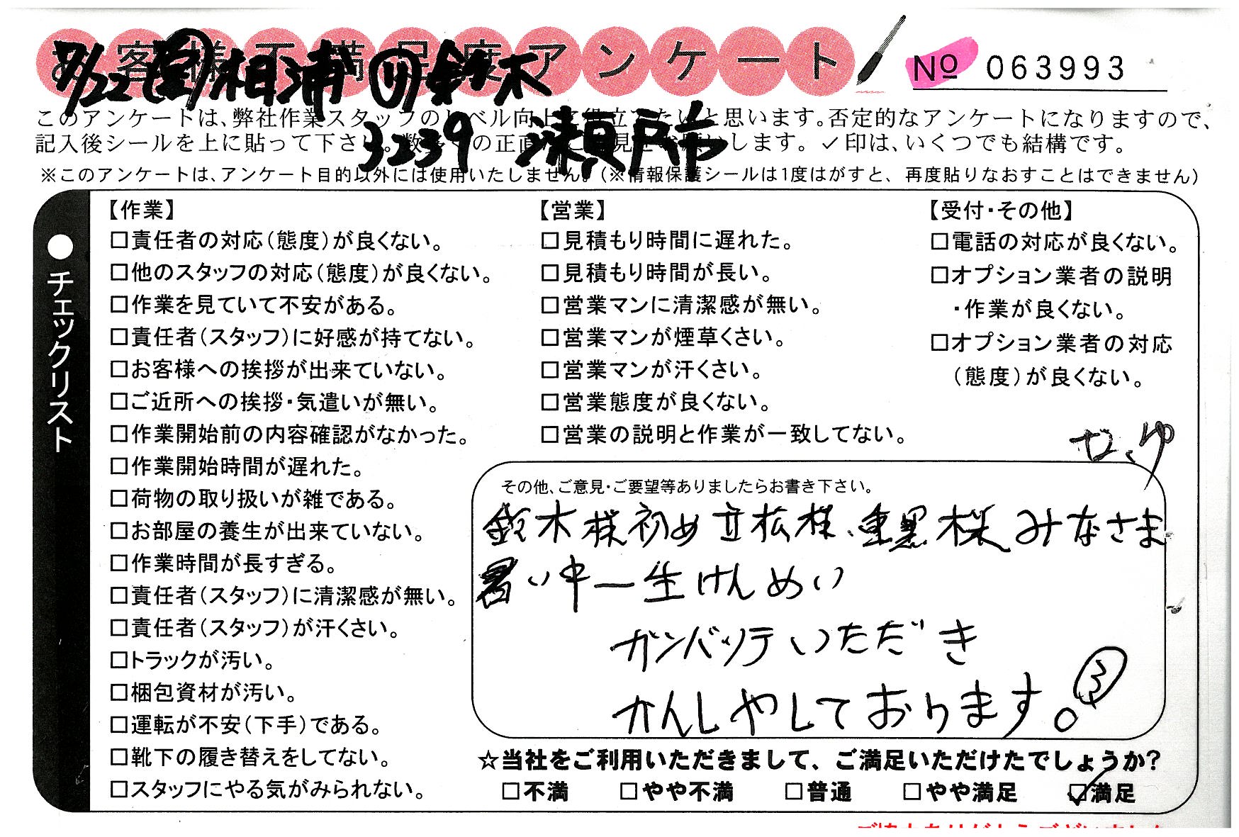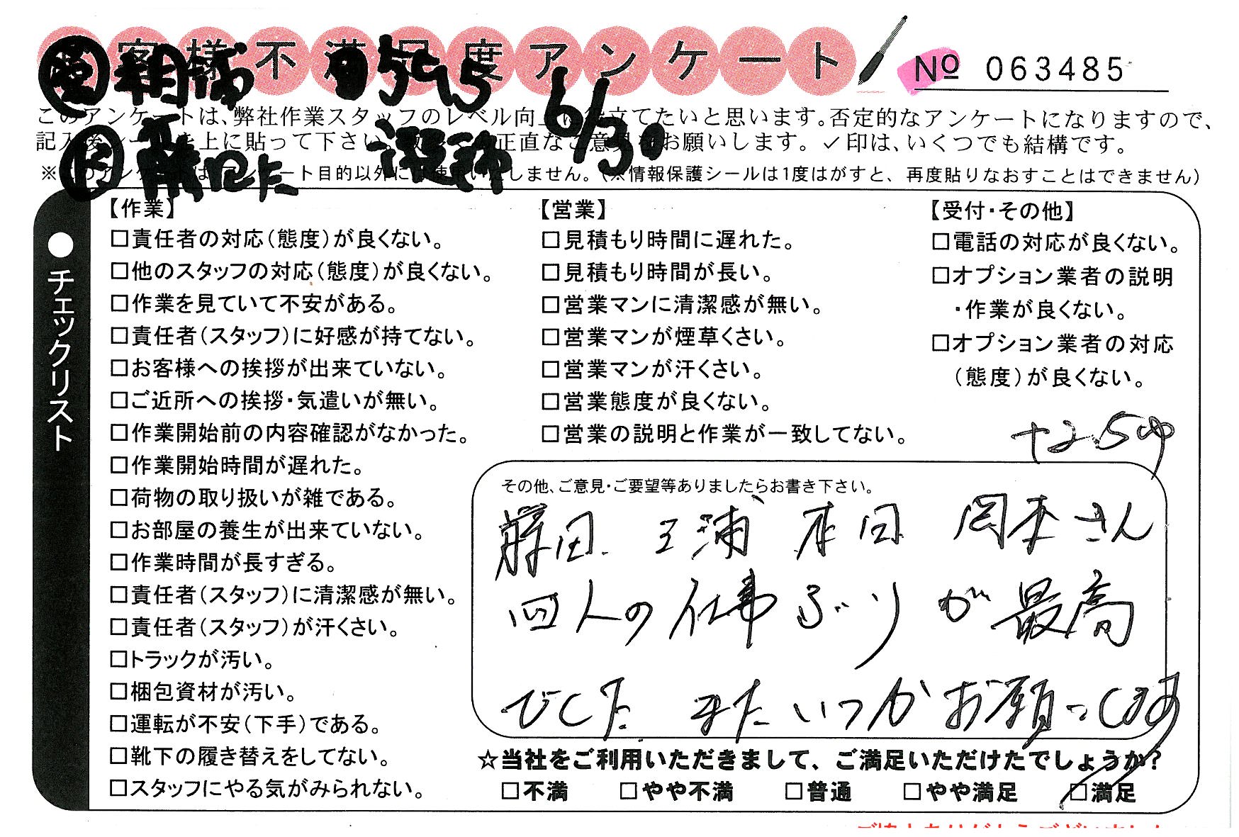 引越一番でお引越しをしていただいたお客様のうち、コメントいただいたアンケートを全て掲載しています。