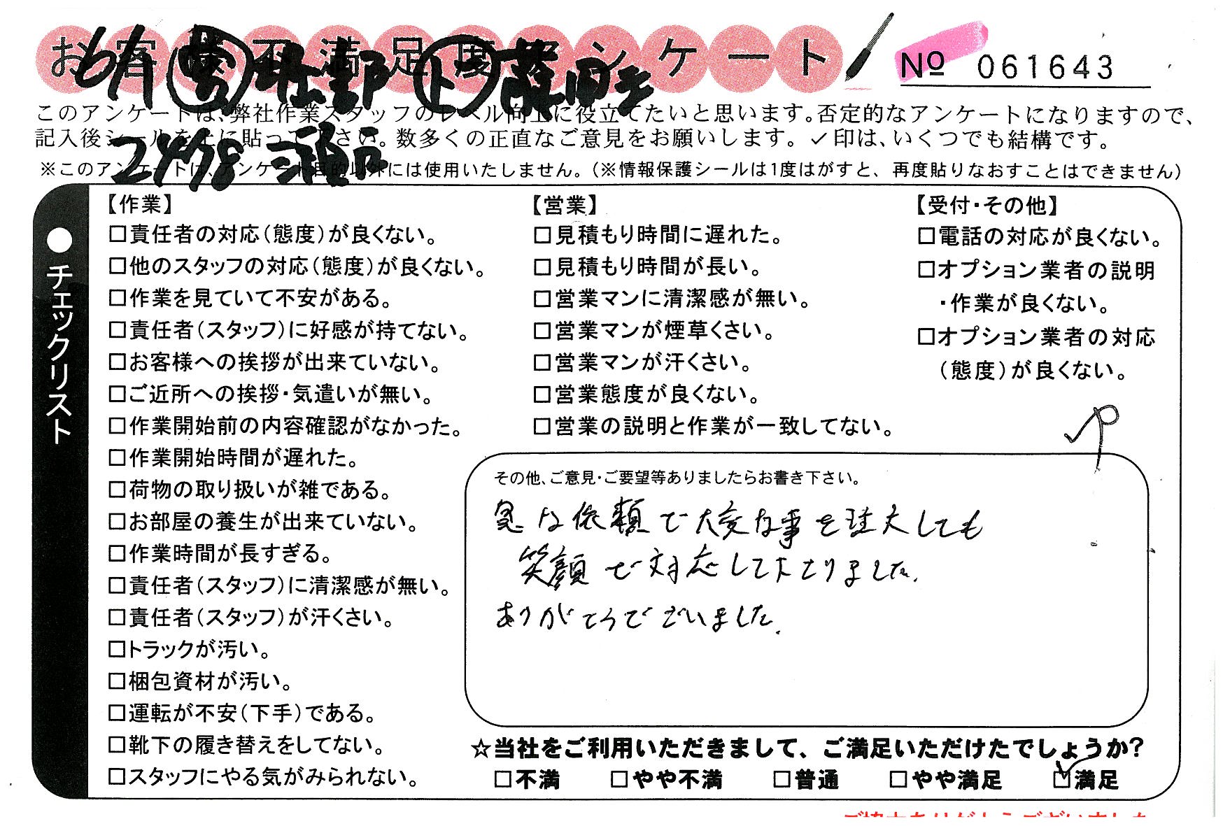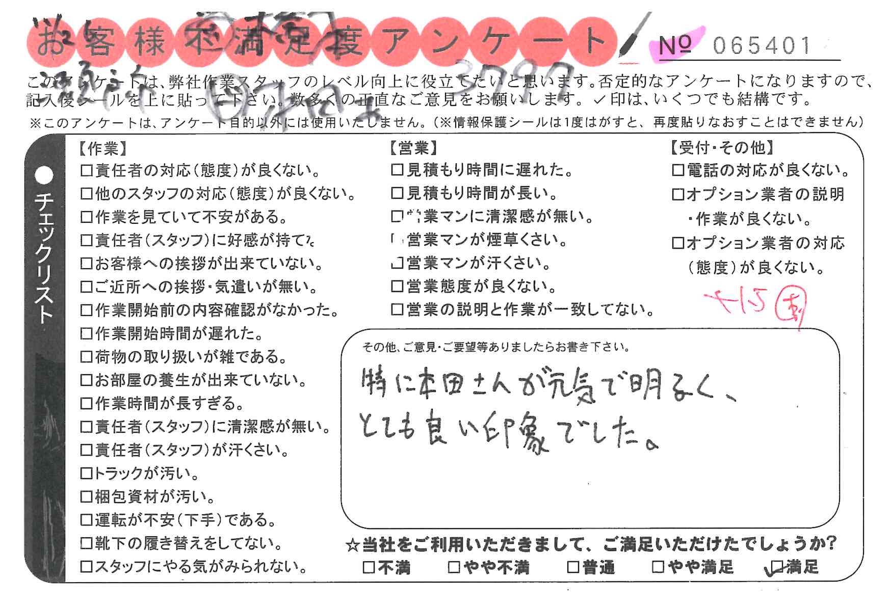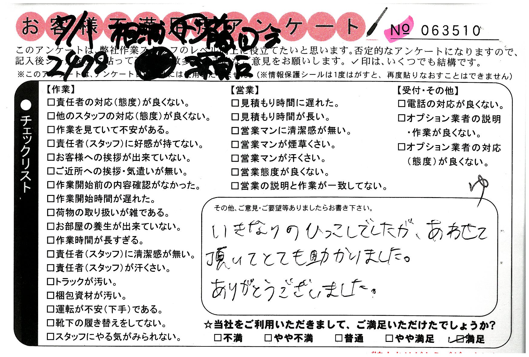引越一番でお引越しをしていただいたお客様のうち、コメントいただいたアンケートを全て掲載しています。